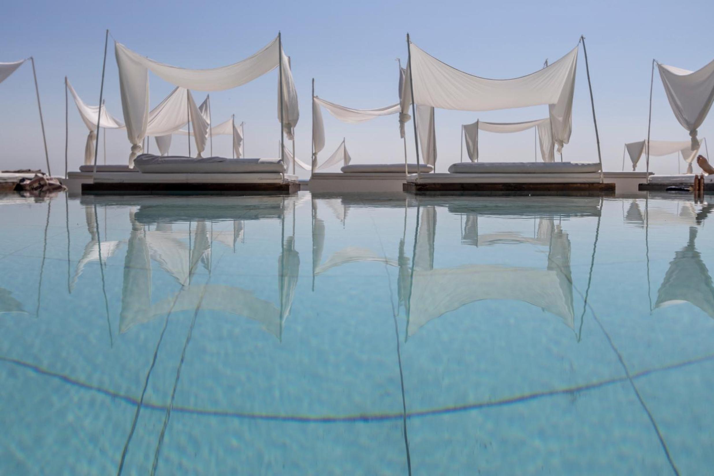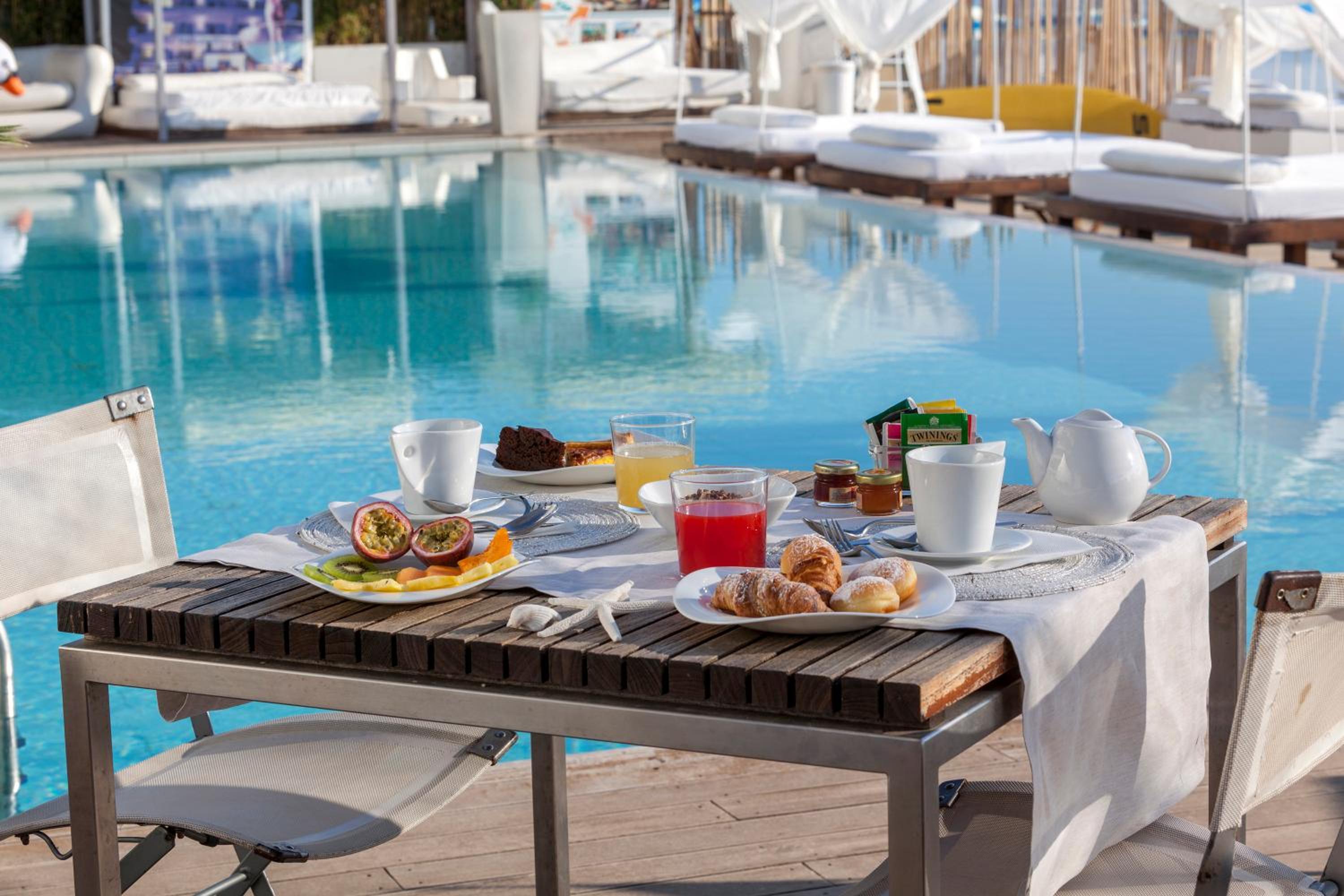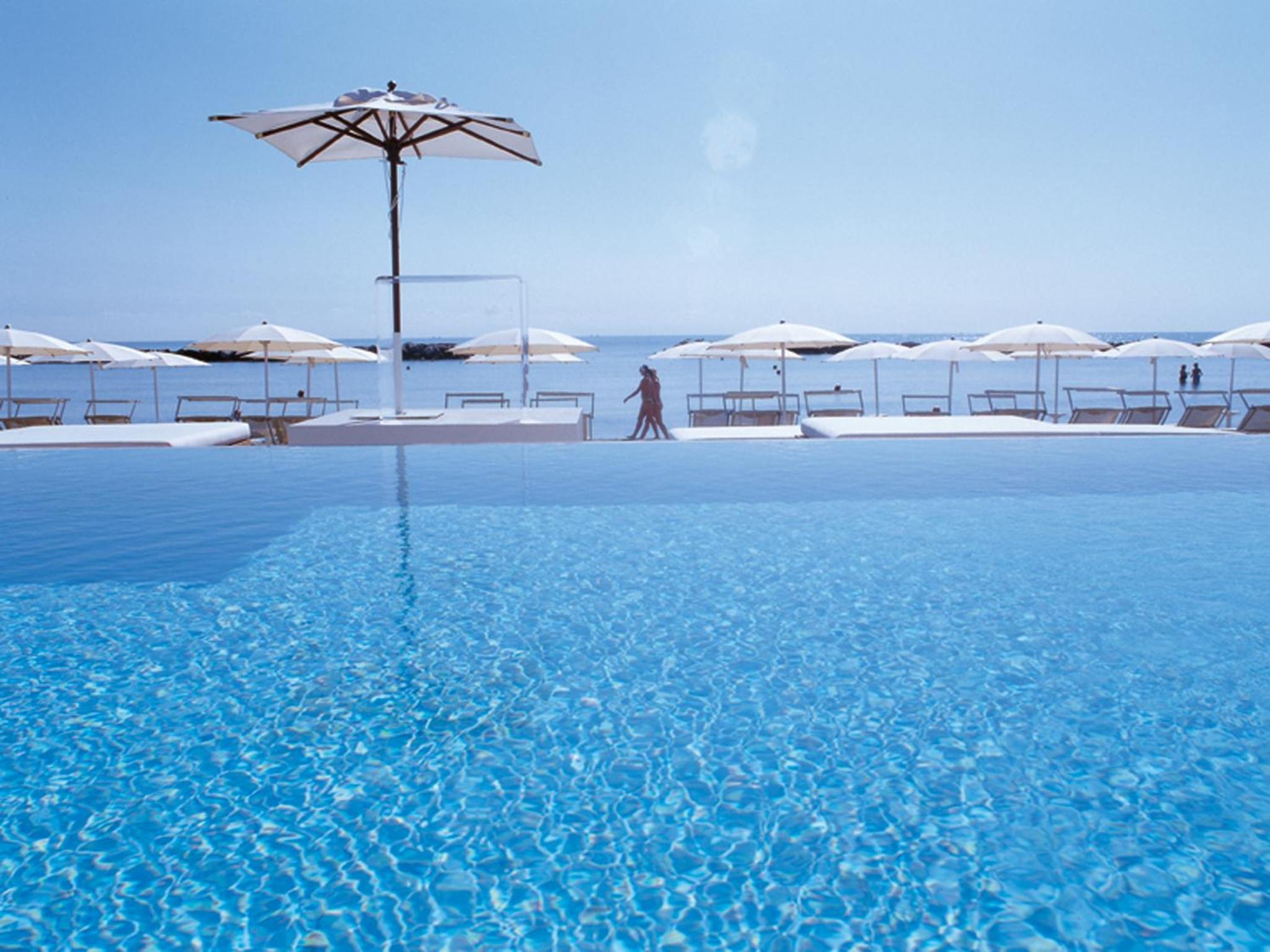 Relax by the outdoor infinity pool overlooking the sea or enjoy the private beach with complimentary sun loungers and umbrellas.