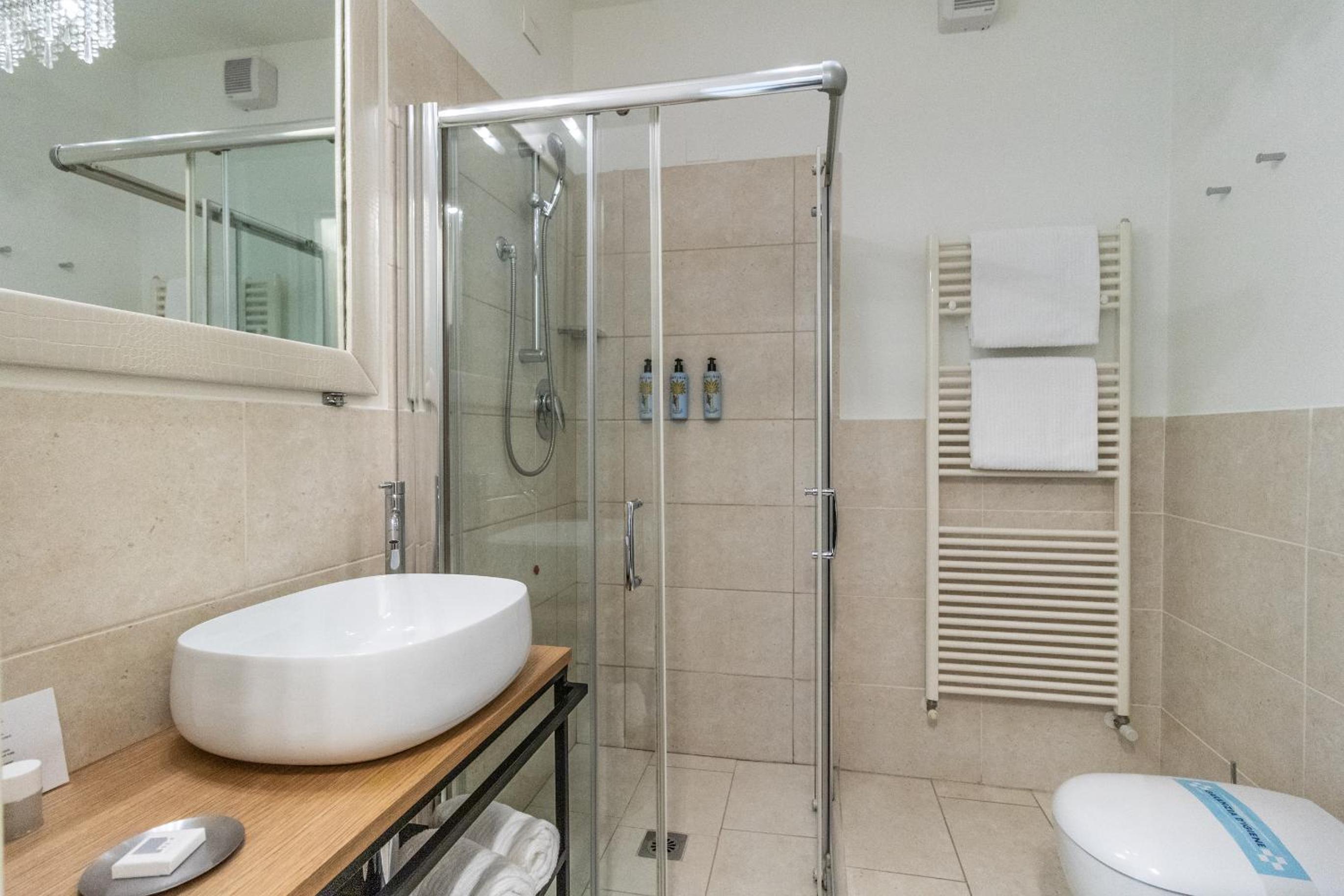 Il bagno in camera non era completamente separato da una porta, ma formava un unico ambiente con solo una tenda (e uno scorrevole in vetro per il wc vero e proprio), inoltre (forse perché abbiamo alloggiato fuori stagione) la colazione non era a buffet ma andavano prenotati la sera prima i piatti e bevande che si volevano consumare.