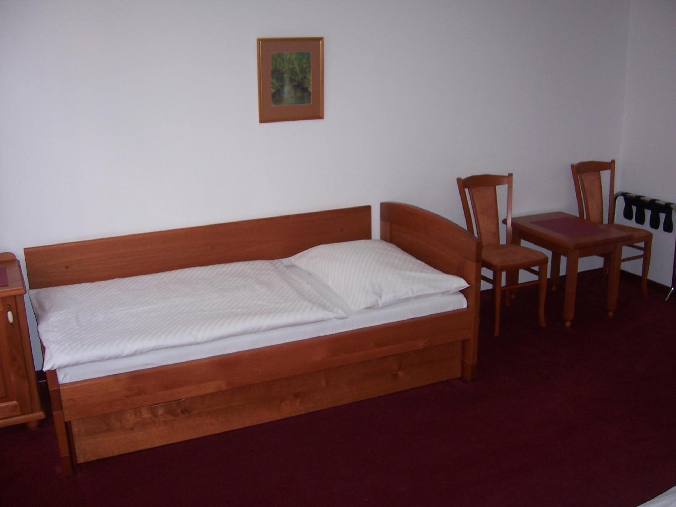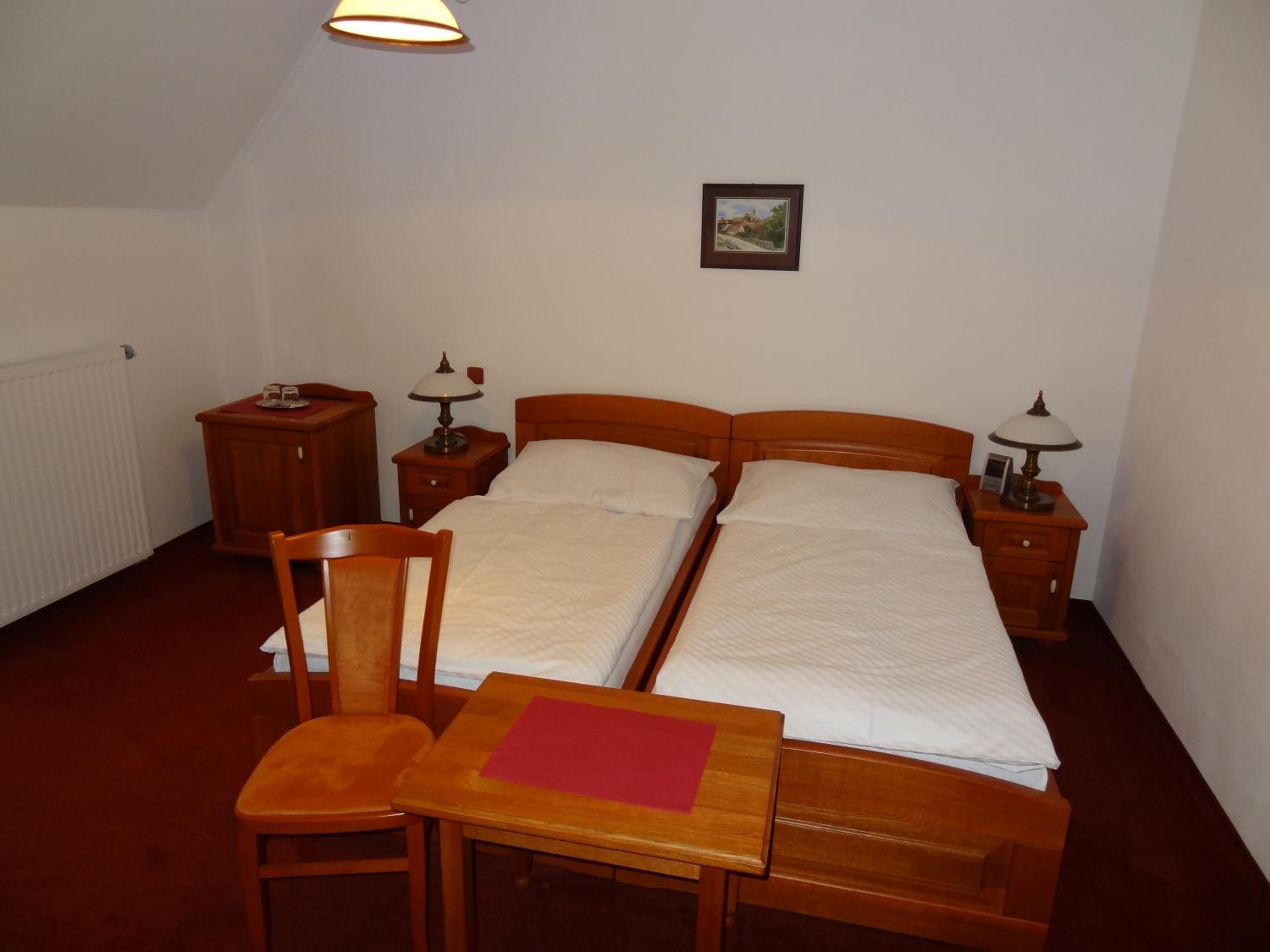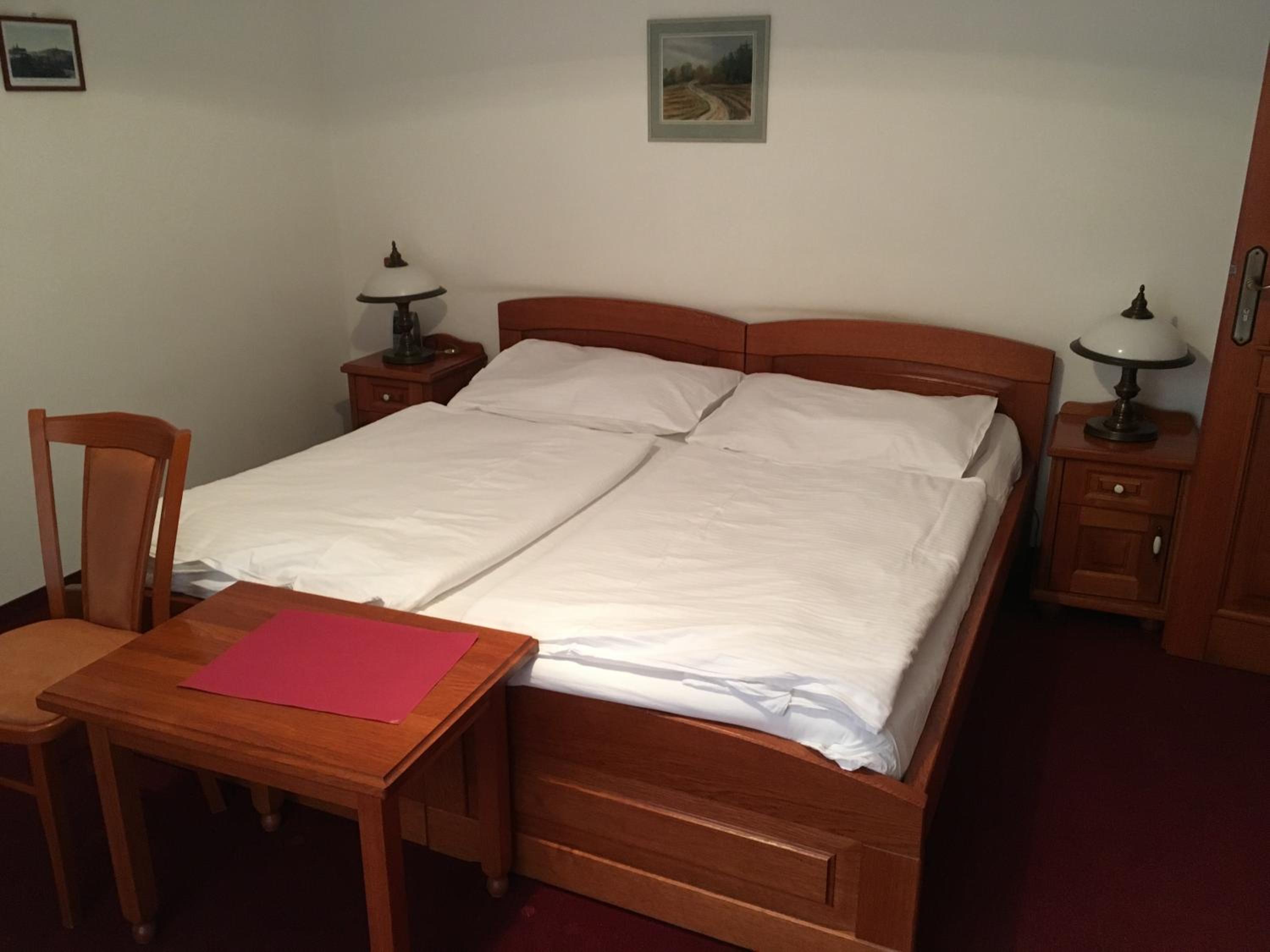 Spacious and cozy room, free house beer in the minibar and a nice restaurant at the bottom floor (the gulasch was excellent)