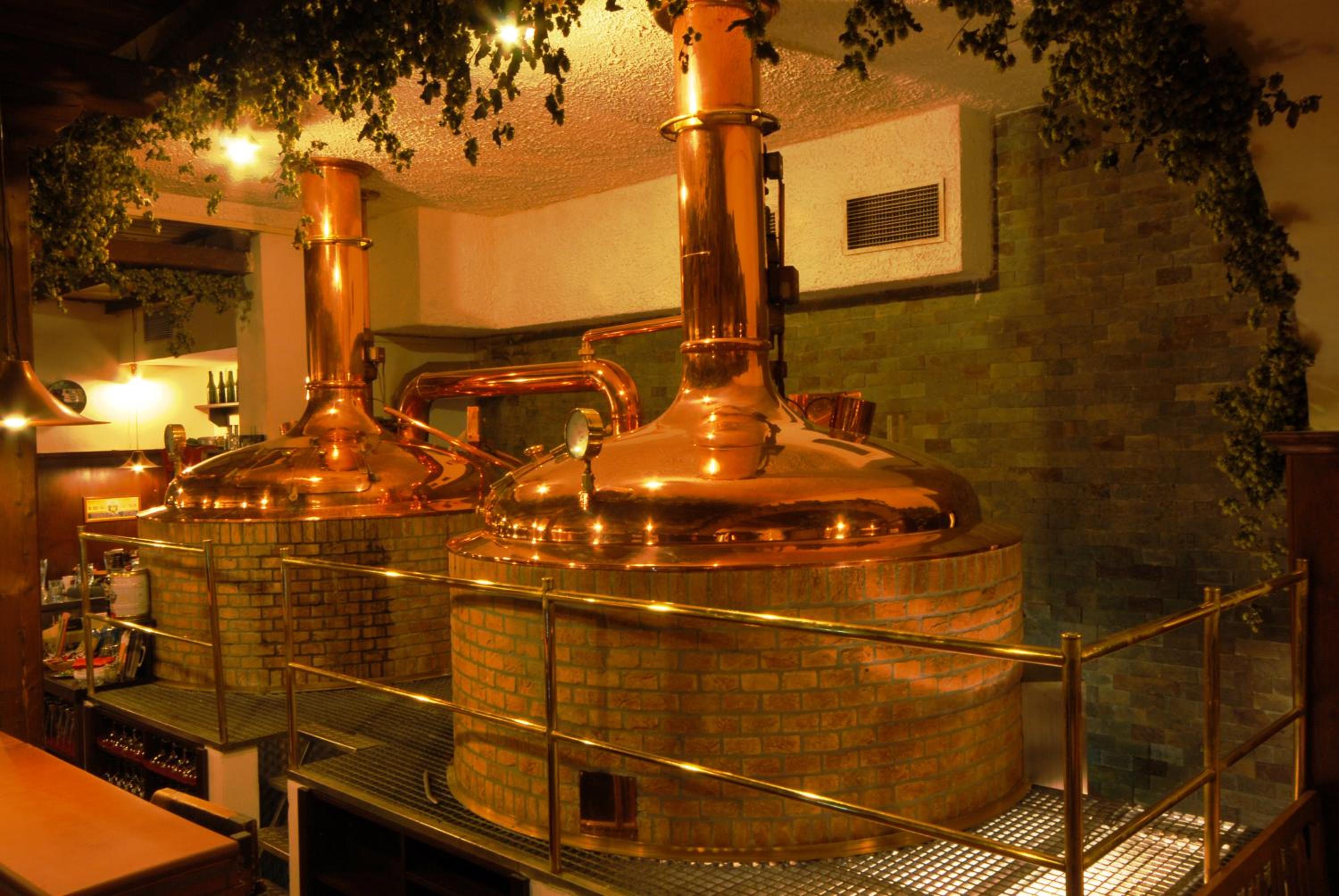 Enjoy a variety of beers brewed on the premises at the summer terrace and savor mouthwatering steaks grilled over charcoal in the restaurant.