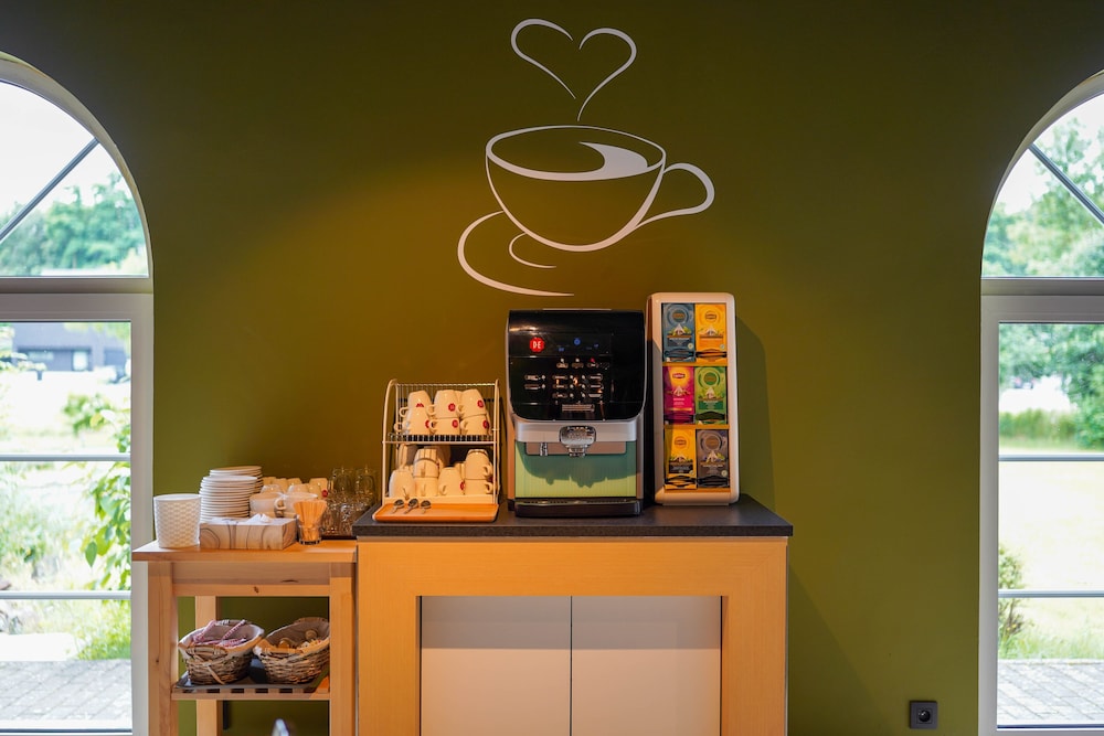 Koffie en thee was beschikbaar in het salon.