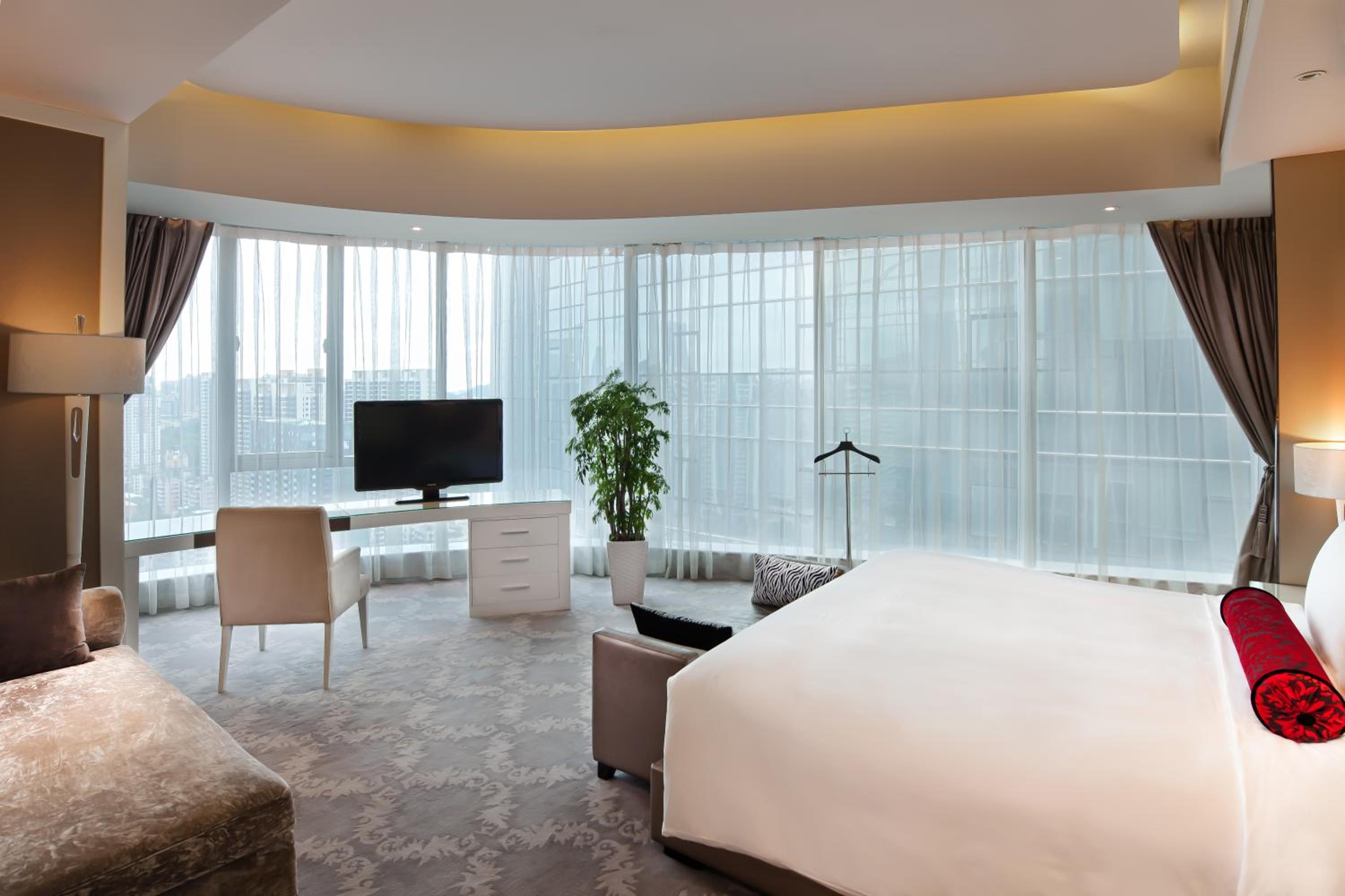 I booked this hotel because of the excellent comments on TripAdvisors. The hotel is centrally located at Tianhe District. It has the glamour of an international class hotel with magnificent building design and high ceiling lobby, 30 storeys high. However, since I arrived hotel lately, there was no one helping me unload my luggage (I heard this unhappy experience from another guest also when I checked out the next day). The room itself was very spacious (I was on 27/F) with a huge toilet with separate shower and bath tub. My requests were all accommodated and attended. I could have a nice sleep on the king-sized bed. However, I would like to comment that the room’s light switches were not easy to find when entering the room. I did have difficulty in locating them when I opened the room door all dark with my luggage.