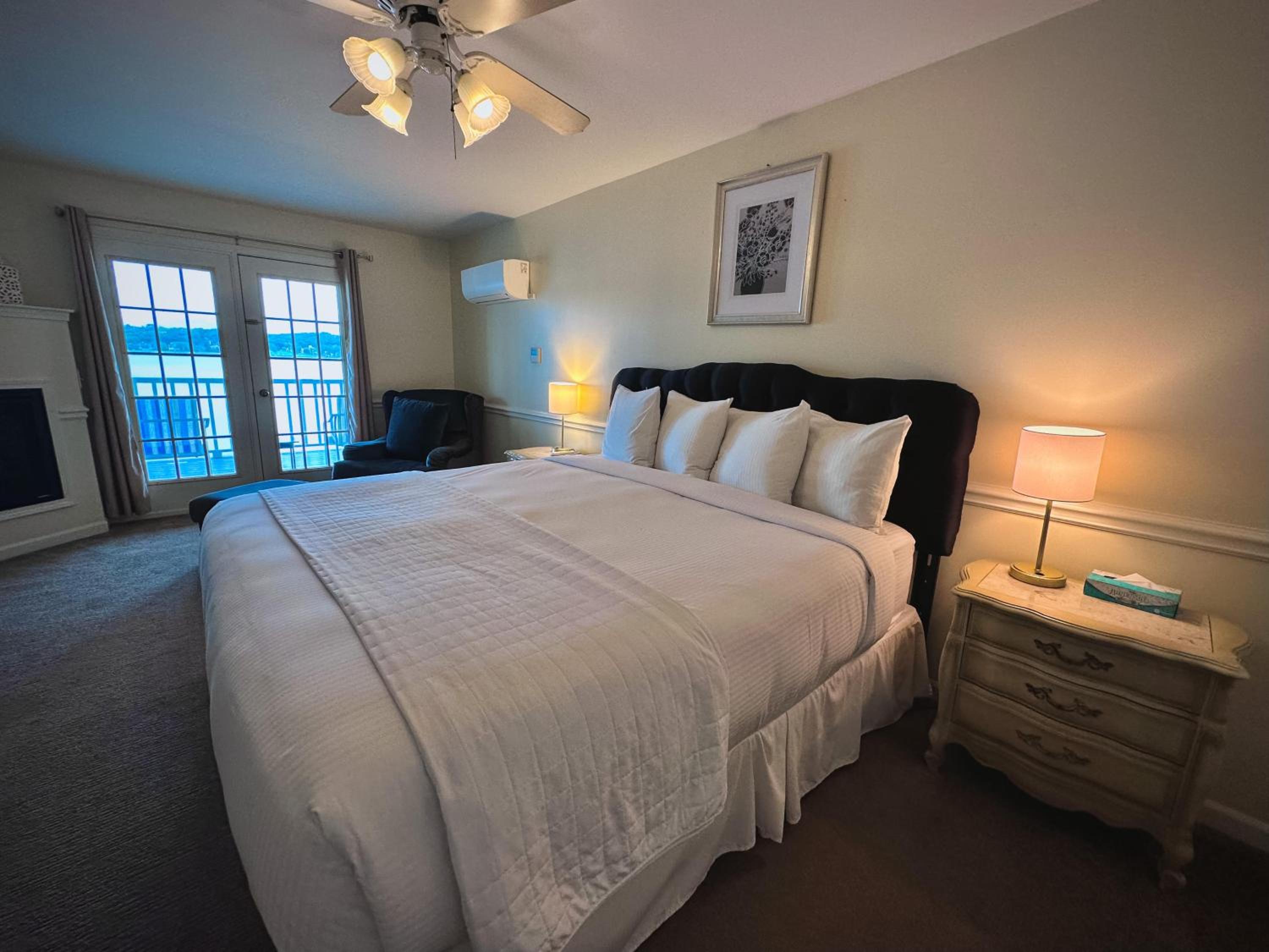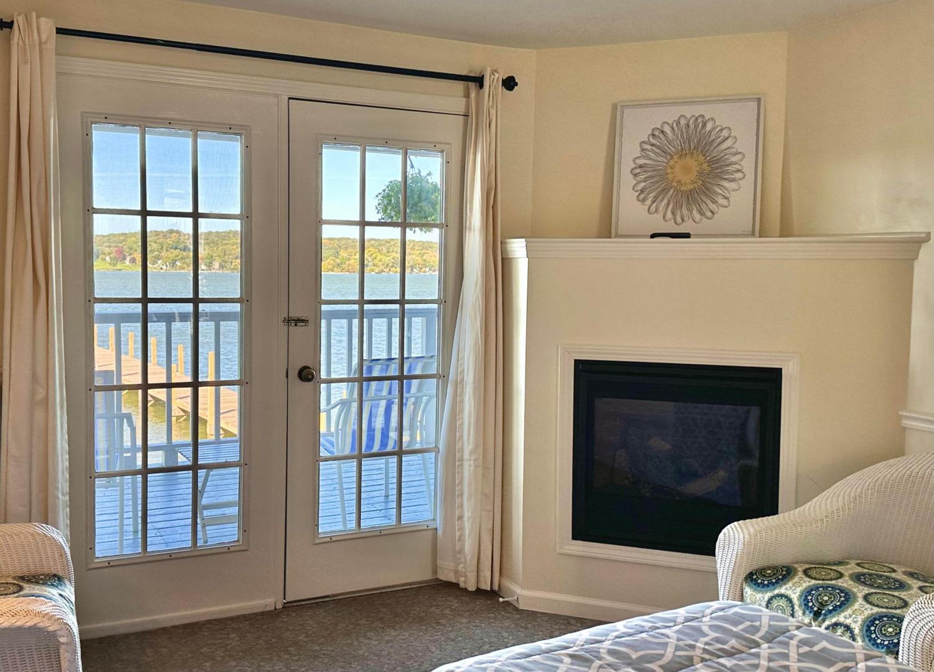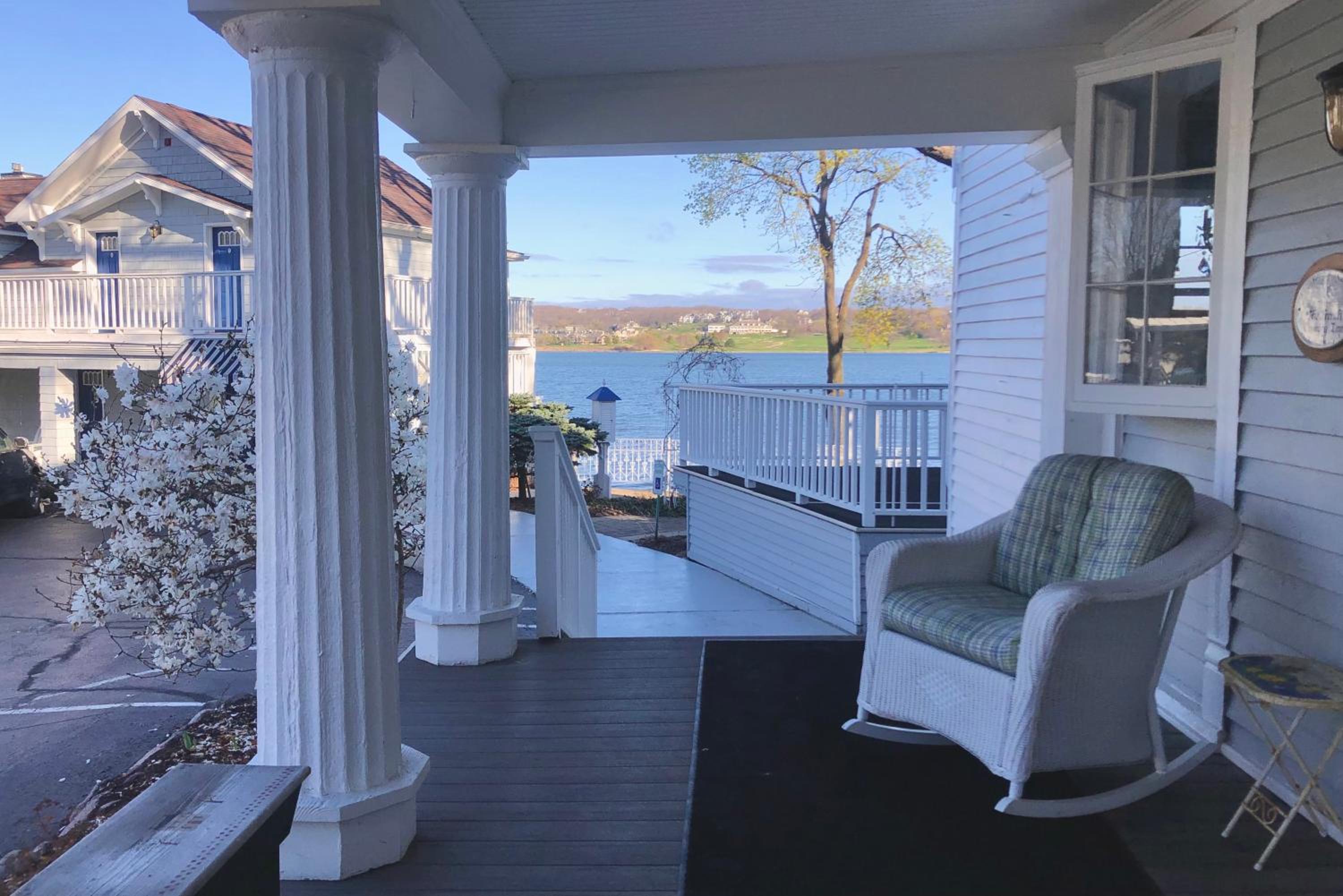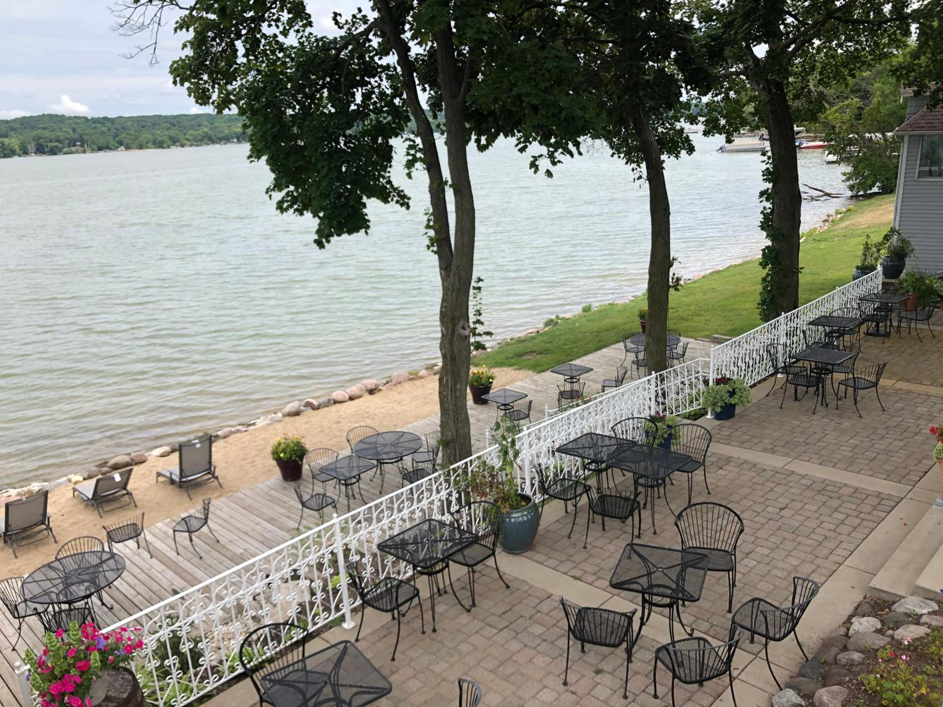 Experience the serenity of Lake Geneva from the terrace of The French Country Inn while enjoying delicious meals at the on-site restaurant and bar.