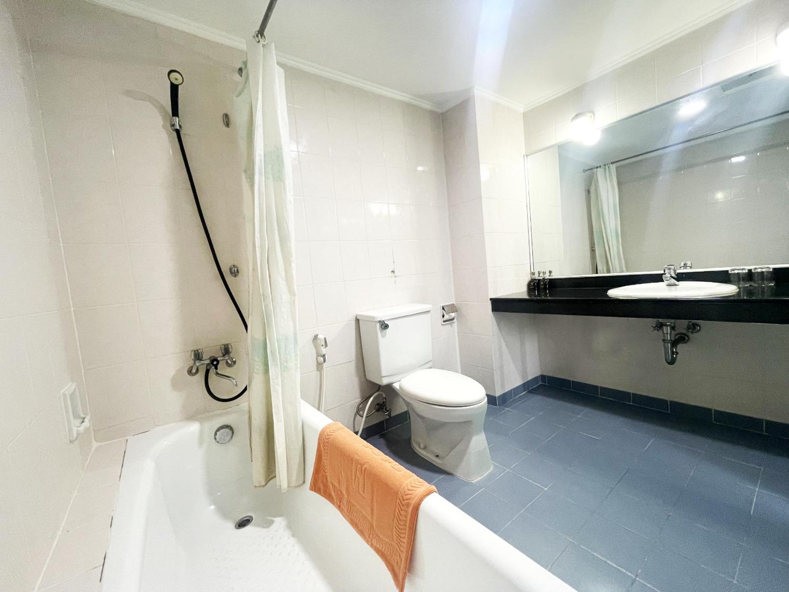 Bathroom door lock not work, door won’t close properly unless push it really hard to close, lots of things are old, been here in 2006, bathroom, toilet, lounge, they all the same before, very old