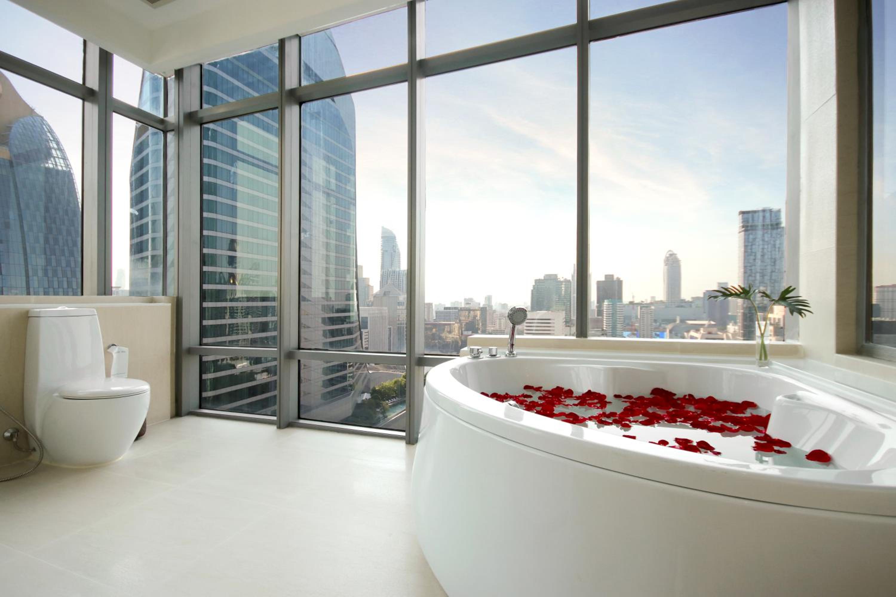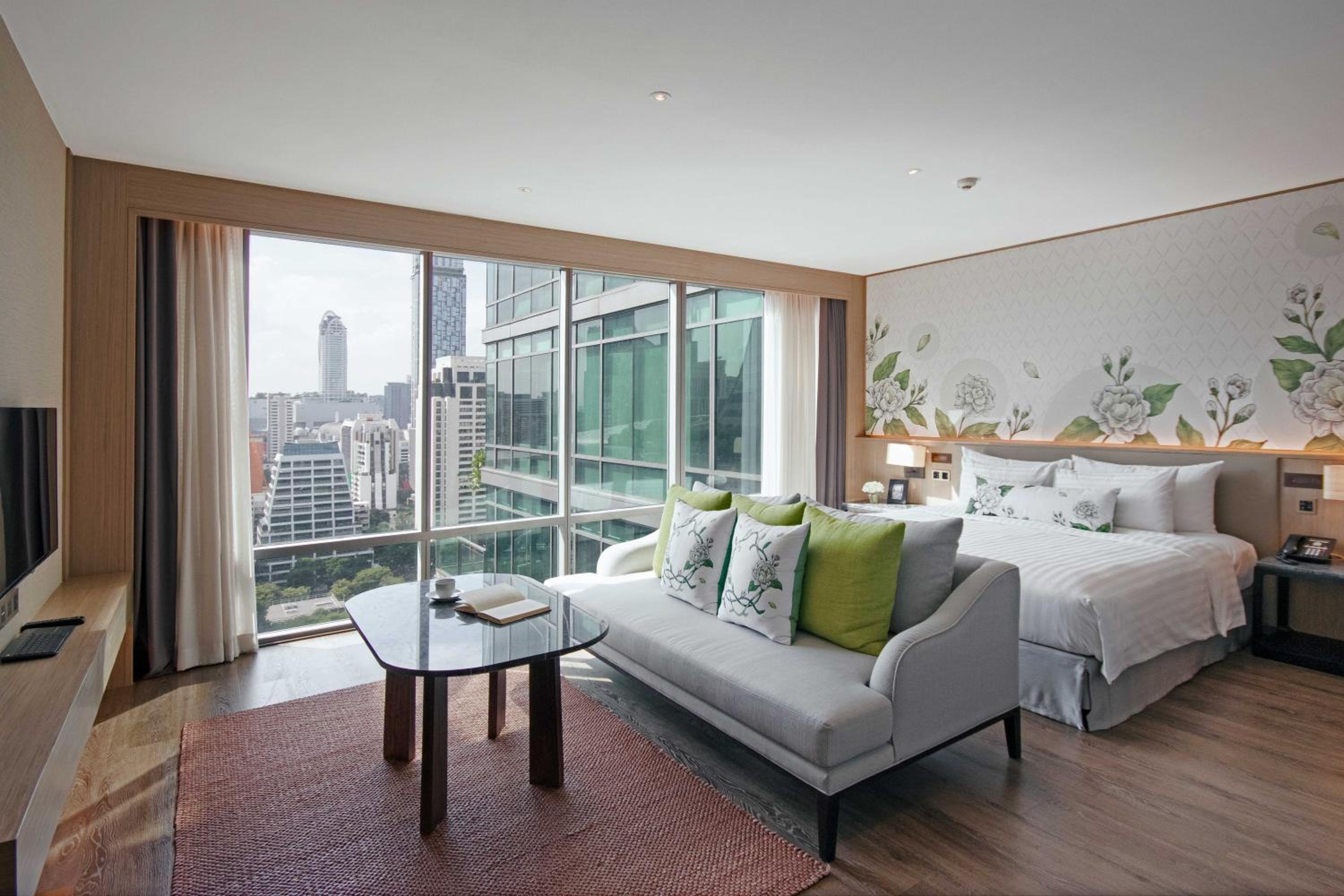 Sivatel Bangkok Hotel offers a luxurious stay with modern amenities and elegant decor. The spacious rooms feature high-tech entertainment systems and stunning city views from floor-to-ceiling windows.