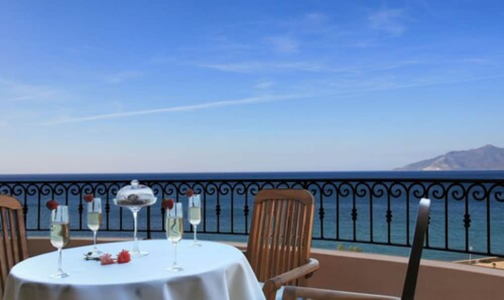 Beautiful hotel, spotlessly clean with excellent staff. Lovely to be upgraded to a delux suite, loads of room, superb sea view, lovely swimming pool. Home from home feel.