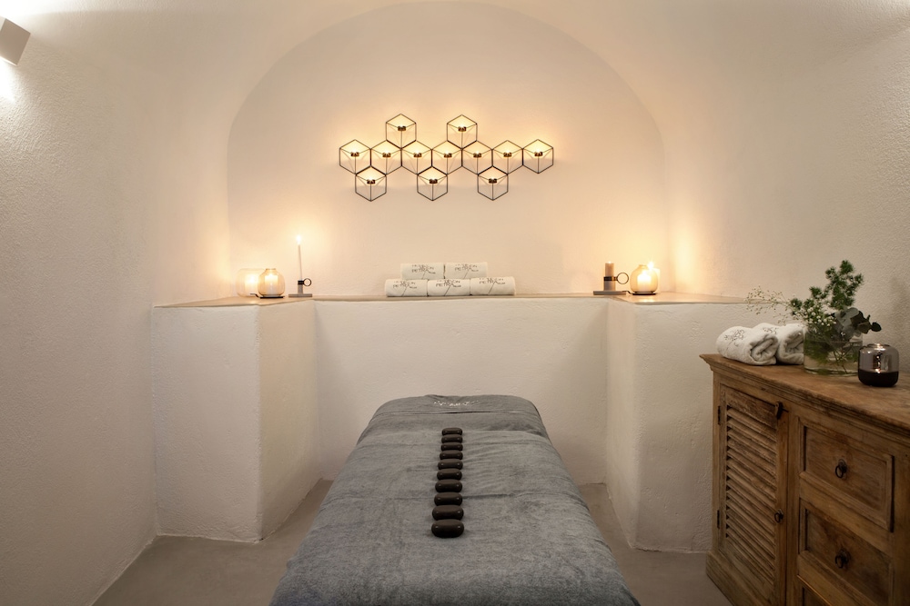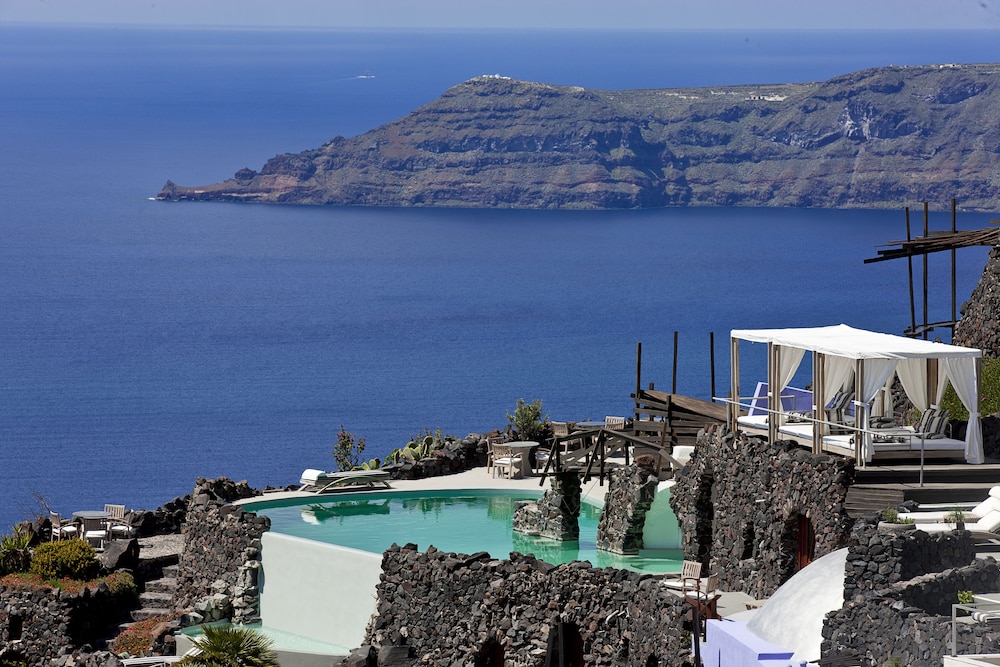 The hotel is perched high up above Imerovigli with spectacular views. The rooms are beautiful, we stayed in the honeymoon suites and the staff are always happy to help. The massage from Yanis was excellent, I would recommend that especially as you should be prepared to go nowhere without going up and down huge steps, by the end of your stay your calves will be toned to perfection.
