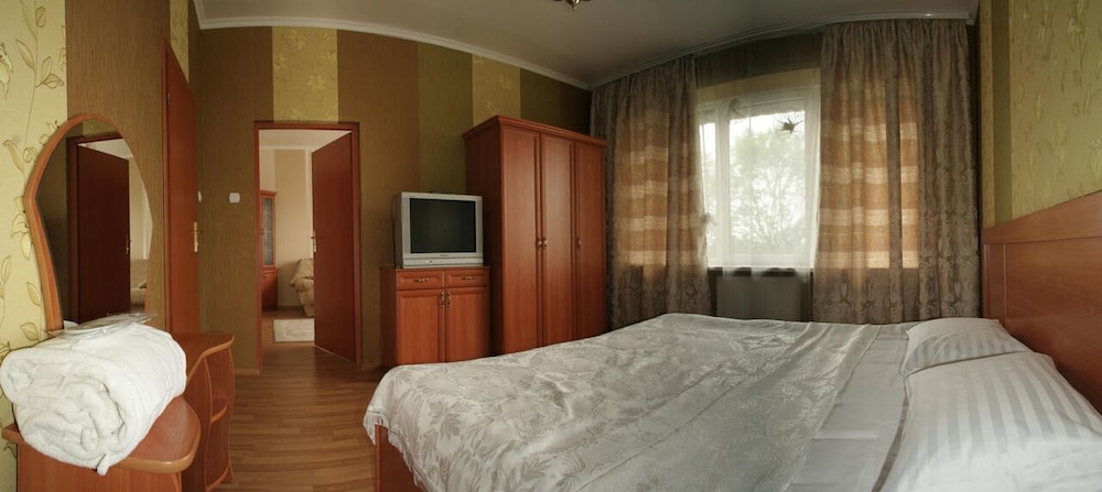 Отель - перекрашенное советское общежитие - расположен на окраине Львова в живописном районе, как раз на пересечении 2 железных дорог. В 500 метрах находится действующая городская тюрьма и кладбище. Из окна открывается захватывающий вид на кпомянутую ж/д и промзону. ЭТО НЕ ШУТКА! В номерах не аккуратно и пованивает, завтрак не съедобен.