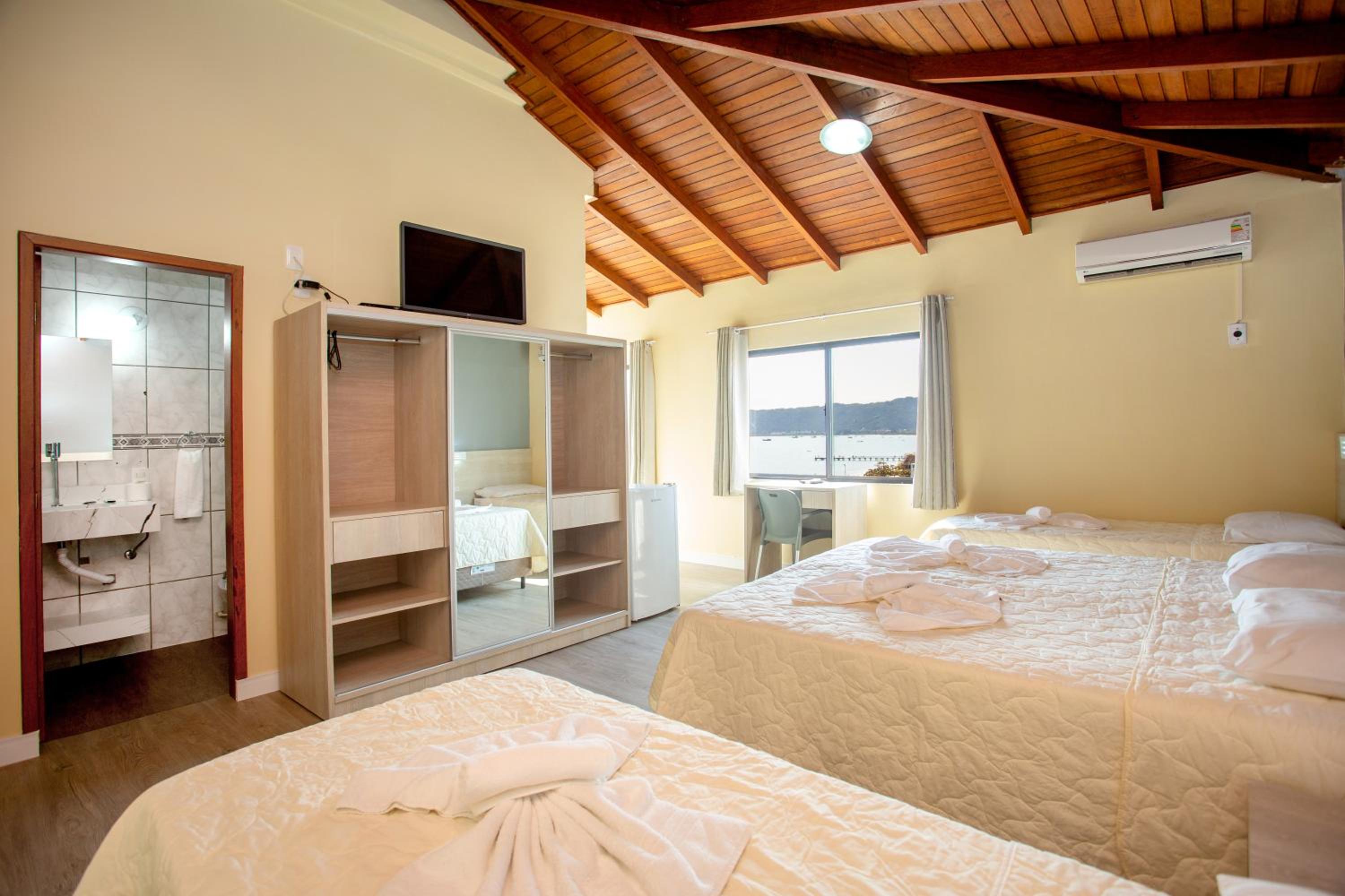 Tiene variedades de camarote a mi toco del costado un poco de vista a la playa pero tenes otros que dan al frente de la playa serán otros precios. Servicio de comida a la habitación si pedis