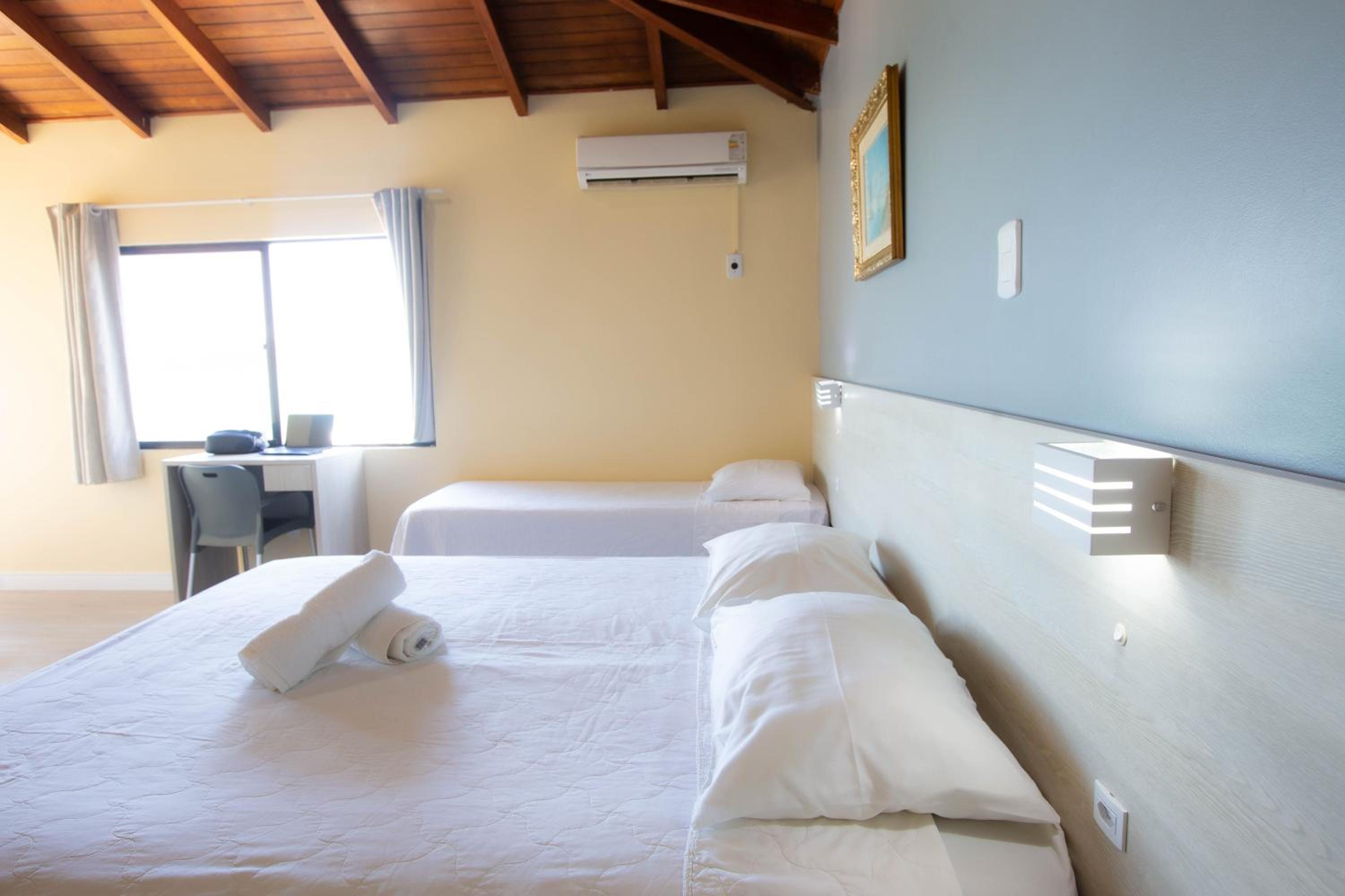 Infelizmente, o quarto que havíamos reservado foi alugado para outra pessoa, e nos ofereceram ficar em um local ao lado em condições péssimas. Como eu já estava a caminho do aeroporto para Florianópolis e não tinha ideia do quão ruim seria, aceitei a proposta, pois nos garantiram que no dia seguinte seríamos transferidos para a cobertura.