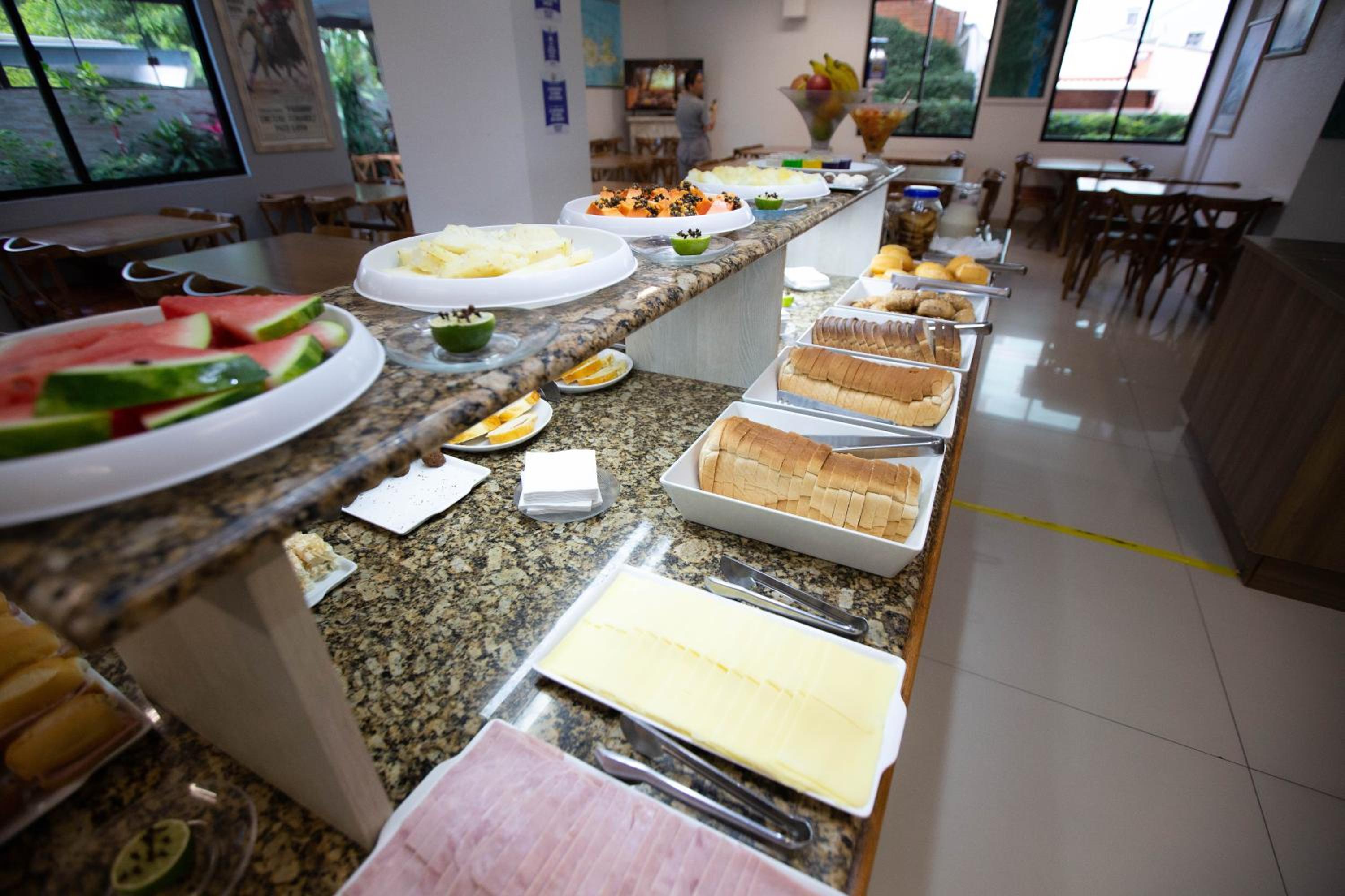 Deveria ter um pouco mais variedades de pães e frutas e algumas outras coisas