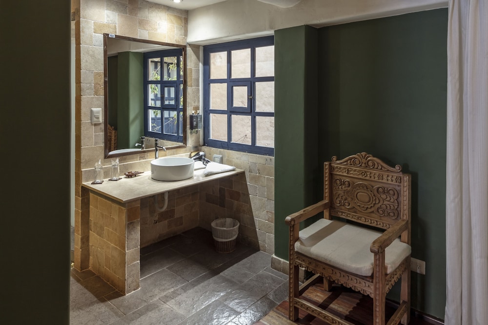 A charming boutique hotel with a lovely courtyard for soaking up the sun. I stayed 3 nights prior to meeting up with my travel group and one night after and felt safe and pampered. It's in a great location-between Plaza de Armas and San Pedro Mercado. They have a restaurant on-site and serve-yourself tea at any hour. The rooms are large and comfortable. The bathroom is open to the room (the only drawback) but of course the toilet is closed off so no problem.