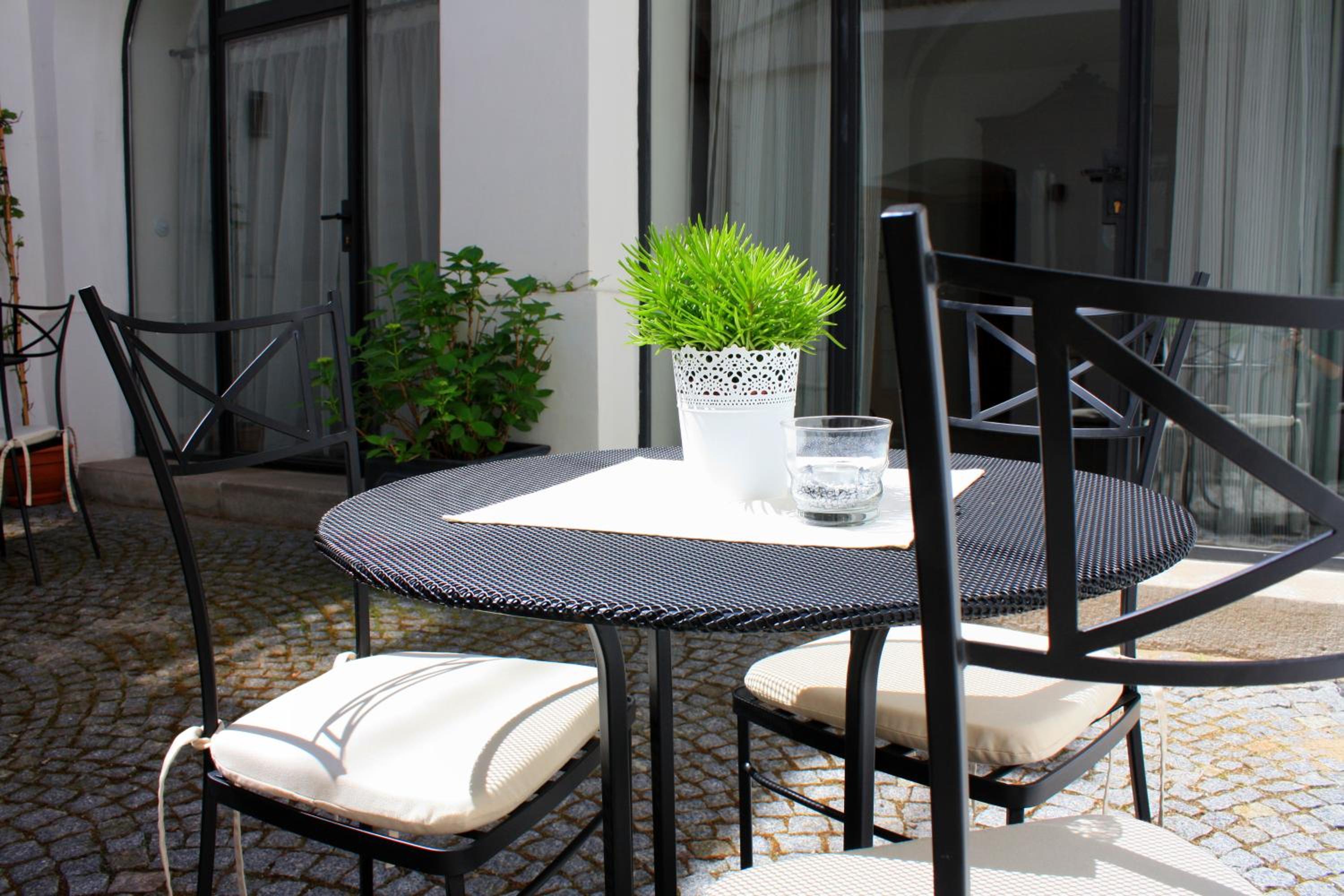 Step into a world of elegance with original 17th-century wooden beams, arches, and frescoes at At The Green Grape. Relax in the outdoor patio with a charming water fountain, or admire the tile stove that adds to the hotel's character.