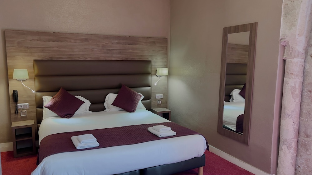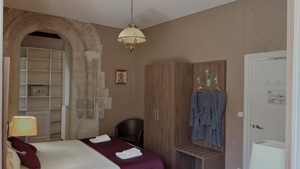 mooie setting ondanks de plastic stoelen aan de ingang, vriendelijke ontvangst. Maar. Geen Wifi, geen dagelijks onderhoud op de kamer, aftandse badkamer, goedkoop ogende inrichting die weinig was aangepast aan het middeleeuwse kader, geen parking ondanks dat dit door Hotels.com wel was vermeld