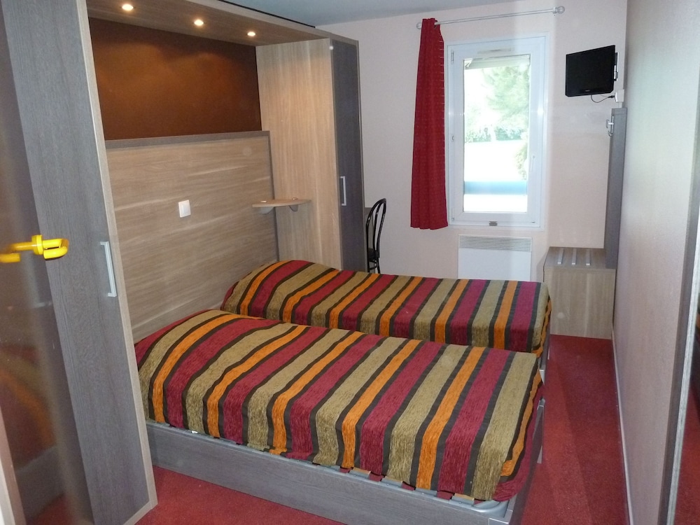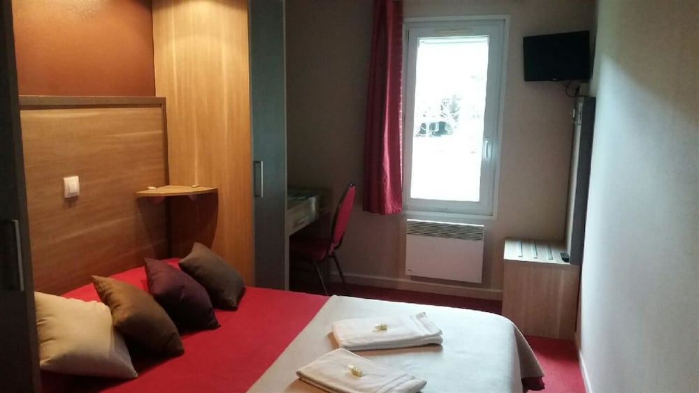 sejour d une nuit dans un hotel style premiere classe avec salle de bain mouchoir de poche et une prise ds la chambre veuillez au moins précisez que c est ce genre d hotel pour que l on e soit pas surpris !!!!! . attente de plus d une heure pour avoir son plat au restaurant !!!!!!!!!!!!!!!! point plus sympa une piscine mais bon .