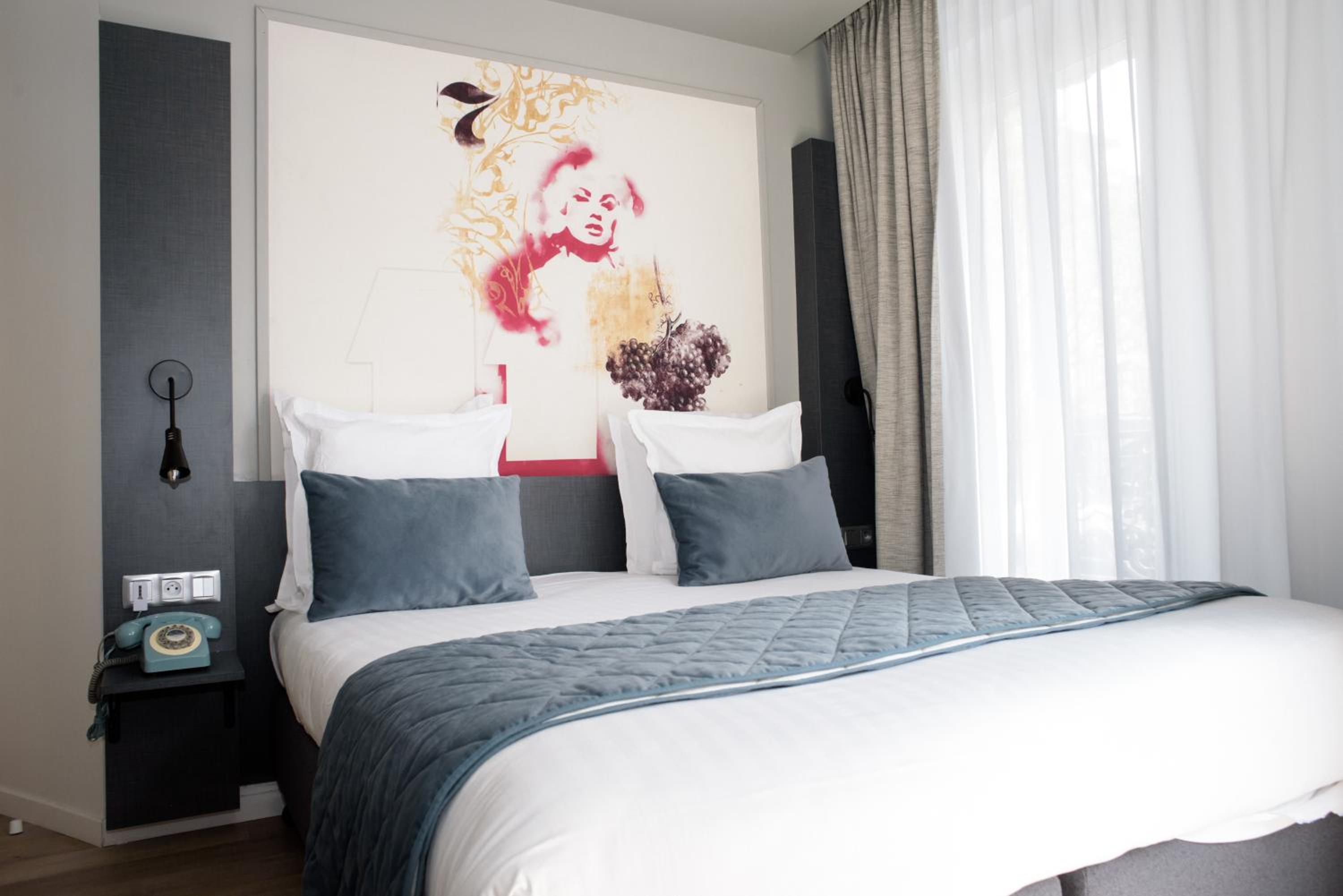 Hotel des Arts-Bastille offers stylish, modern rooms decorated by local artists, providing a unique and creative ambiance for guests to enjoy.