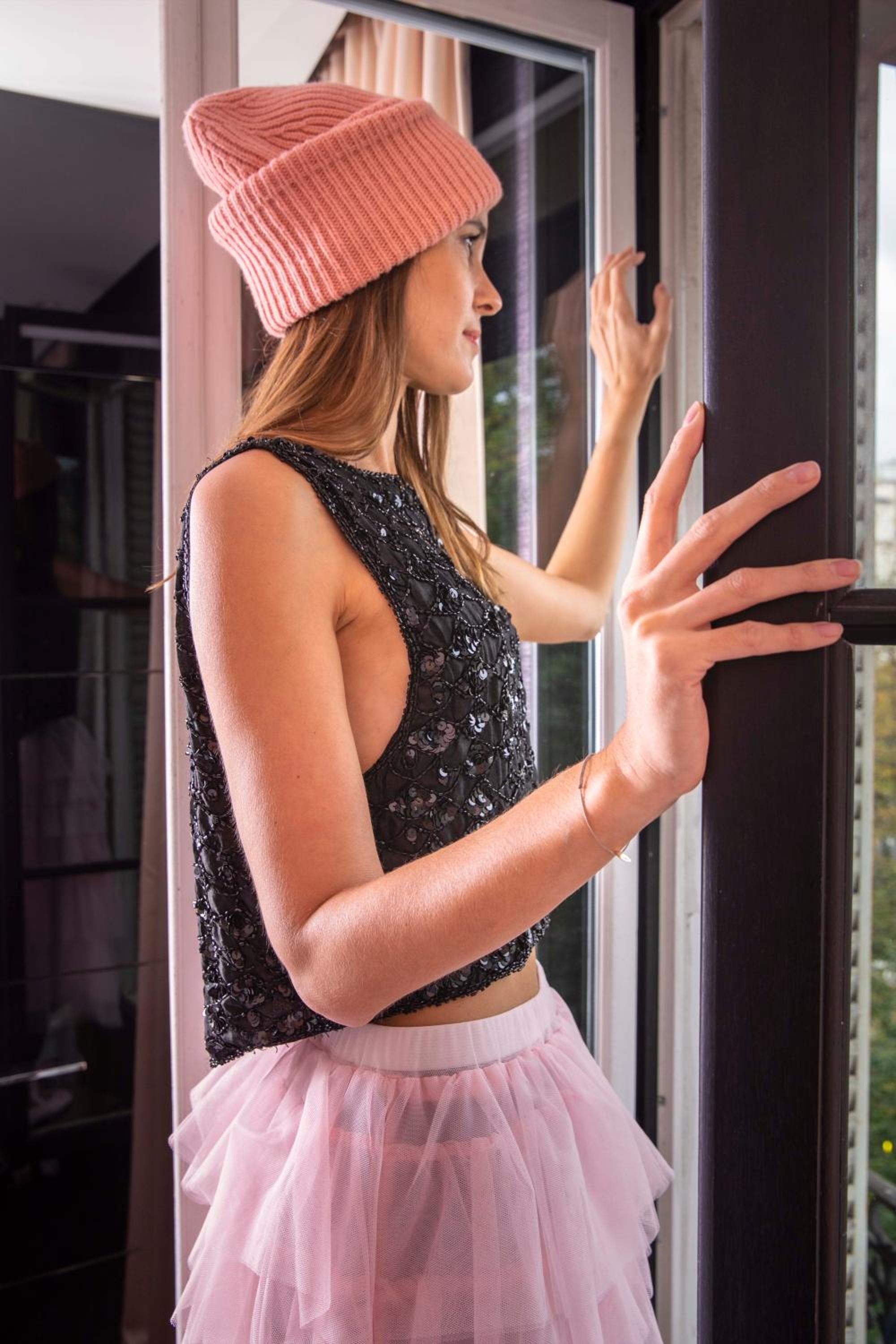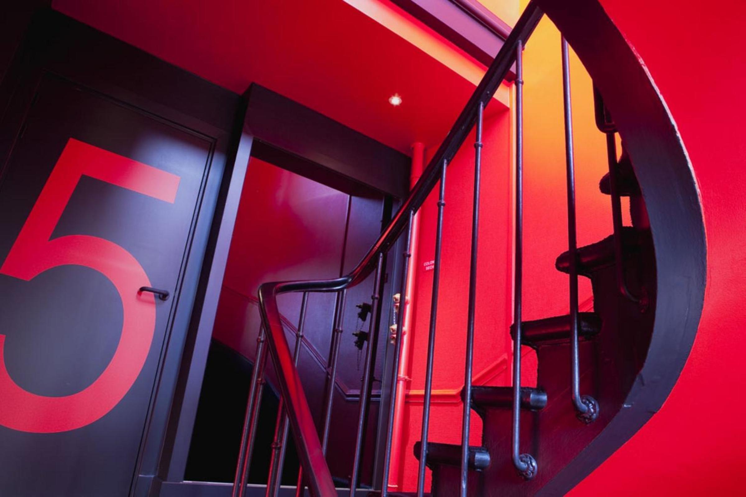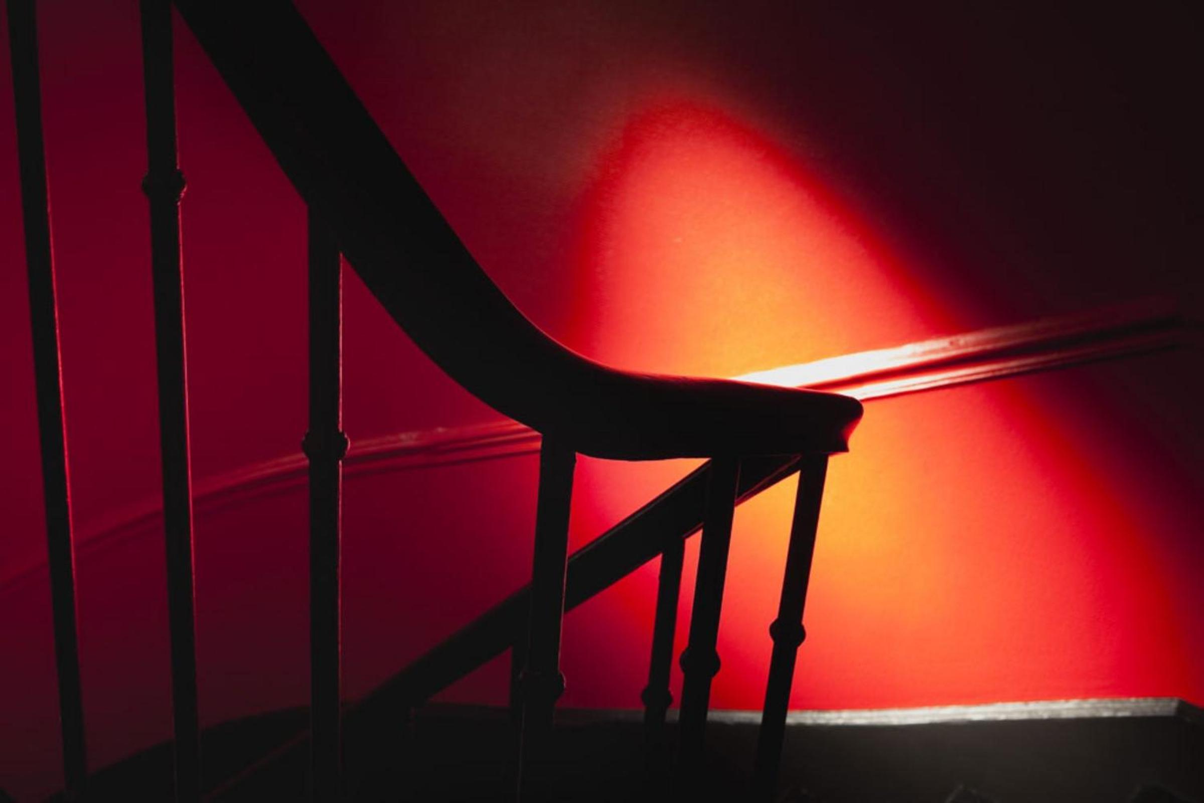 El pasillo todo pintado de negro.