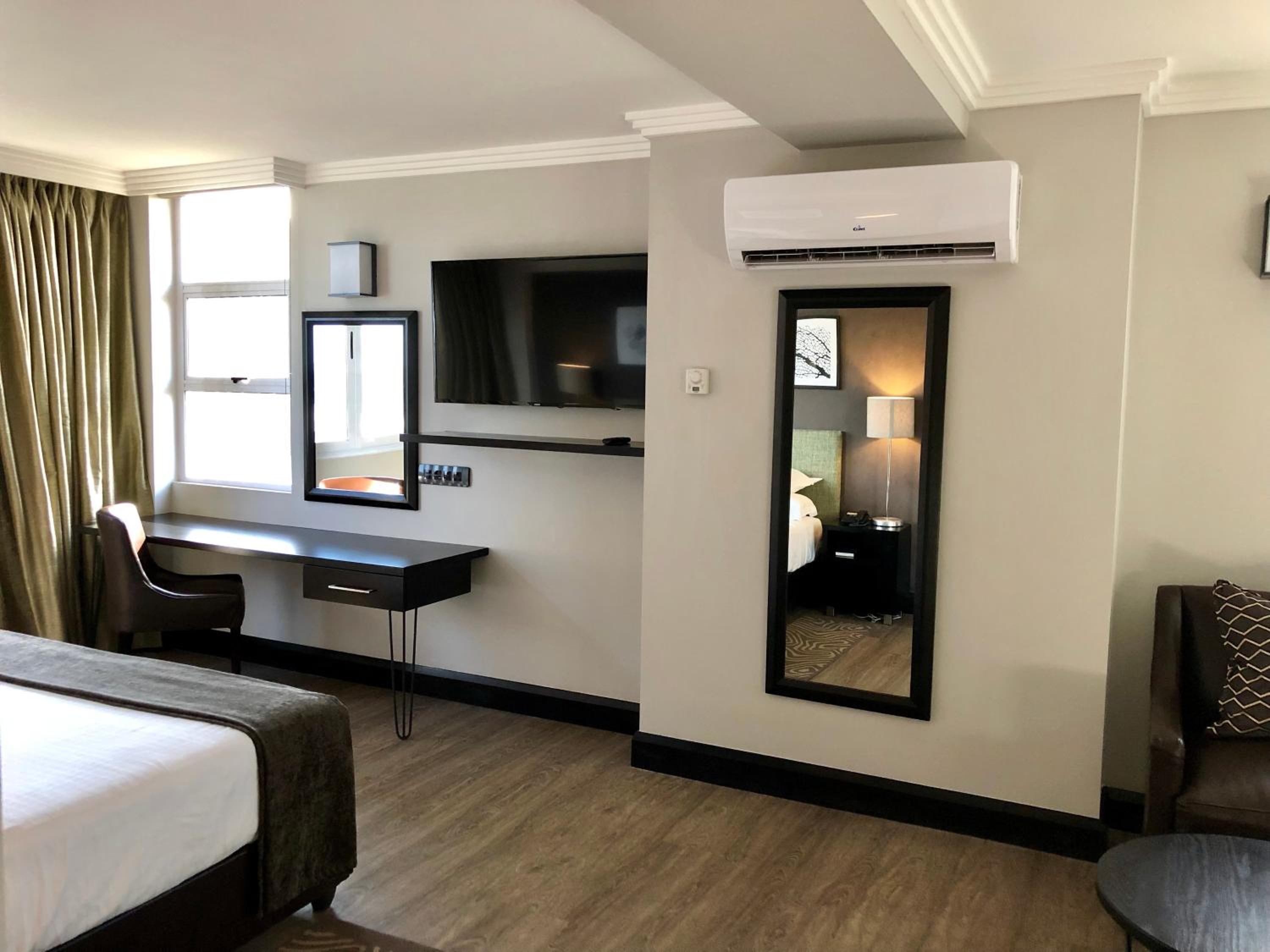 Experience the epitome of luxury at Belaire Suites Hotel, nestled on Durban's North Beach. Indulge in rooms with free WiFi, kitchenette facilities, and marble bathrooms, some boasting mesmerizing sea views. Wake up to a full English breakfast buffet at the Sky Lounge, offering panoramic ocean views. Delight in award-winning coffee at Café Jiran and explore nearby attractions like Greyville Racecourse and uShaka Marine World. With proximity to Durban Station, ICC, and Moses Mabhida Stadium, convenience meets sophistication here. Don't miss the chance to book your stay and immerse yourself in unparalleled comfort and elegance.