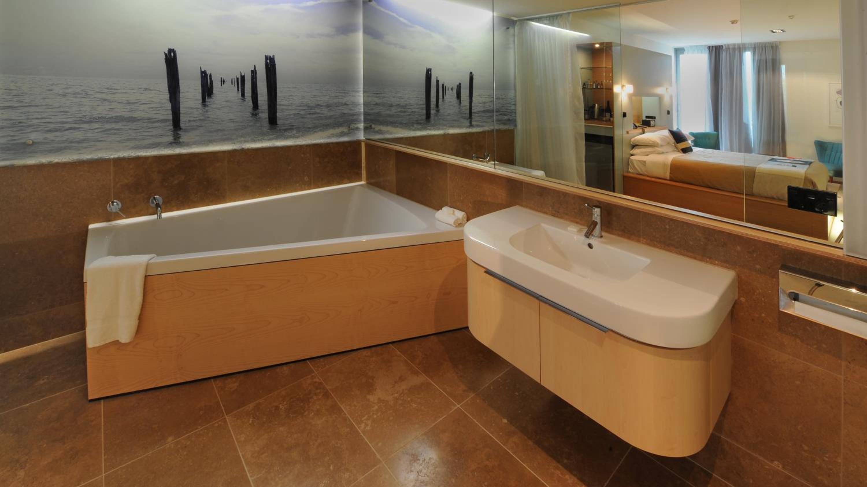 Very modern. Clean and very comfortable. Upgraded to a room with a bath as well as shower. Bath was luxurious. Lovely shampoos and extras, including bath salts. Large room. With sofa and comfy chairs. Massive TV. Staff were so helpful and friendly. Breakfast was lovely. Looks slightly off when you pull up but absolutely lovely inside.
