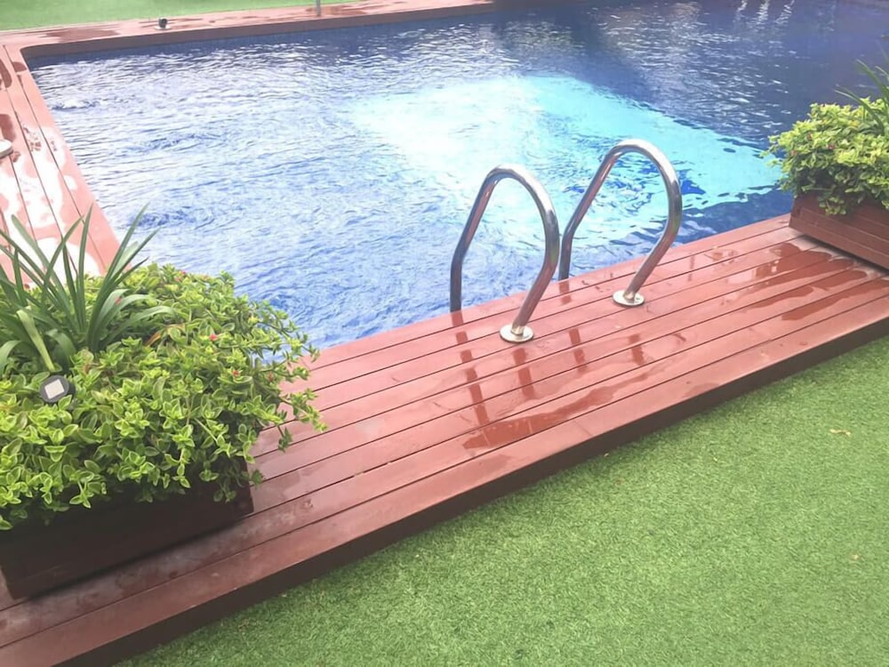 Te ofrecen una piscina que no es ni del hotel. Sino del club. Preguntas por ella y te dicen que no tienen piscina... Y te quedas medio loco... Pues que fotos has visto tu... Con piscina... Con una fachada limpia... Luego a escondidas te dicen que la puedes usar hasta las 4. Hora que empieza la fiesta de piscina en el club...