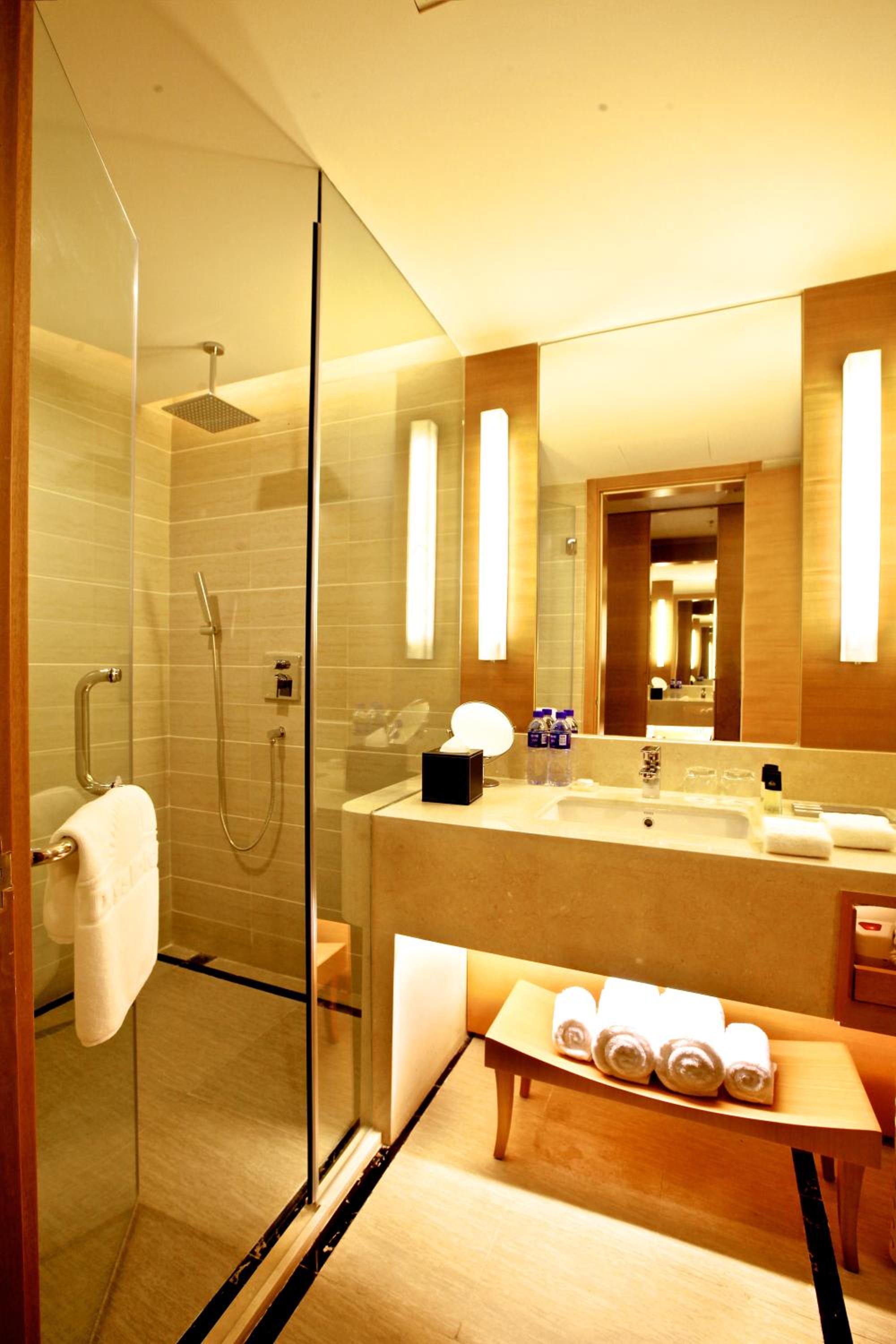 Experience comfort in spacious guest rooms with modern interiors, full-length windows, and essential amenities like a minibar, tea/coffee facilities, and high-speed internet access. Unwind with 24-hour room service and provided ear plugs for a peaceful stay.