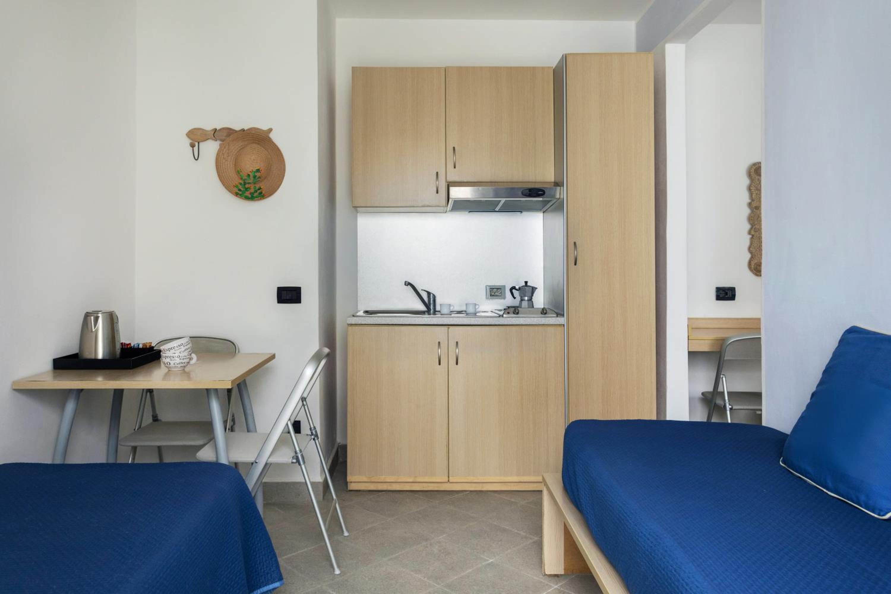Indulge in the comfort of modern, air-conditioned apartments at Stella Marina, each adorned with Mediterranean color schemes. Enjoy the convenience of a well-equipped bathroom with a hairdryer, and revel in the possibility of waking up to breathtaking sea views.