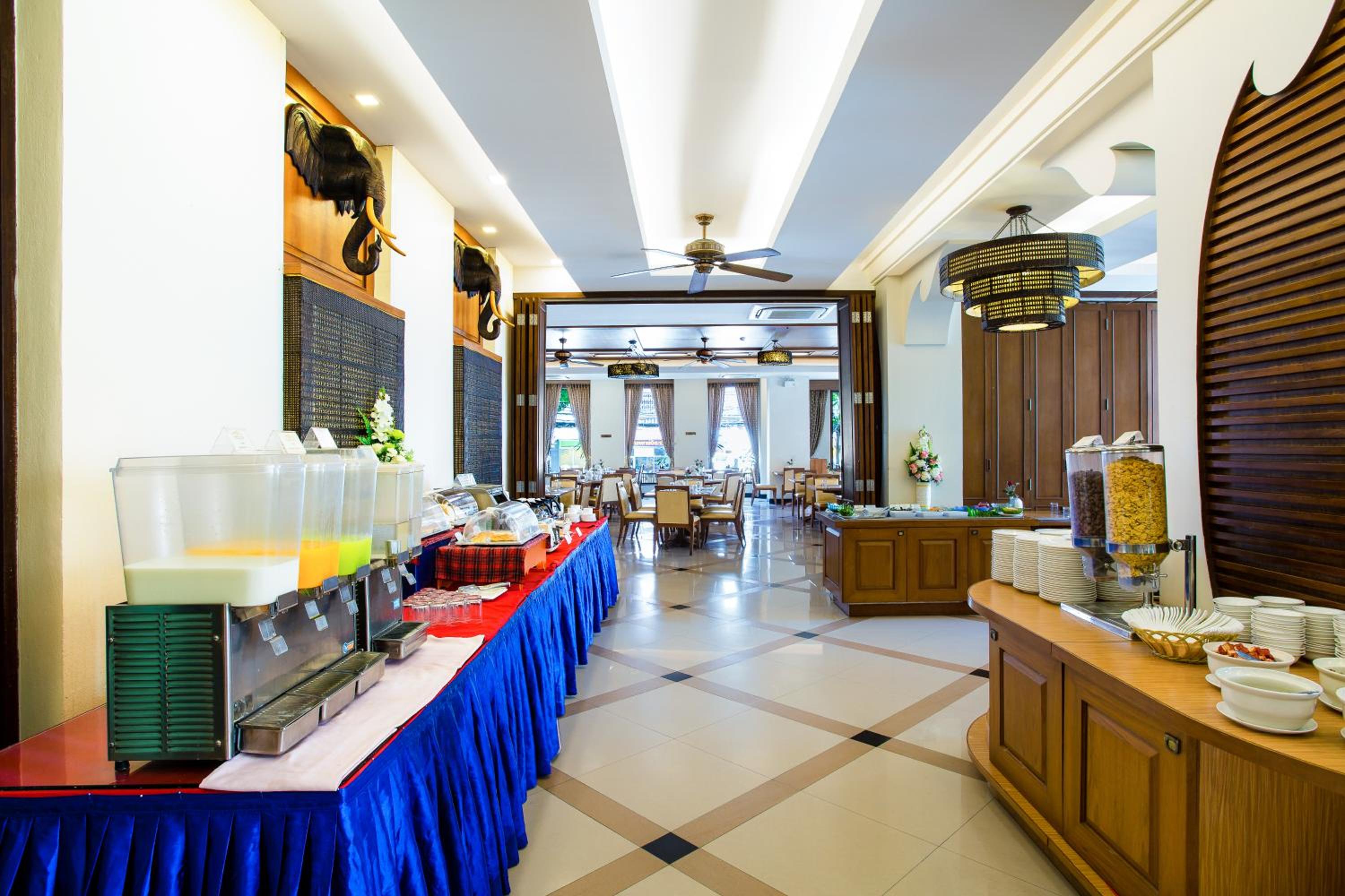 Savor Thai and European cuisine at Aiyara Restaurant, complemented by a selection of drinks at the bar and beer terrace. Don't miss out on the vibrant cabaret shows and shopping at Central Festival Pattaya nearby.