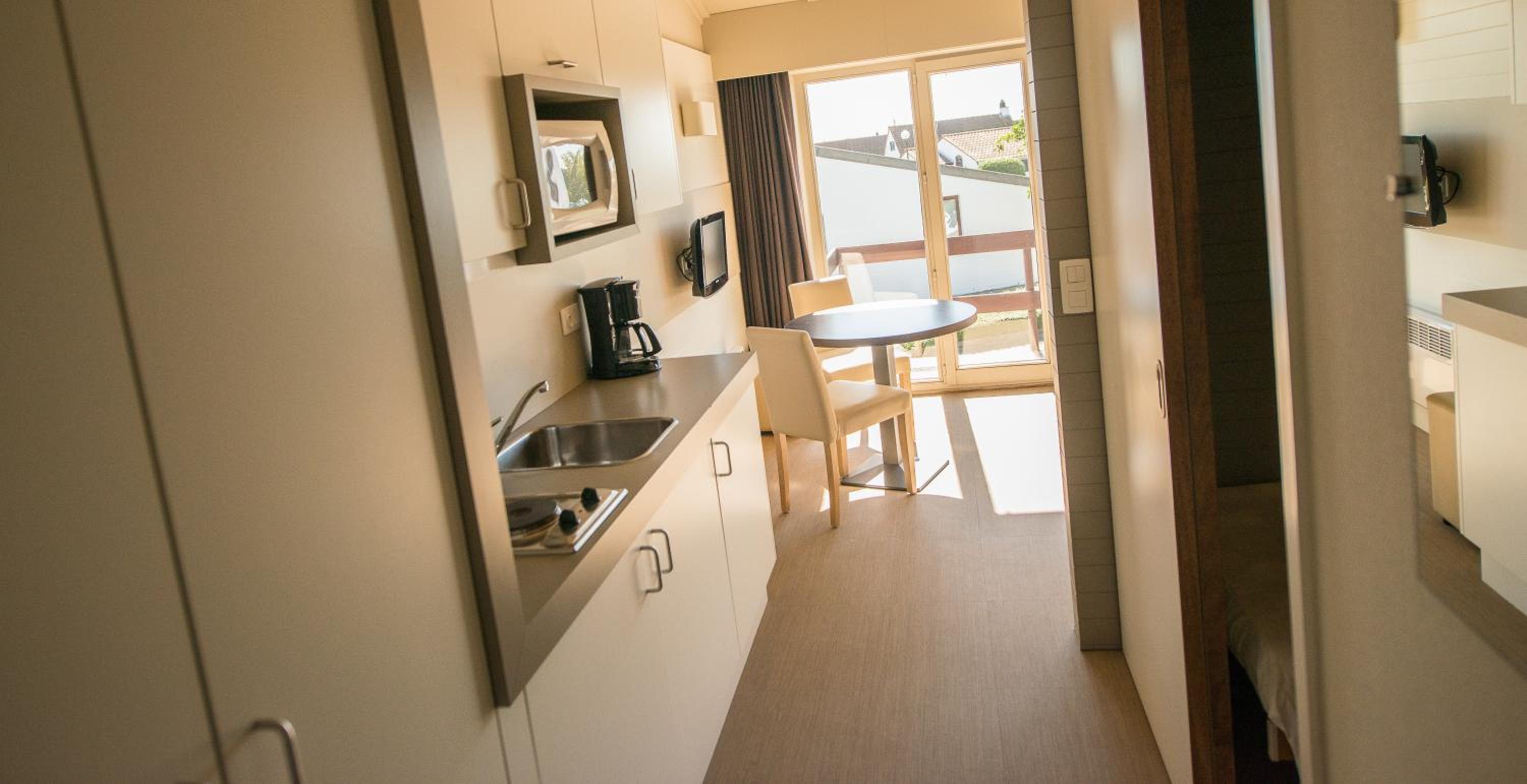 Zeer aangenaam met venster en glazen deur, veel lichtinval