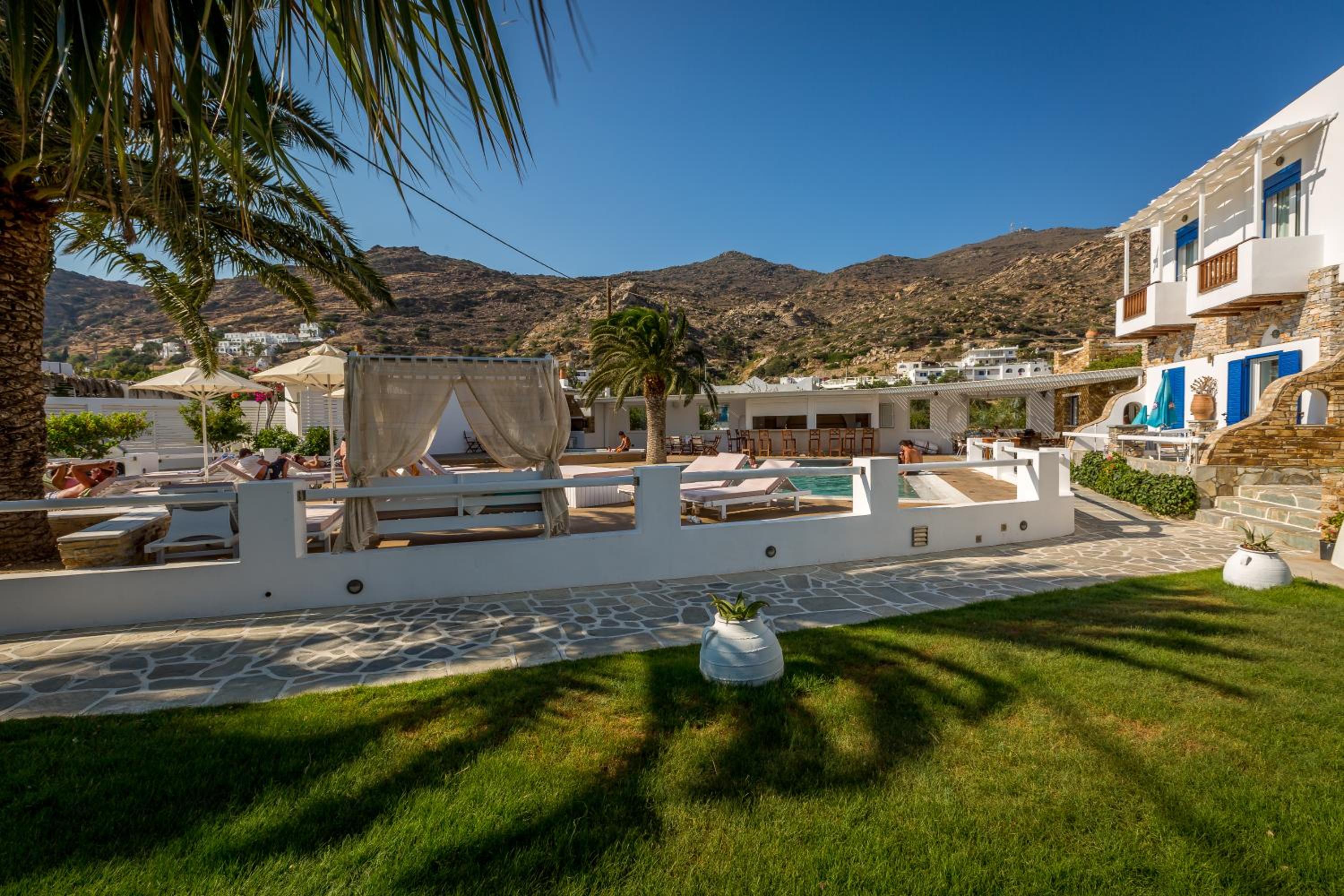 Ottima posizione sulla spiaggia più attrezzata e frequentata dell’isola. Buona dimensione delle camere. Zona piscina ottima. Il proprietario e i suoi figli sono simpatici e disponibili per consigli e informazioni. Ho usufruito del servizio navetta da/per il porto sia all’andata che al ritorno.
