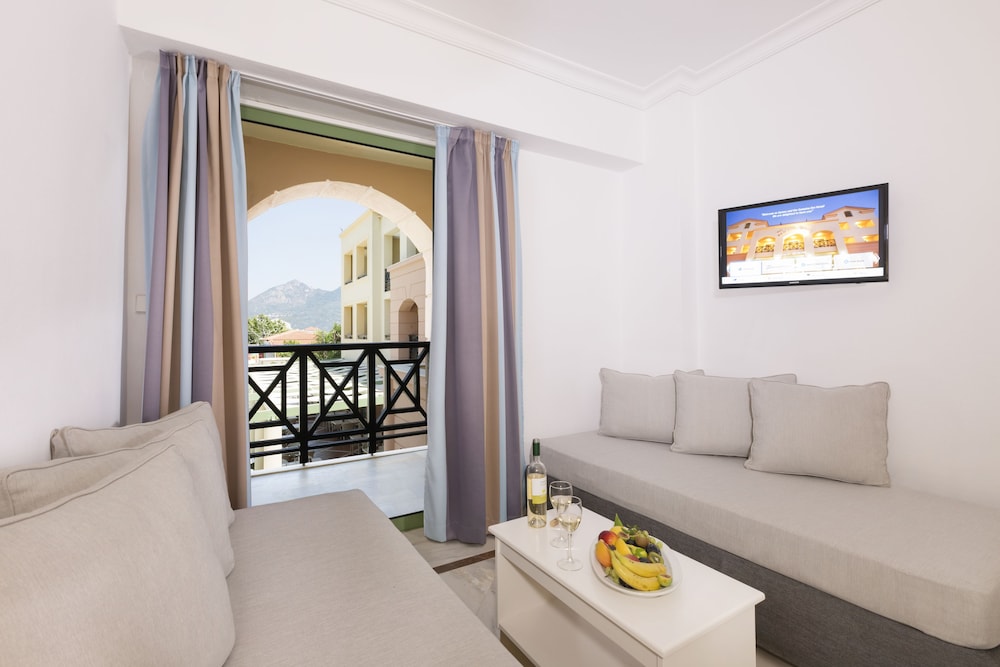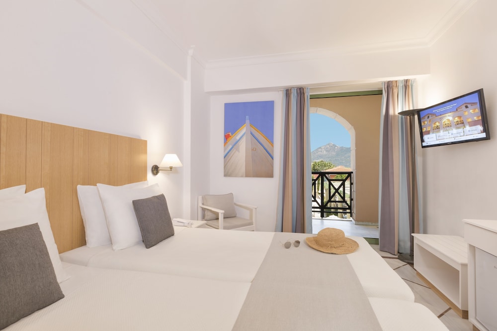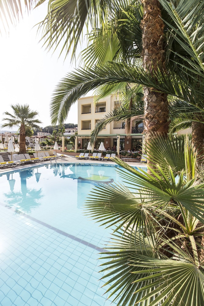 resort type hotel. very courteous staff, great beach location, Samos Beaches however are rocky thought the water is great. Buffett is fairly extensive though not inspired. families predominate with pool side activities