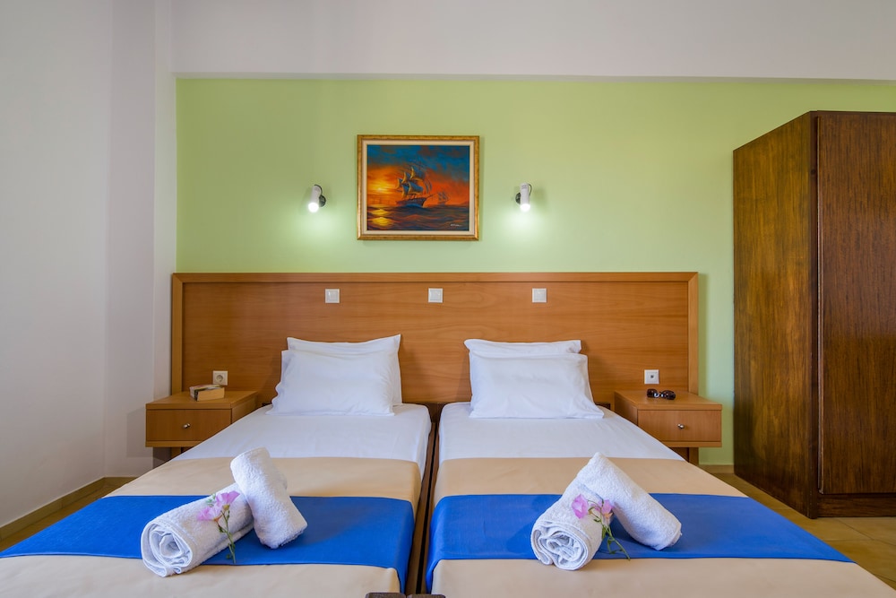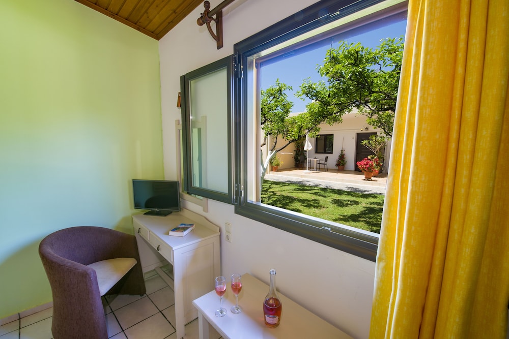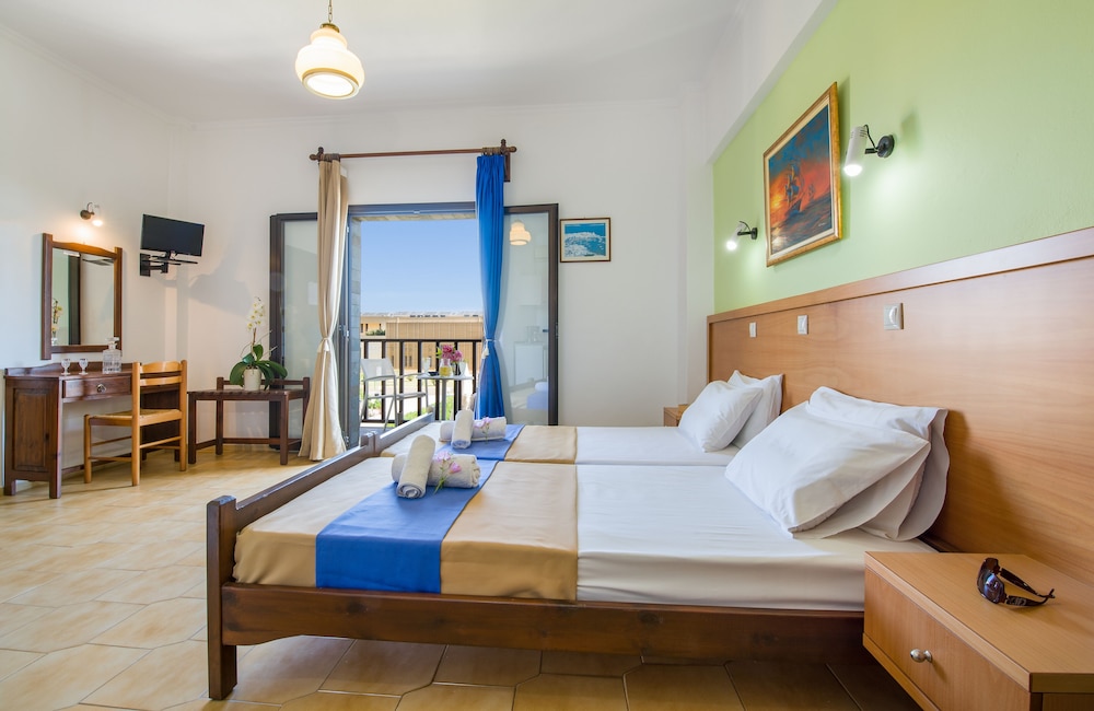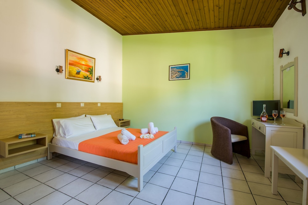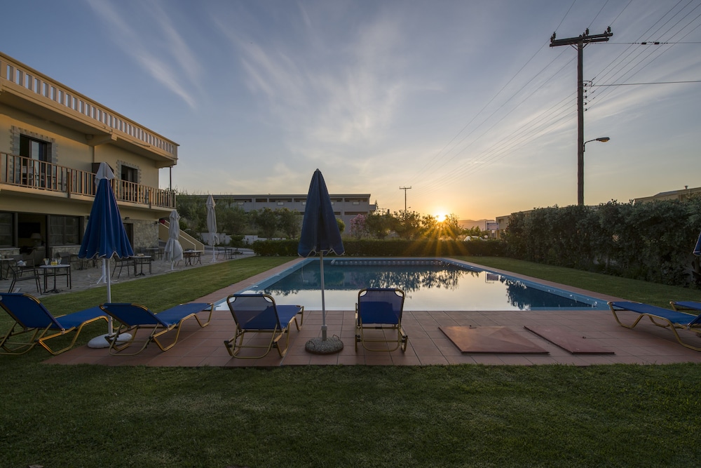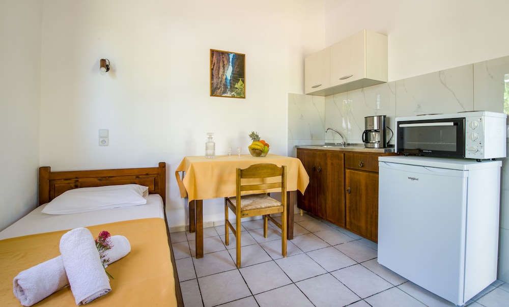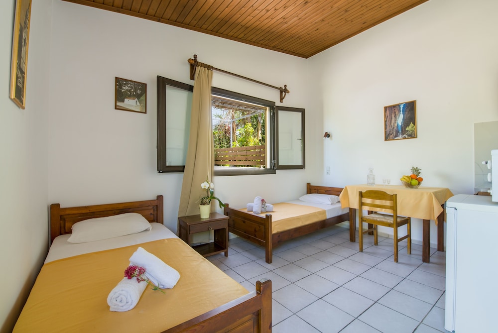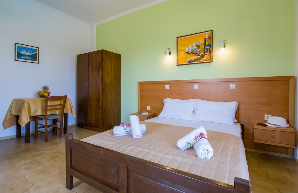 Well, I was due to stay 14 days but I left after 4 partly because I was the only guest in the place ( with no signs oanyone else coming to stay there), and partly because their advert states they had bar and restaurant there. This is entirely untrue and so I moved to a much better busier place nearby. Studios Anthea where I moved to was excellent. On the beach and with pool, bar and restaurant made it a great place to stay.