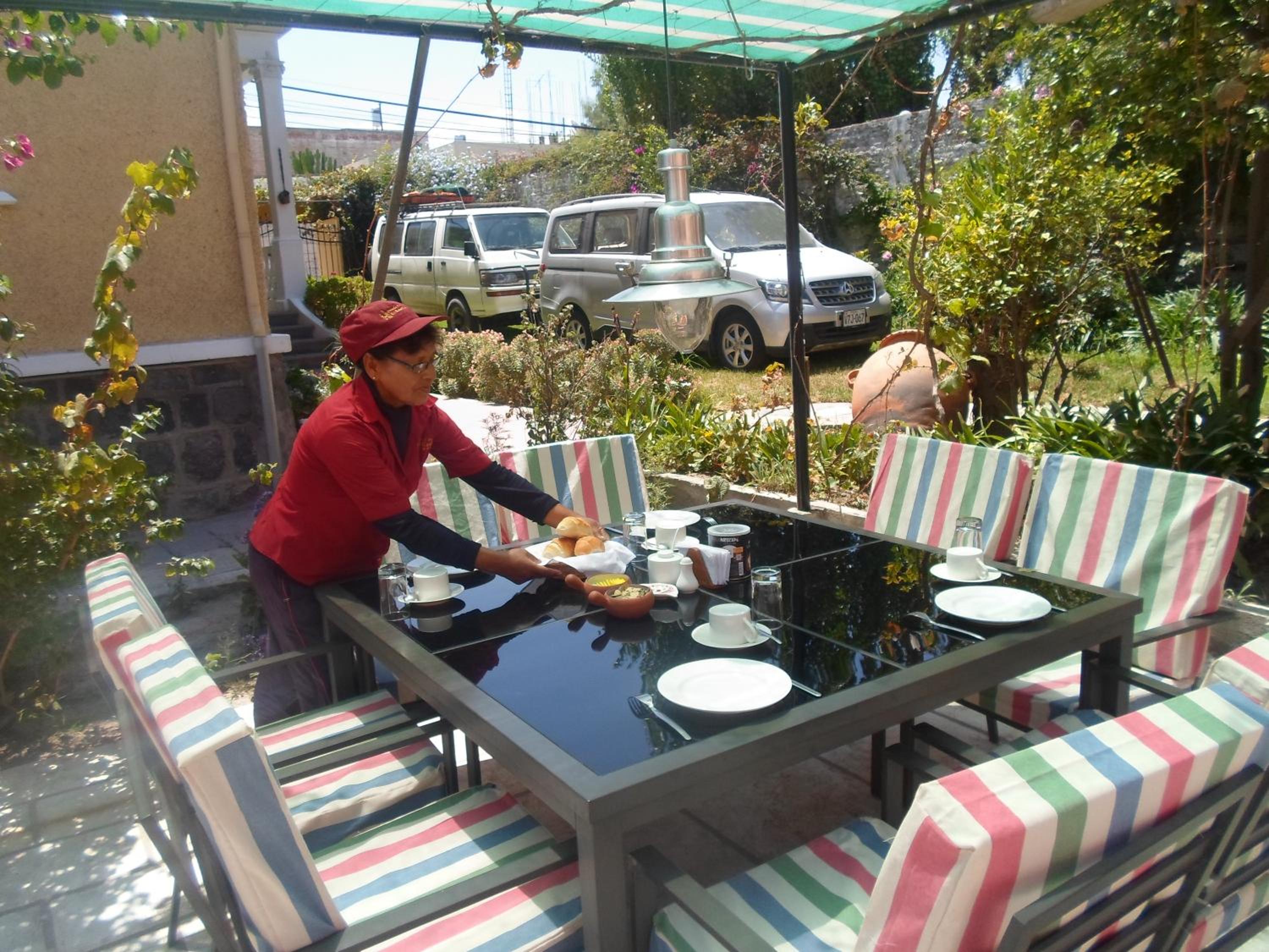 This is a very nice hotel situated in an old mansion. My wife and I have spent 2 nights there and we were very happy of our stay. It is a family run hotel just a 15 minutes walk for the Plazza de Armas. The room was spacious and very clean. We liked very much our balcony overlooking the garden and having a view of el Misti from the room. The garden was so lovely and well tended. Nice breakfast with fresh fruit juices. The owner was very very friendly and allowed us to check out late for our evening bus ride to Cusco. We would stay here again and highly recommend it!