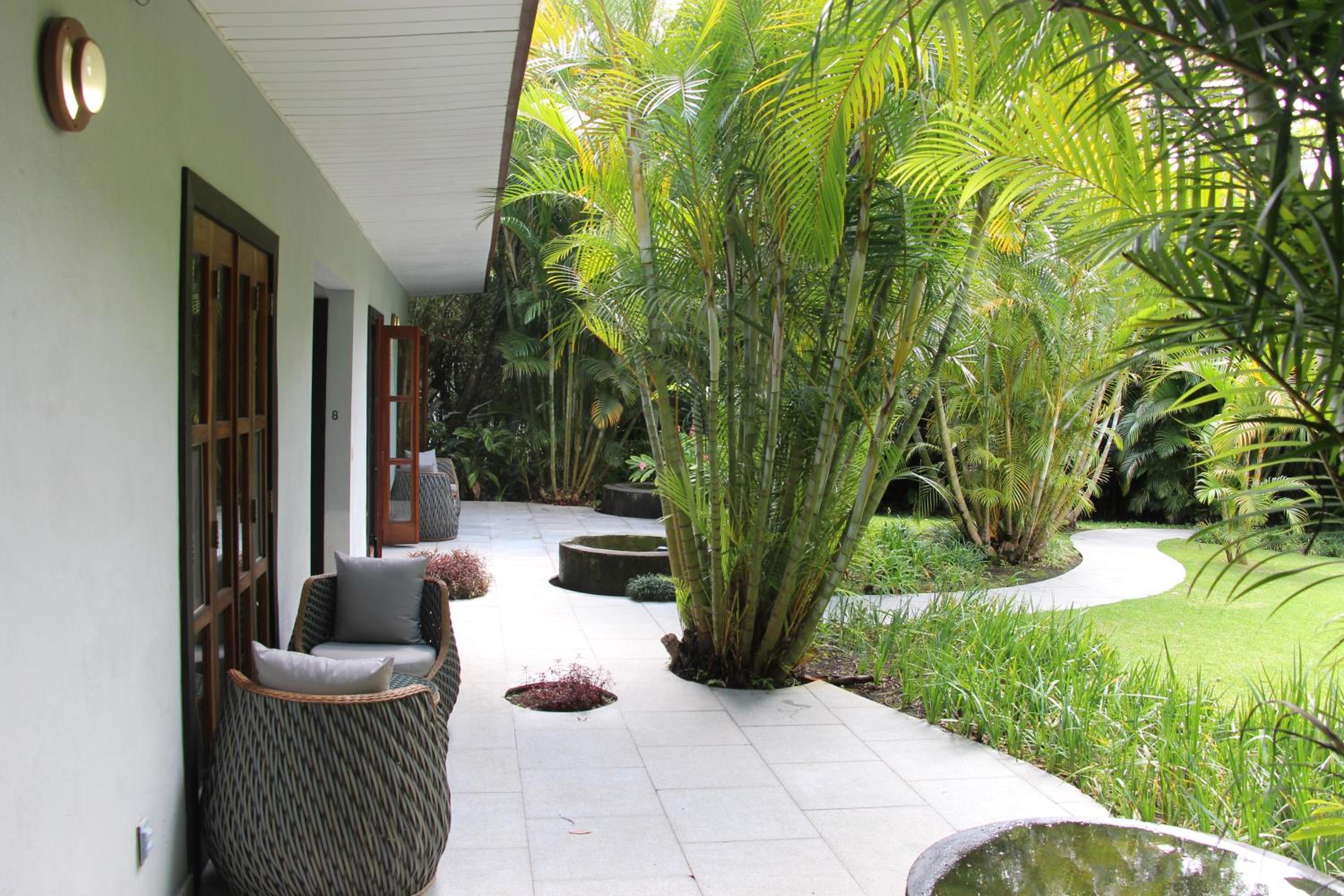 La tranquilidad del hotel y el jardín con el jacuzzi.