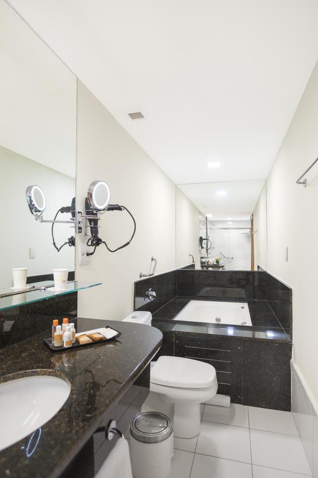 Guests can start their day with a substantial buffet breakfast that includes a variety of hot items, tropical fruits, fresh bread, and cakes. The hotel is conveniently located near Vitória Shopping and only 6.5 km from Eurico de Aguiar Salles Airport.