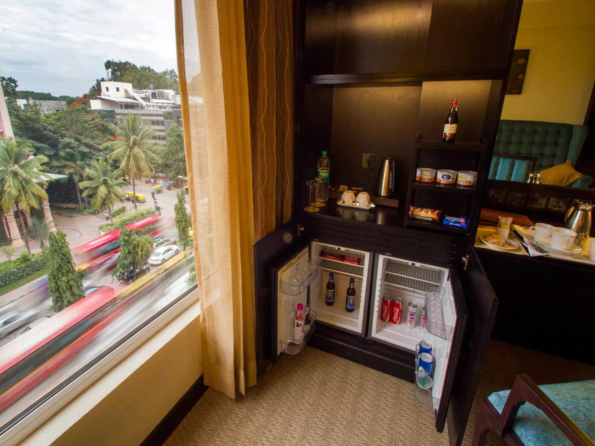 My wife and I stayed at an Executive Suite and the room was clean and comfortable. The location of the hotel is close to Indiranagar where I had some work. One drawback is that Old Airport Road is quite busy, but you really don't hear any noise in the room. All of the staff are exceptionally friendly and helpful. The hotel also provides a comfortable car with a driver which we rented a couple of times for sight-seeing in Bangalore. The hotel library is a convenient place to host business associates and guests. When we visited, several of the aerobic machines in the gym were not functioning.