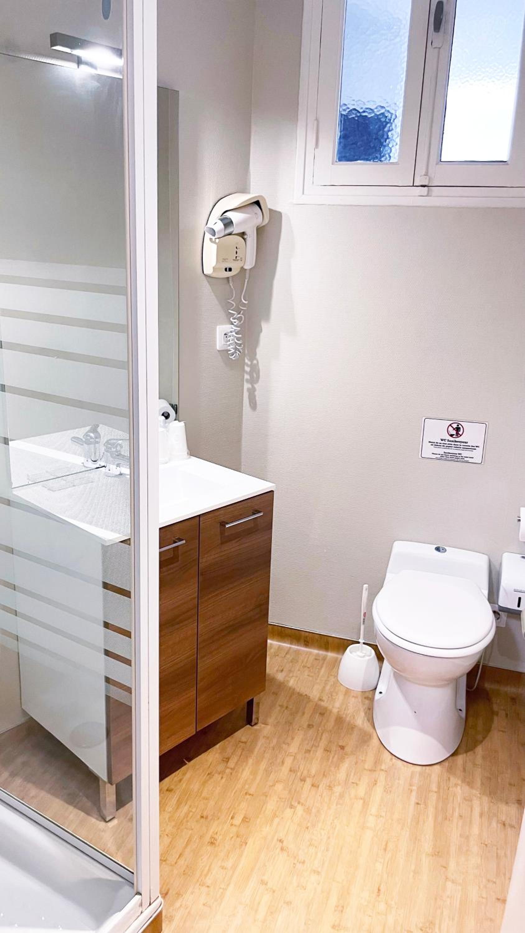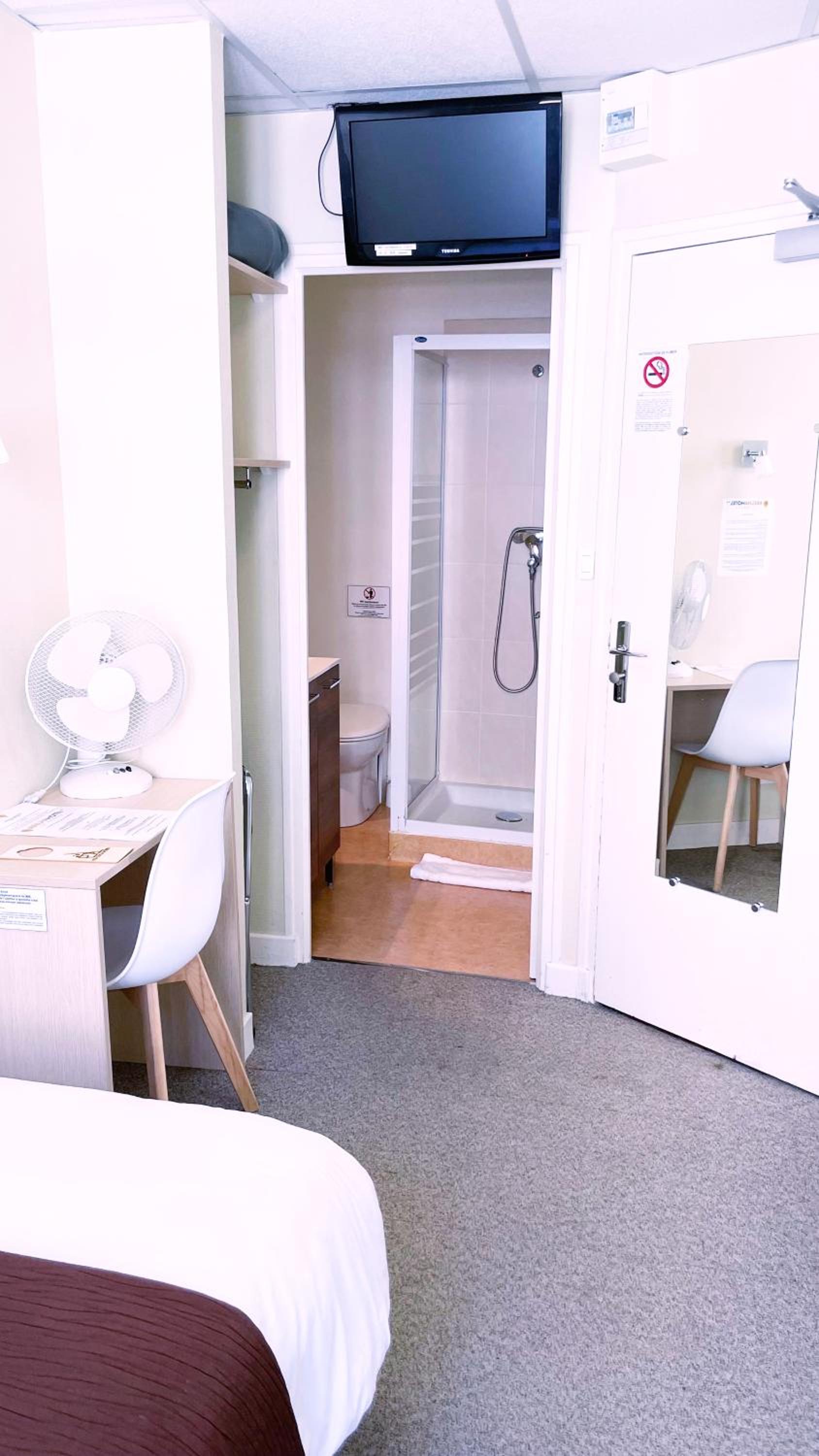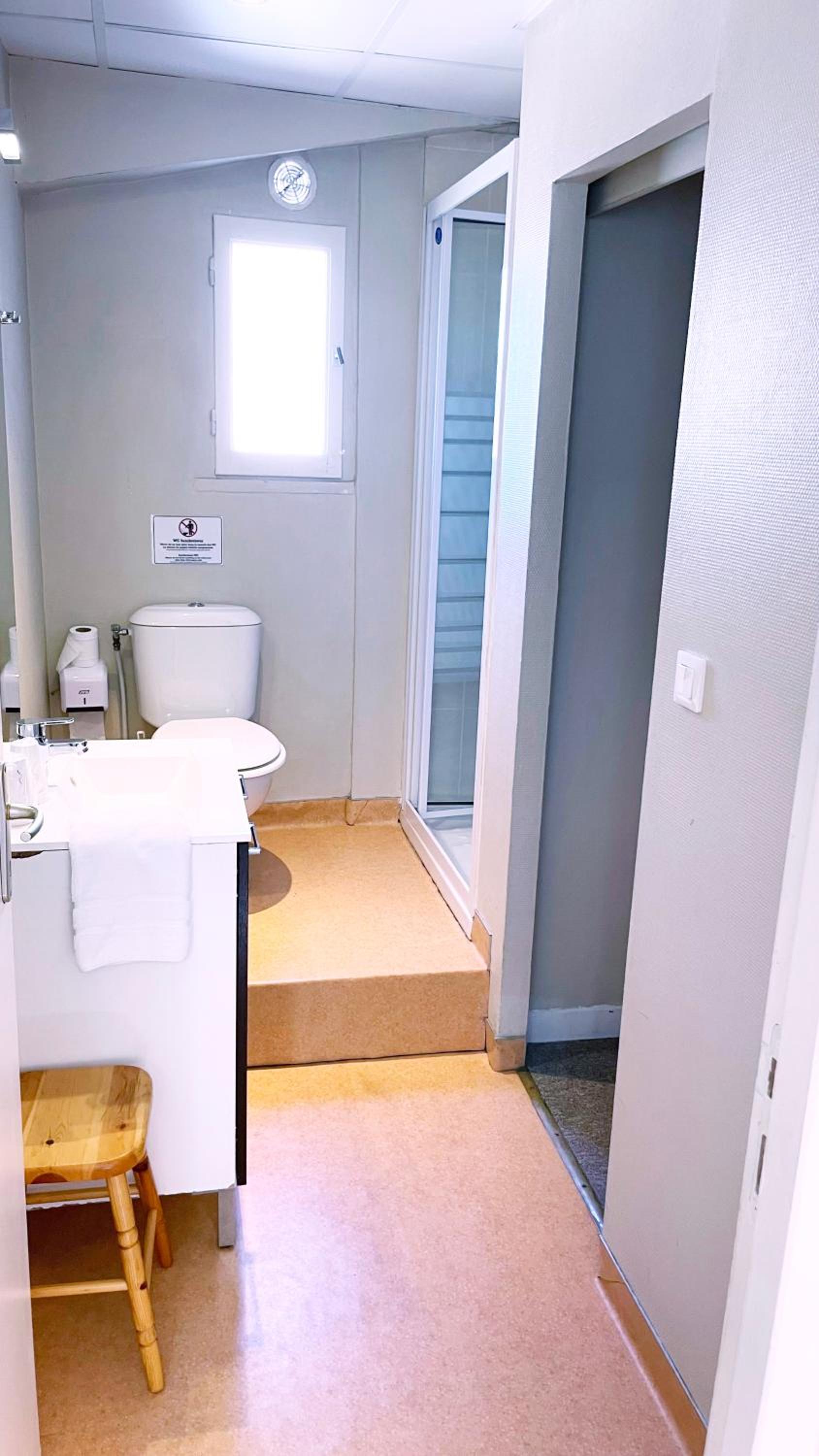 Toilettes trop exiguë, et bruyant.