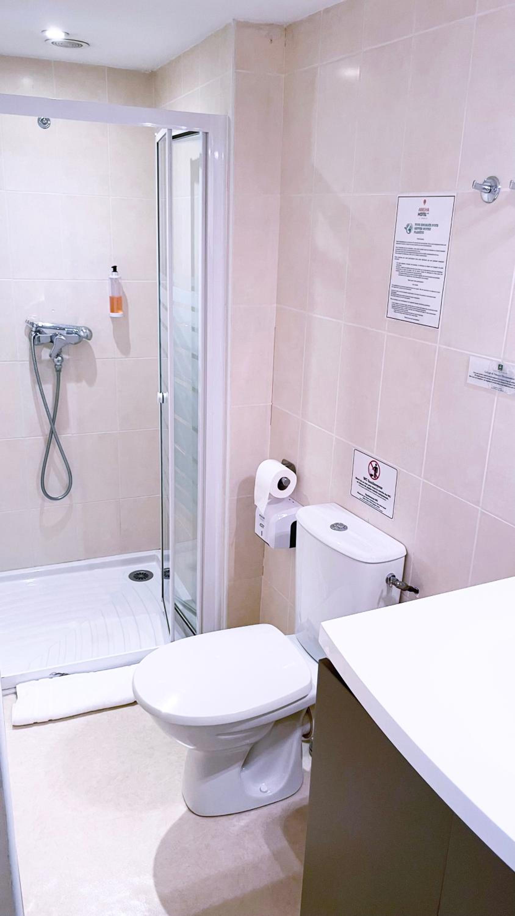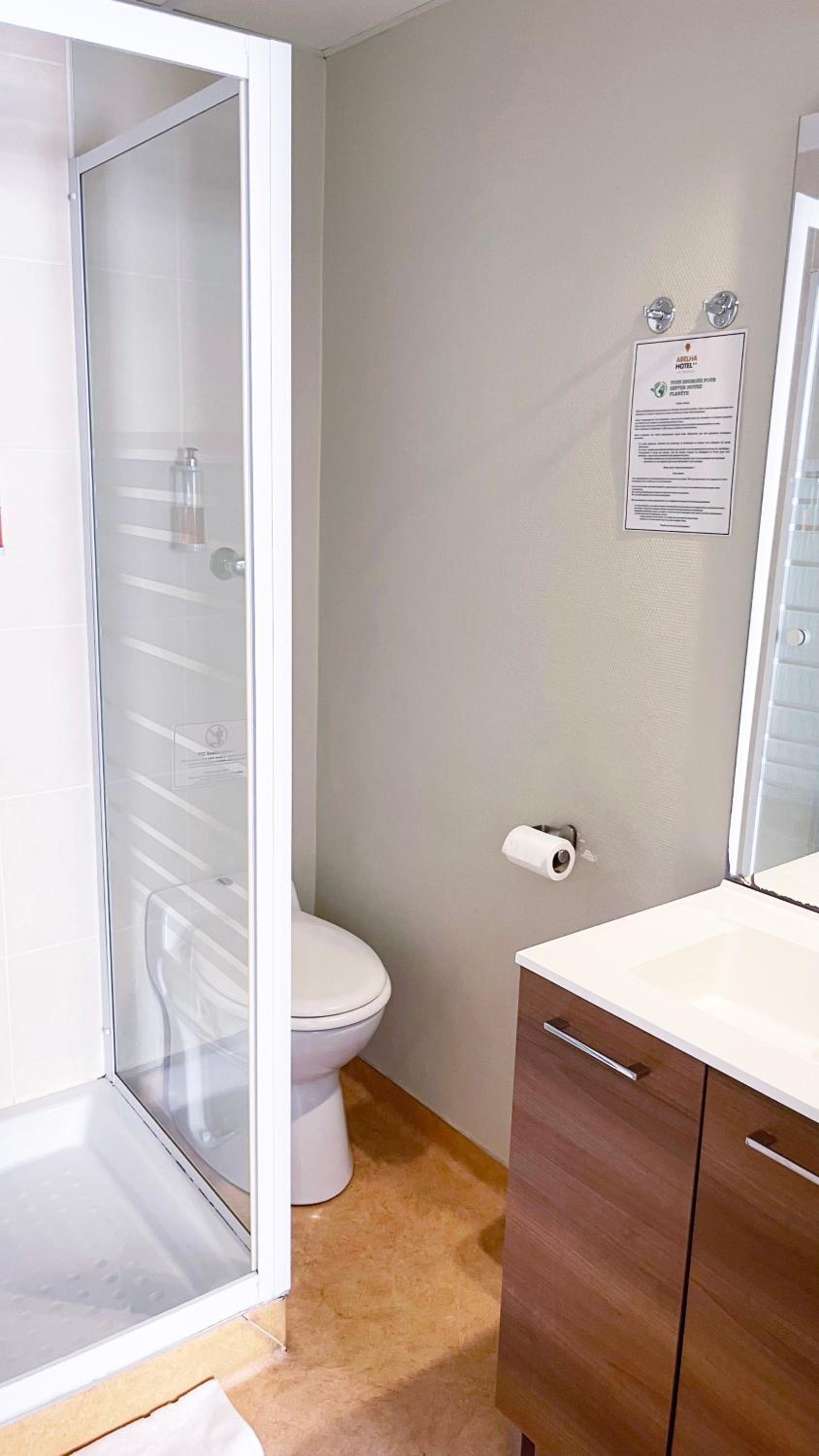 La habitación limpia, con una ducha limpia y con todos los elementos necesarios.