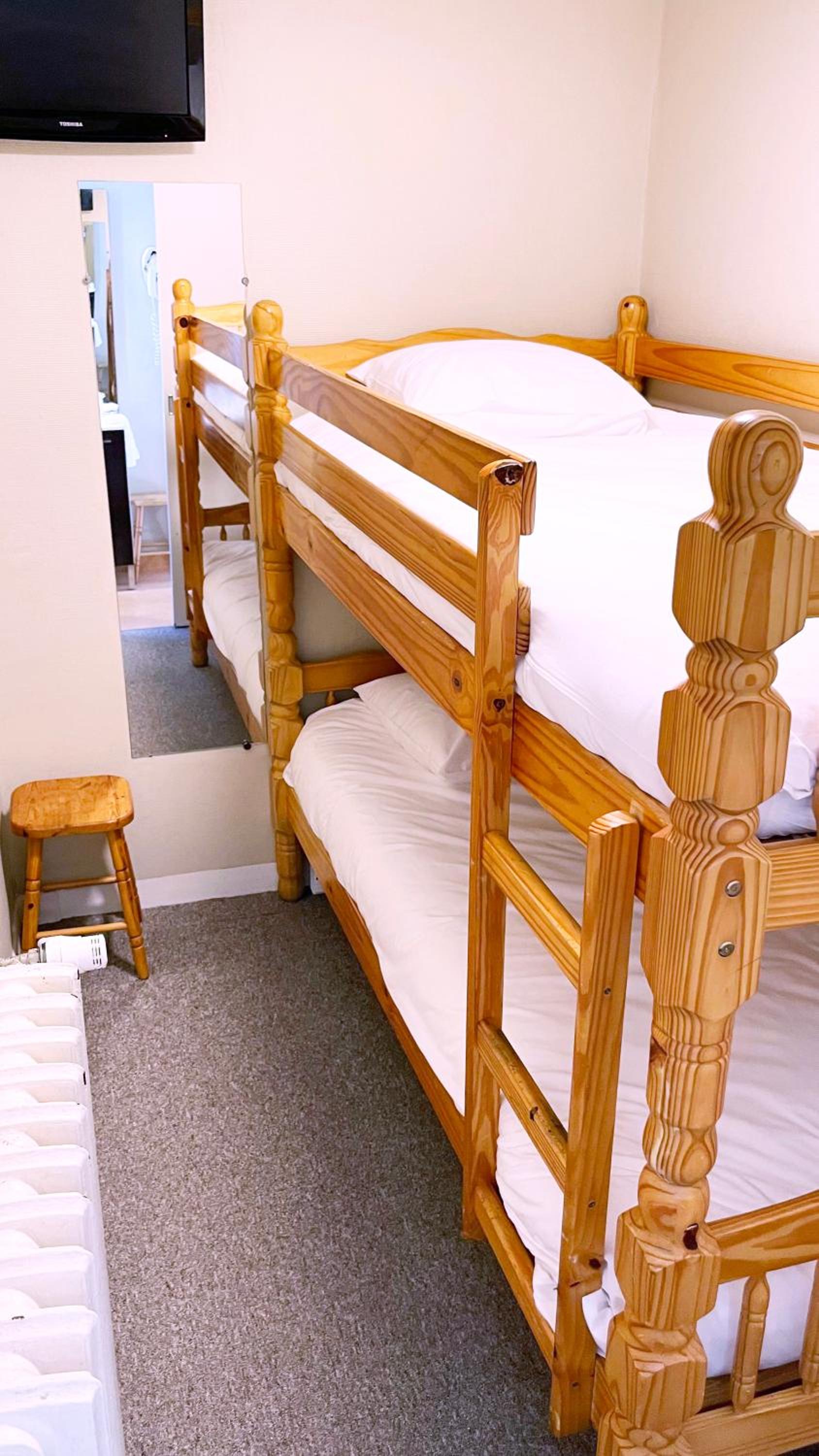 Comfortable Rooms: Each room is equipped with essential amenities like a desk, flat-screen TV, and a private bathroom. Enjoy a restful night's sleep with the provided bed linen and towels.