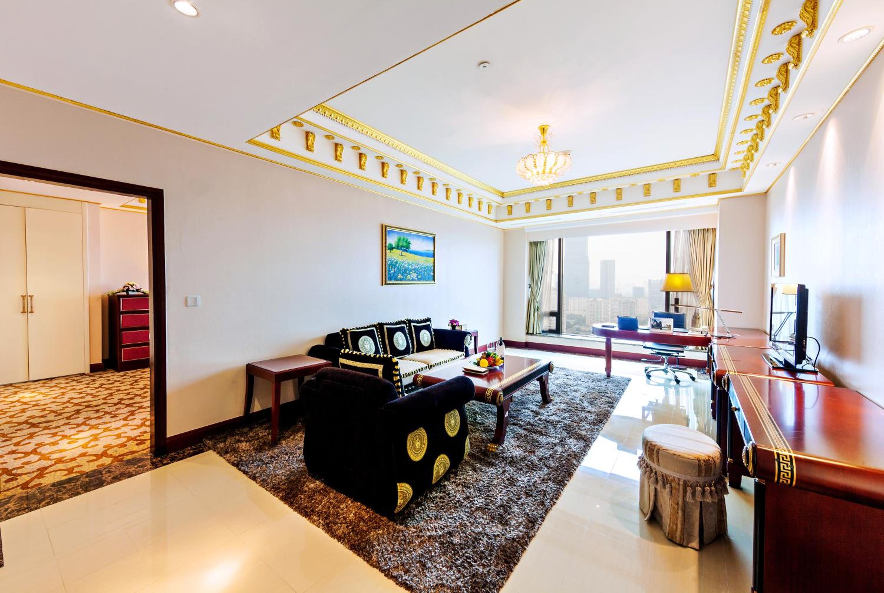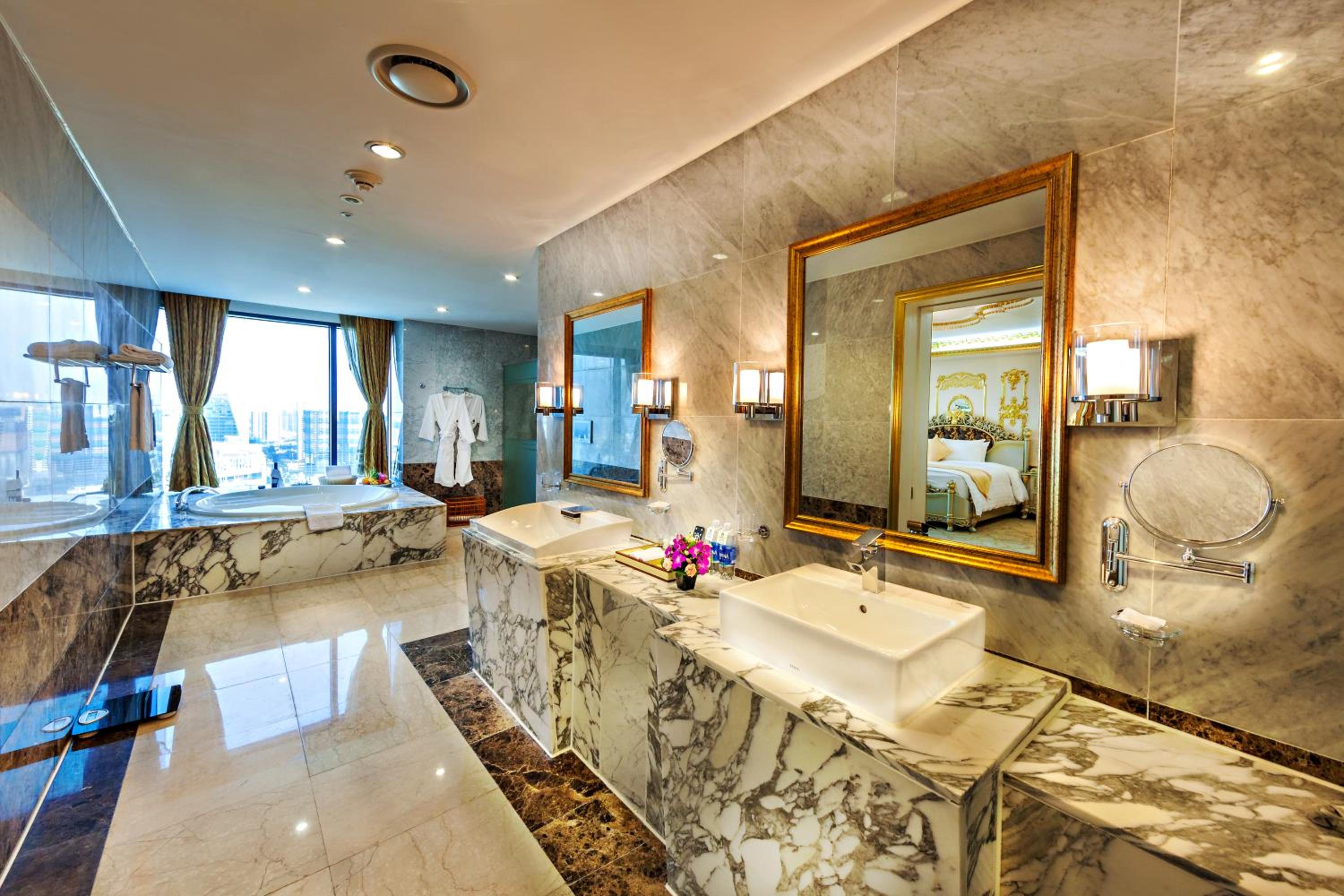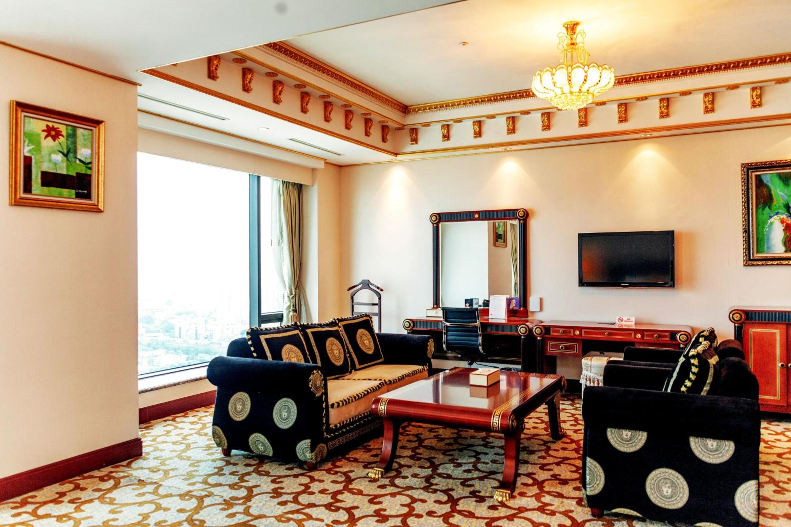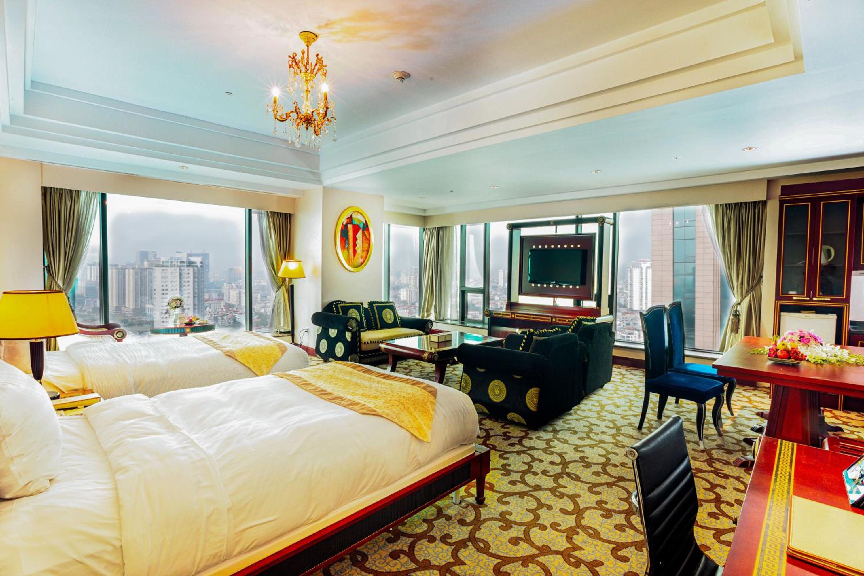 Experience elegance and comfort at the 5-star Grand Plaza Hanoi Hotel, offering spacious rooms with free WiFi, flat-screen TVs, and glass-walled bathrooms. Enjoy the convenience of a minibar, safety deposit box, and complimentary toiletries for a relaxing stay.