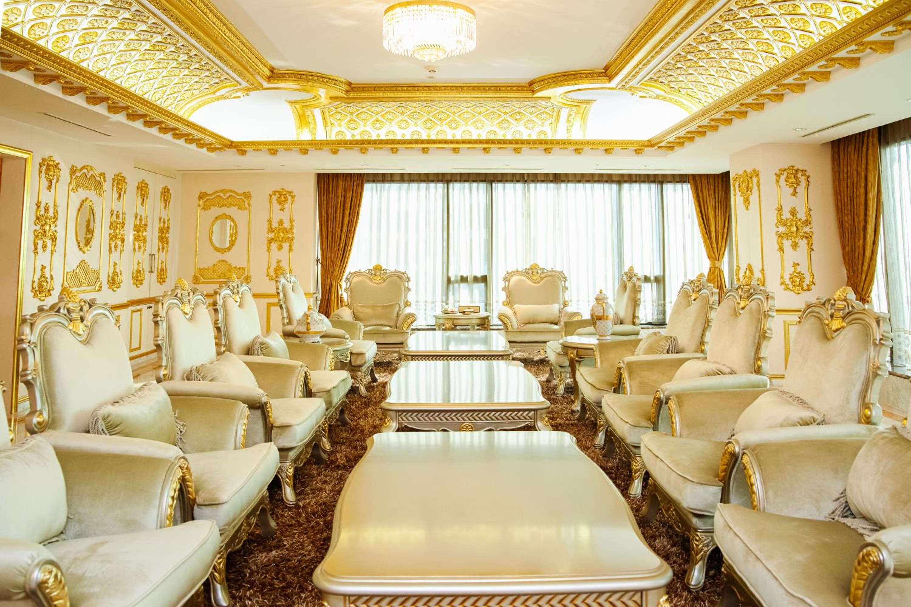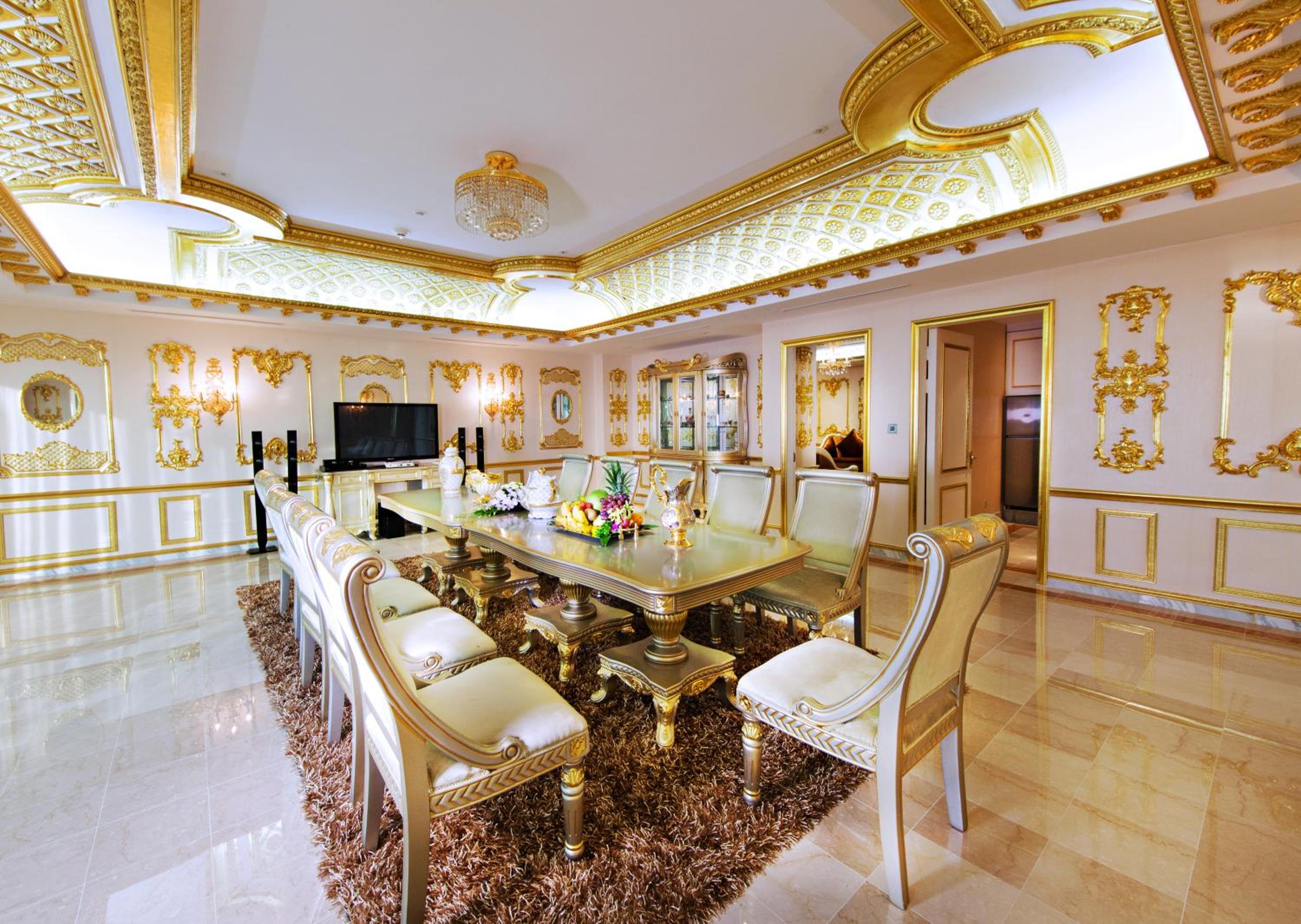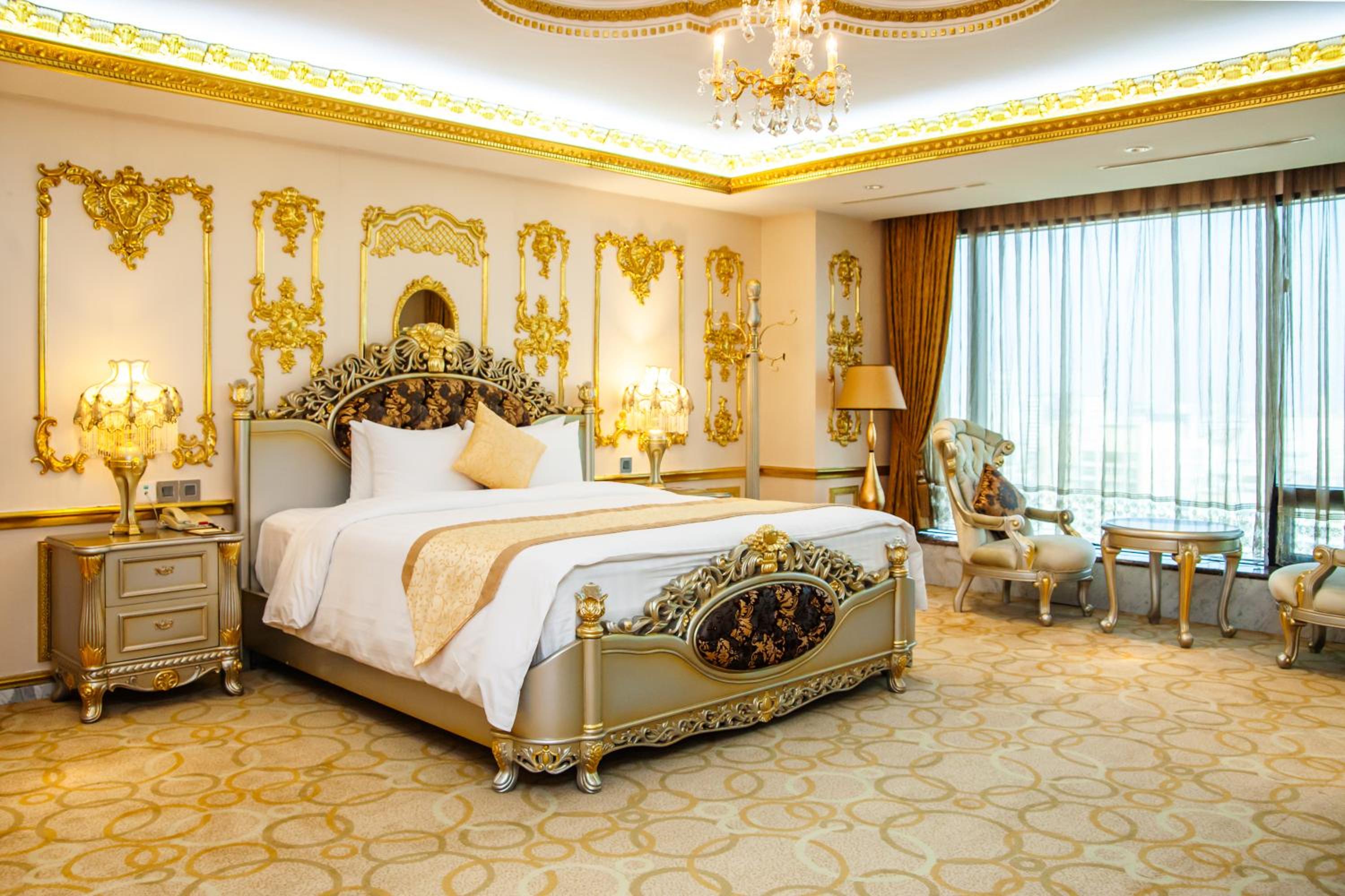 exhaust fan not strong enough to fan away smells; room is dated and requires major design configuration/renovation; simple is best in the event that a reno is done; hotel's attempt to please with ostentatious and over-the-top design is so passe; furnishings needs big upgrade to bring it to 21st century; gold decor is too much; location is far from Old Quarter; did not feel the joy of a proud hotel staff showcasing the hotel; made me feel that customer service (i.e. training) is not a priority to hotel management.