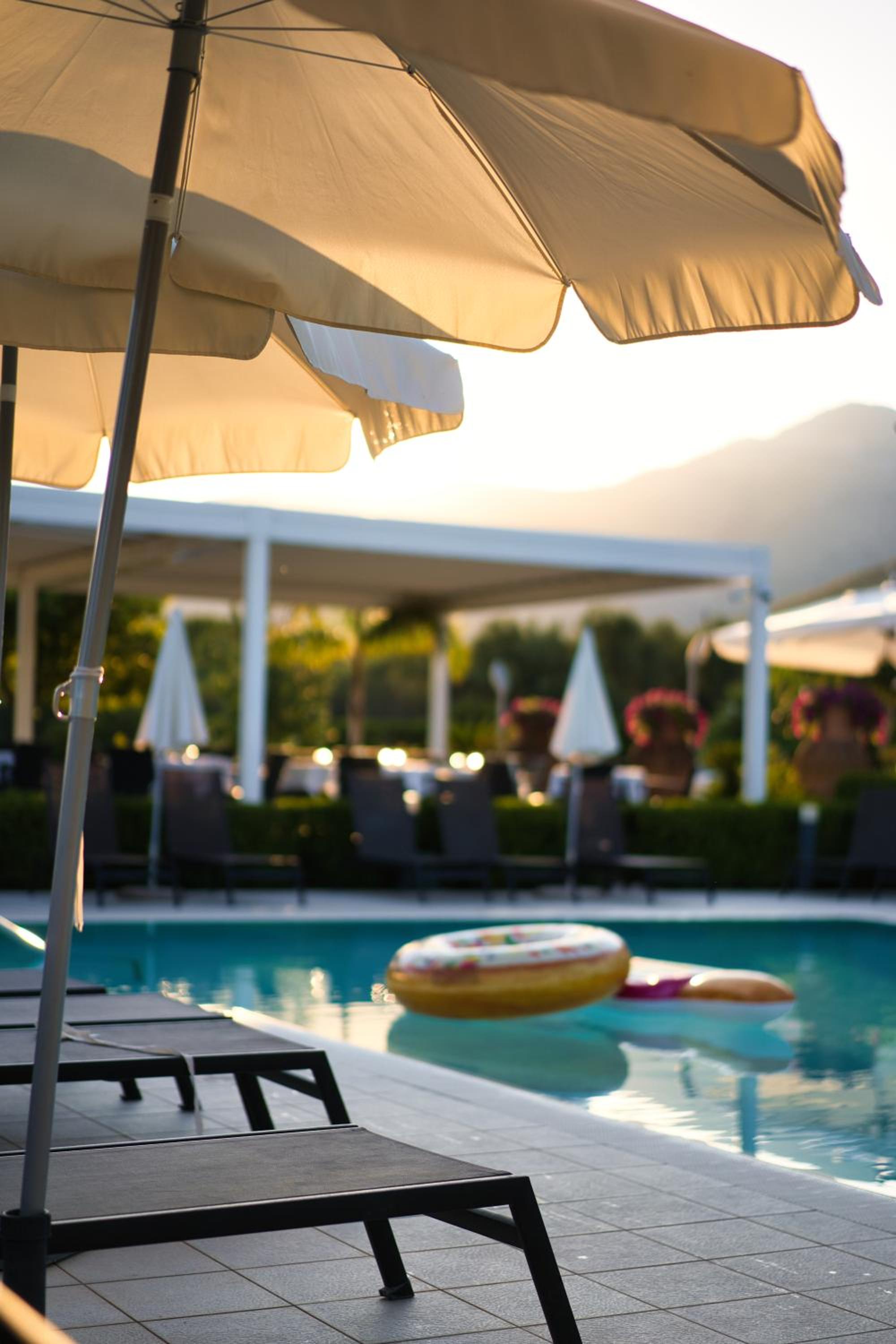 Nestled in a 22,000 m² park with 250 varieties of Mediterranean flora, Kora Park is a tranquil retreat offering a free swimming pool with a relaxing hydromassage area and a picturesque sun terrace. Indulge in classic Italian cuisine at the restaurant with stunning views of the Gulf of Gaeta.