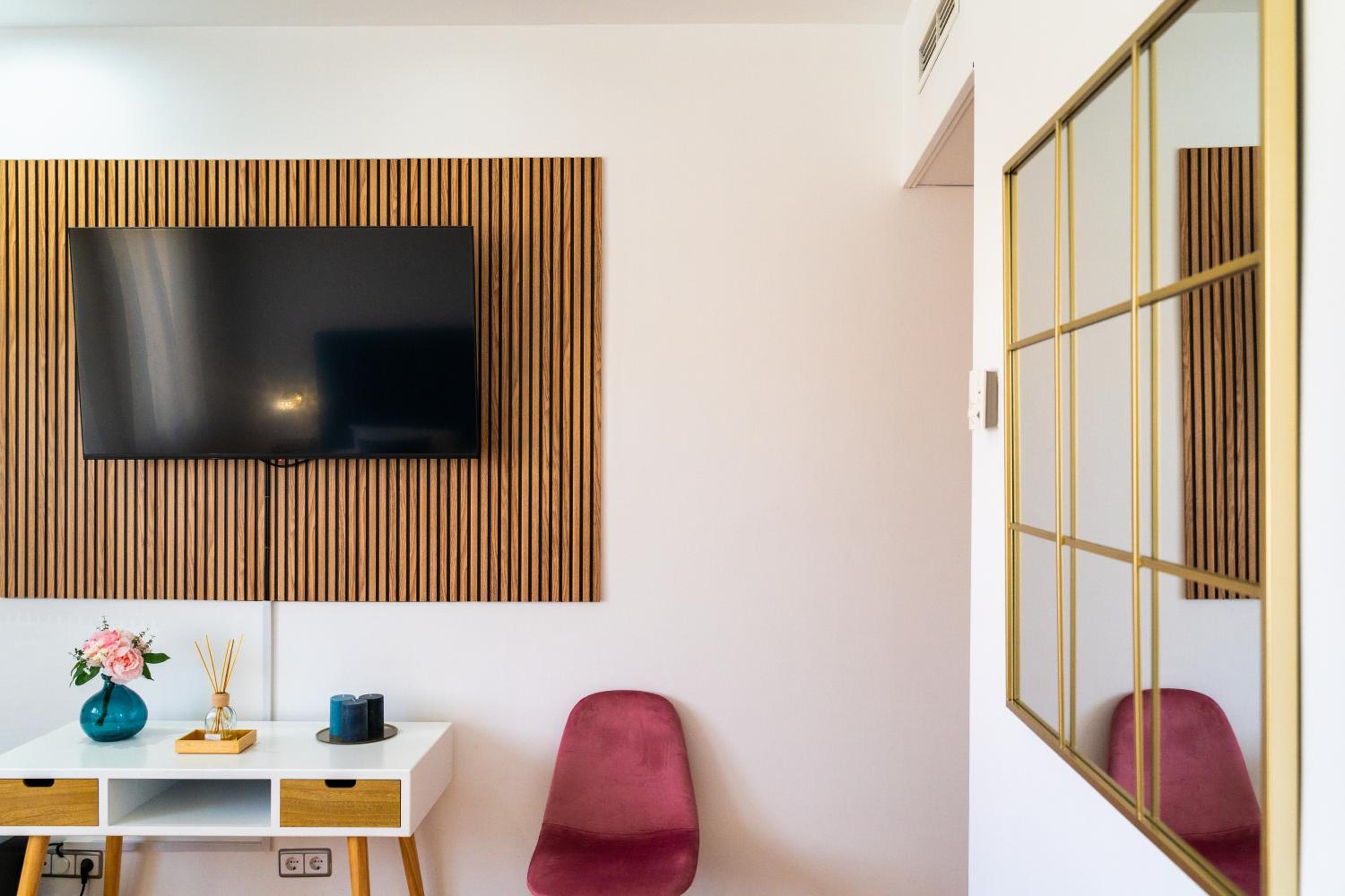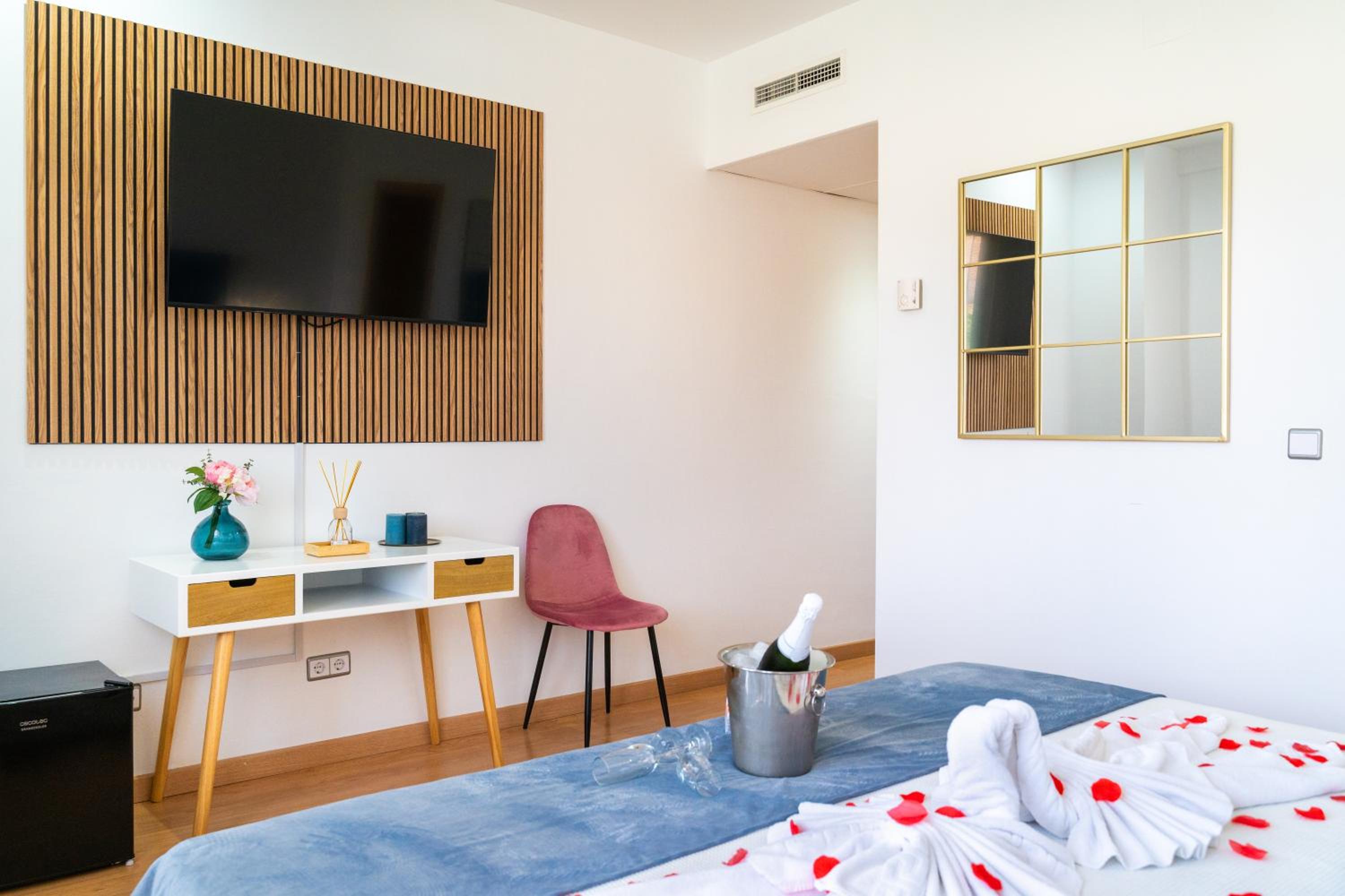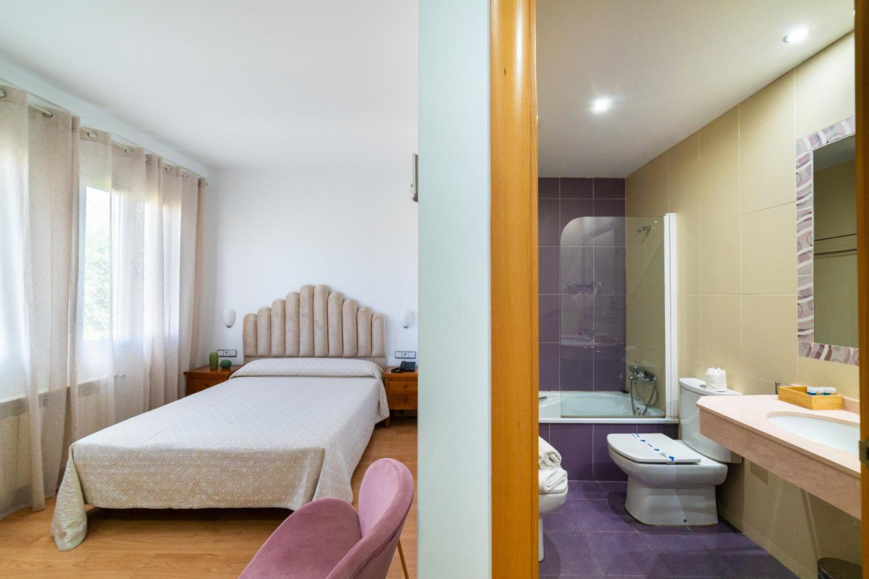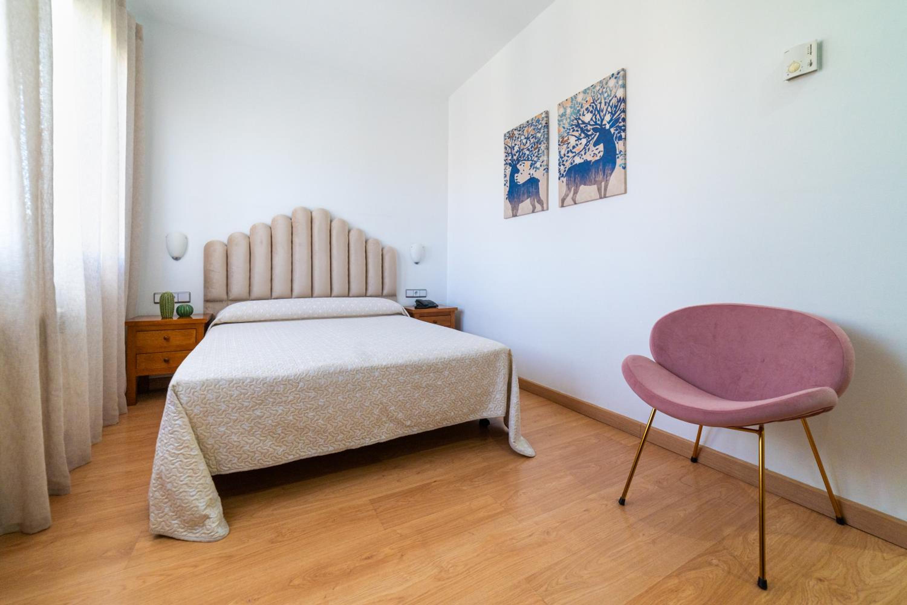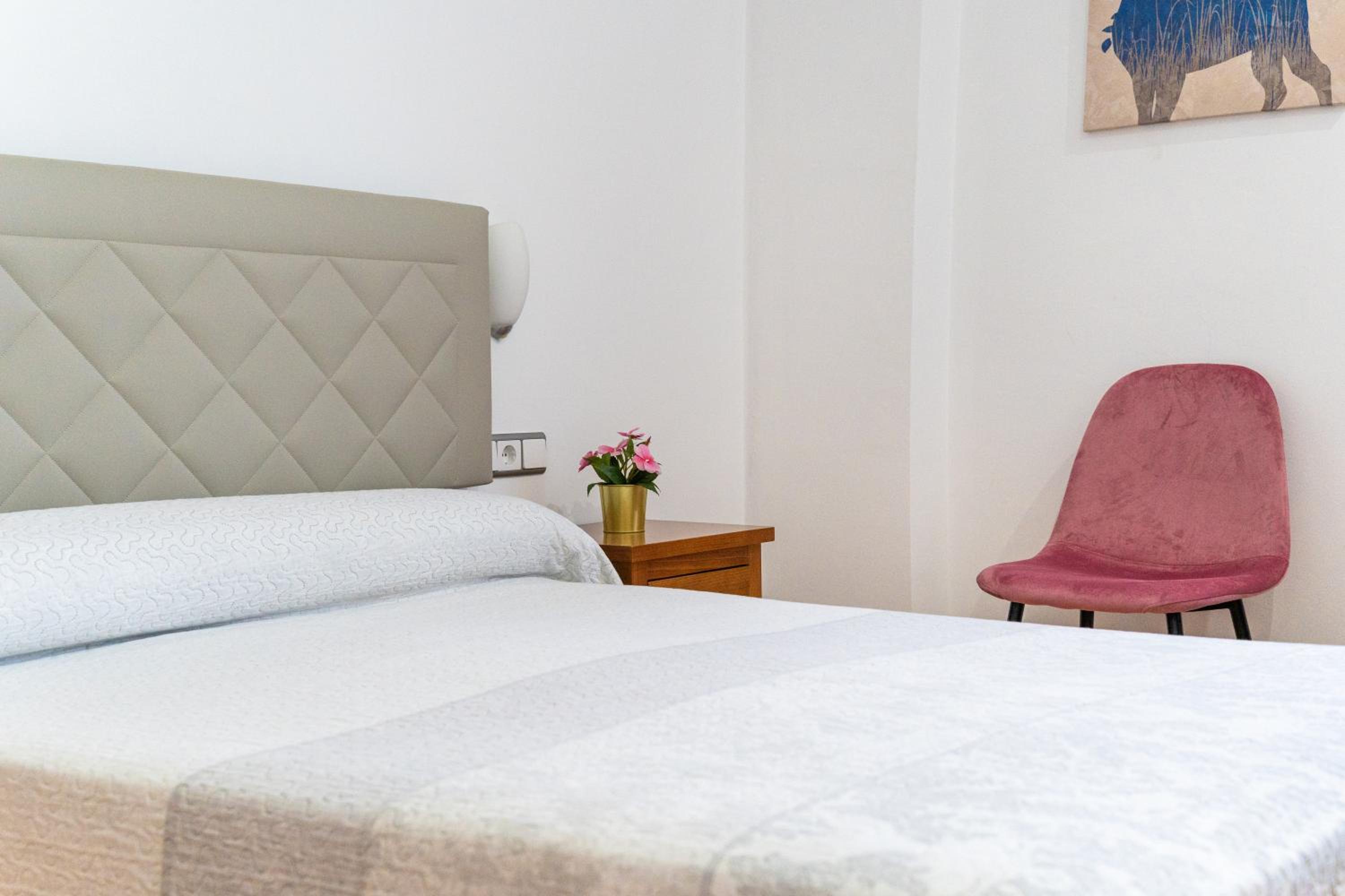 El parking de exterior que dice tener es la calle, no hay, y cuesta aparcar. El armario de la habitación es enano y no cabe nada. El baño muy pequeño. Mucho ruido a través de las paredes. La cama es super dura, colchonería barata de espuma mala, todavía me duele la cadera. No tiene minibar, solo frigorífico que hace un ruido horroroso, lo tuve de desconectar. Apenas había enchufes para conectar cargadores.