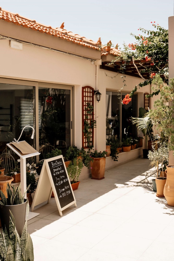 The stuff is very helpful and energetic. We were welcomed so warm. They have a restaurant inside the hotel (price is relatively higher than outside) and made us stay easier for dinner time. Bostani Restaurant has delicious menu. The room is so big and had a patio and a hanging swing. If you have a car and do not want to be the center Heraklion, it's 20 mins away from the airport and has a calm atmosphere. Open buffet breakfast is filling. Beach is easier to reach by car (a bit hill) in 2 minutes. There is a free parking spot for your car.