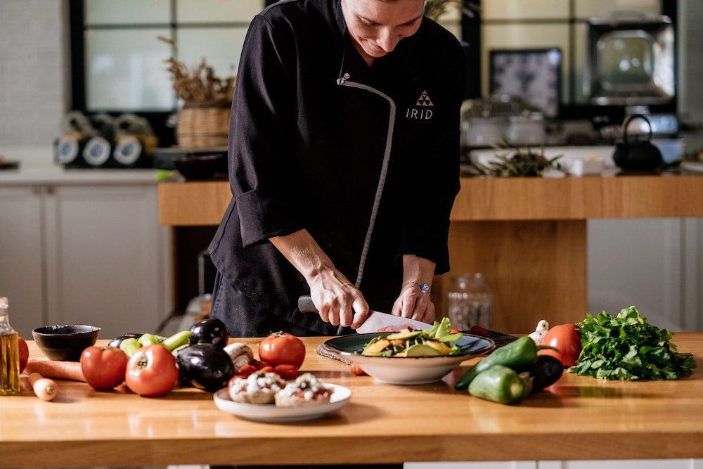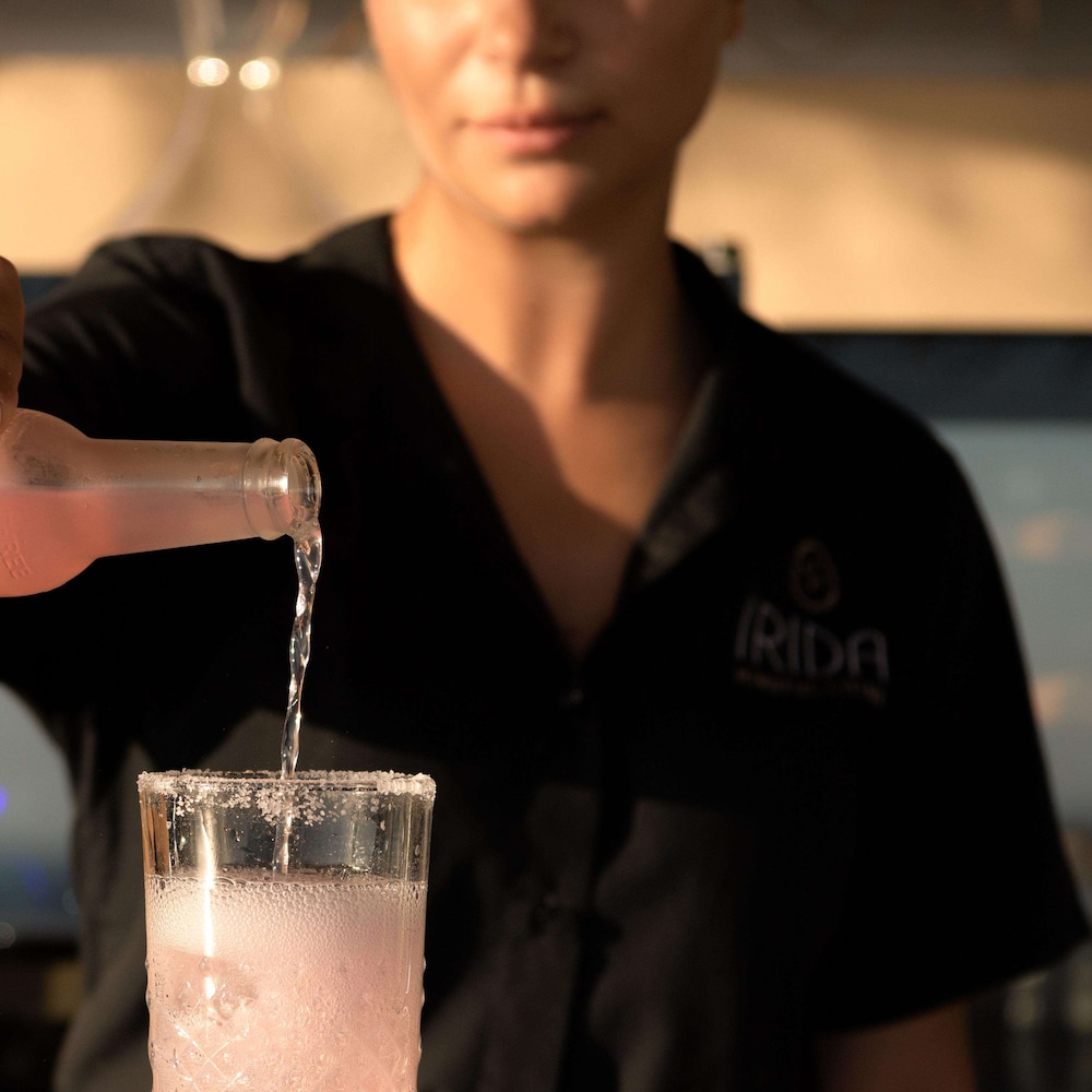 We had an amazing time on Irida Hotel. It's located in the quiet village of Agia Pelagia, not too far from Heraklion, and it felt like we were in paradise. The village has everything you need if you want to stay nearby. The hotel is very close to two beautiful natural beaches. The hotel has amazing views, and the facilities, such as the gym, pools, cocktail bar, restaurant and outdoor areas, are wonderful. We felt so calm and serene there that we didn't want to leave. Our room was big with a porch, and our bed was very comfortable. Everything was clean. Breakfast was amazing with several options and delicious food. All of the staff were amazing. We loved Bill; he's hilarious and very professional.