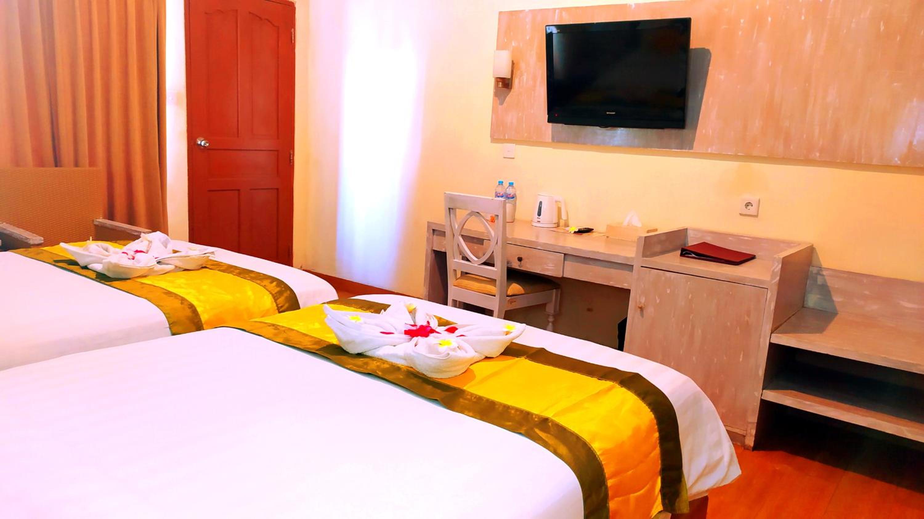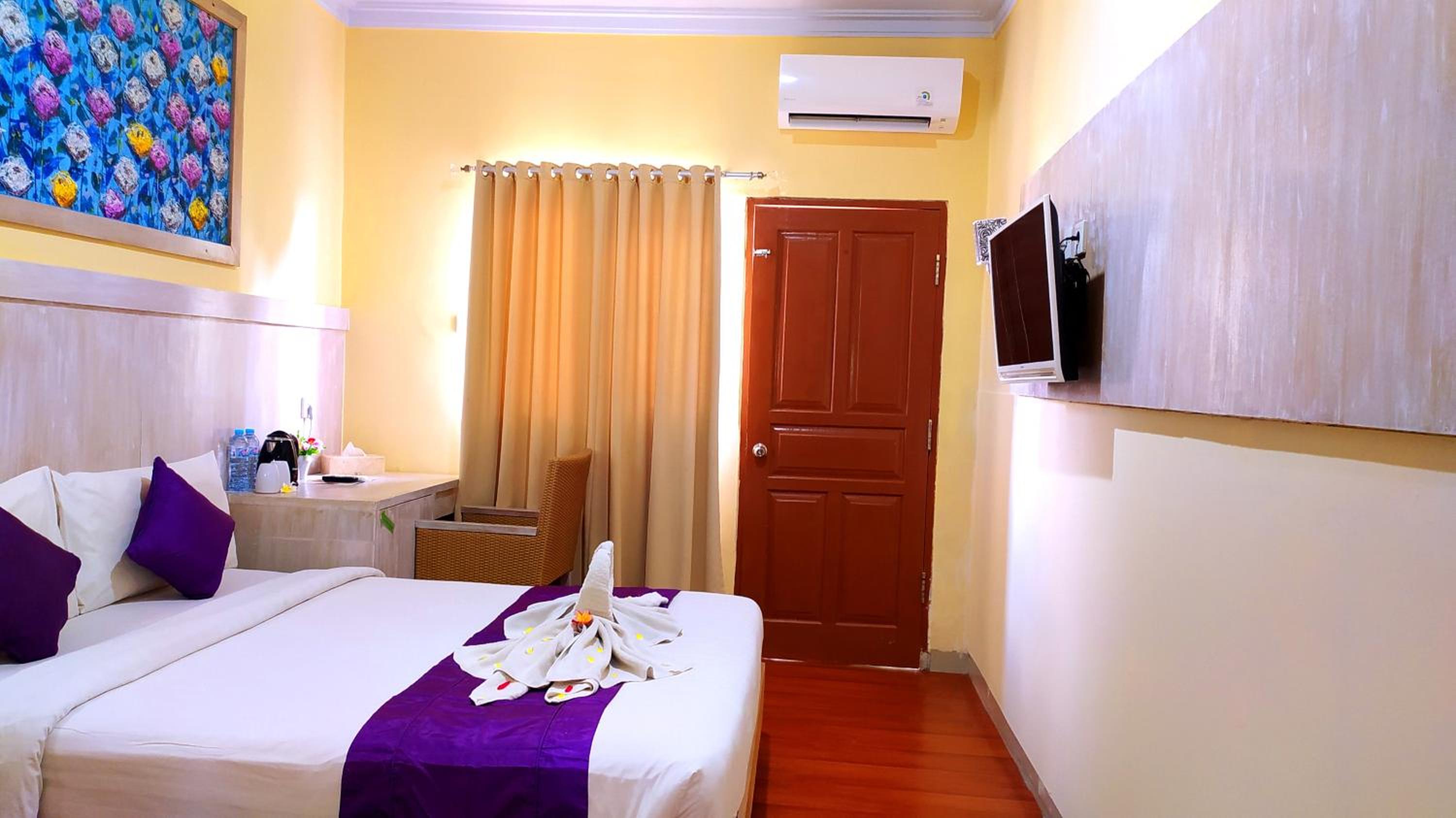 Had a booking for 3 people and they were low on rooms due to a big student conference so we had to all share a double bed. Cots are extra. Breakfast was okay, the rooms are clean and the location is pretty good if you want to be downtown (near ATMS and restaurants). AC wasn't strong and the showers were cold but Bali is hot so it's fine. The staff are friendly and helpful.
