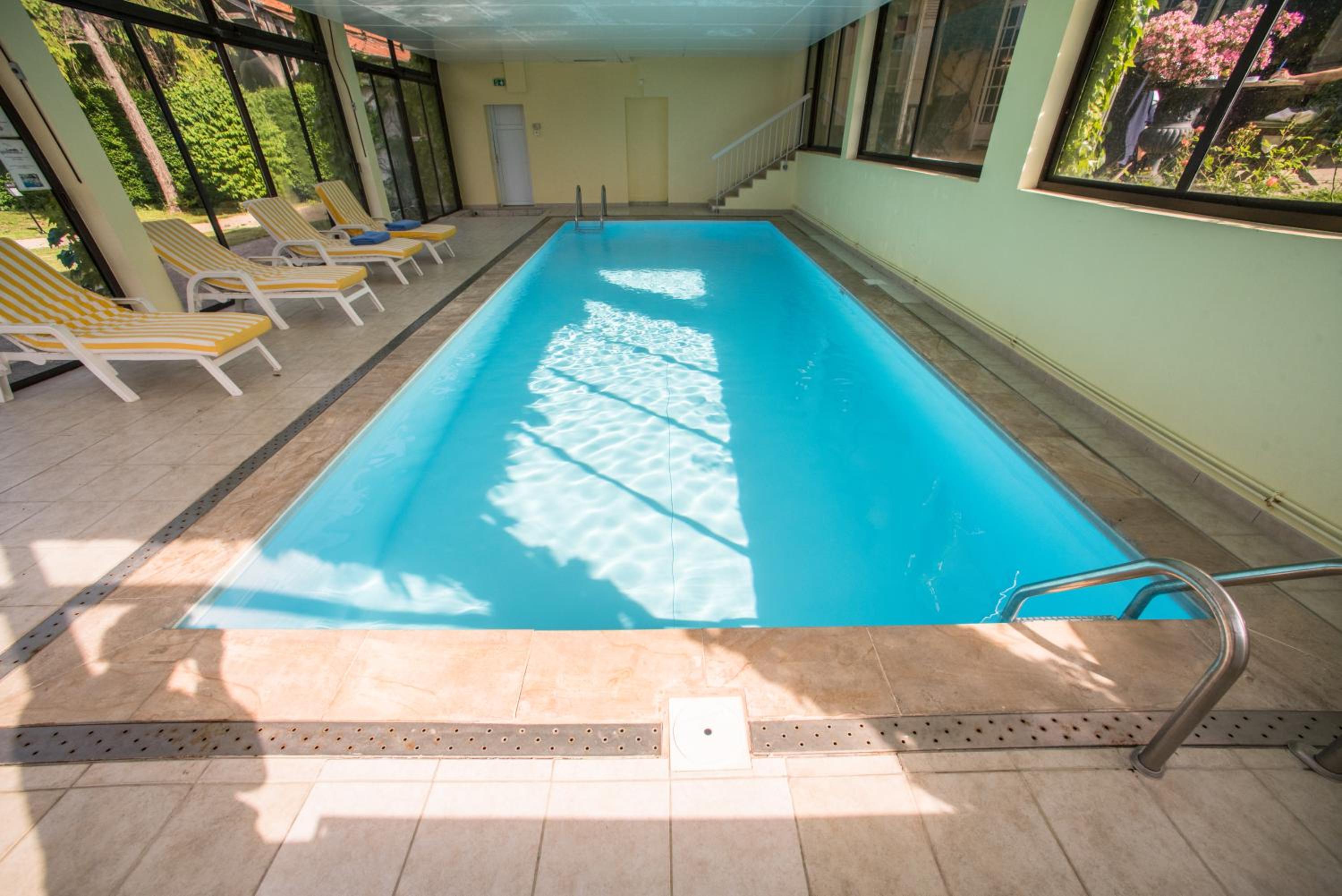 Indulge in Tranquility: Enjoy soundproofed rooms, a heated indoor pool, and a tennis court for ultimate relaxation.