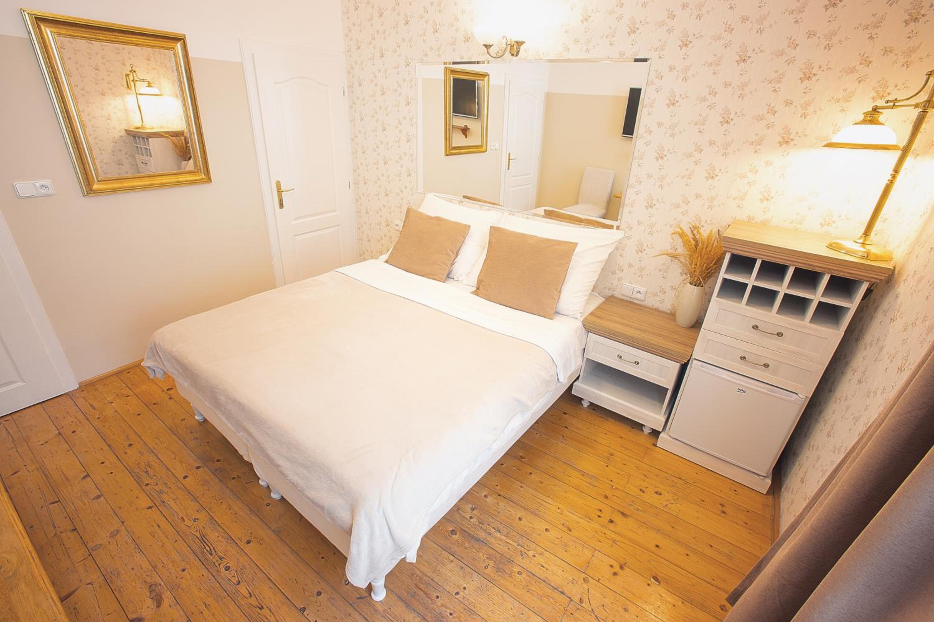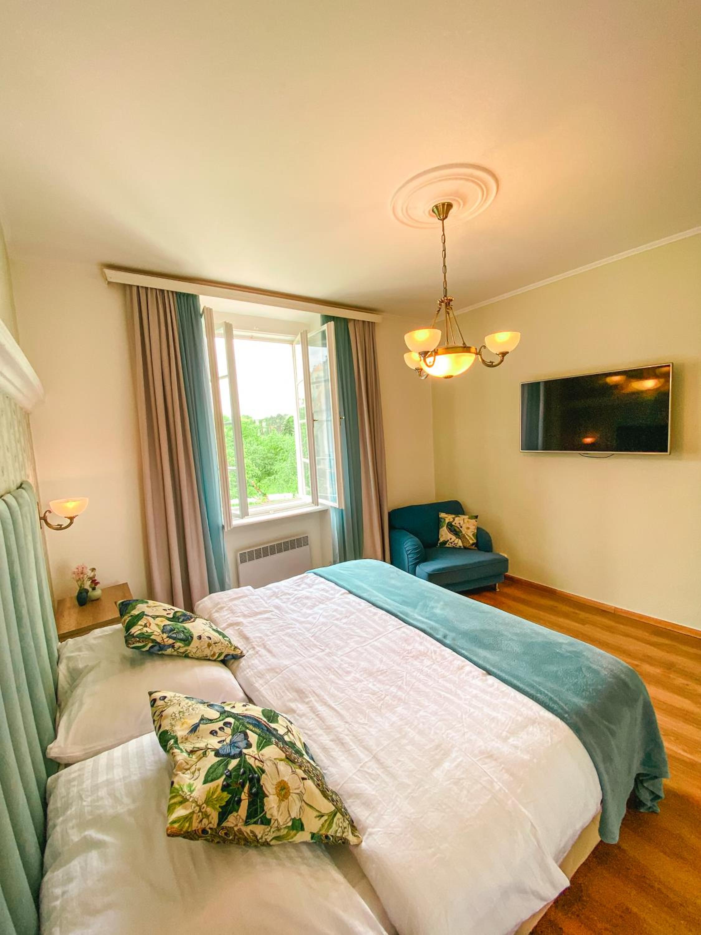 A szállás a belvárosban helyezkedik el, a szobánkból kilátással a várra. A parkolás a közelben lévő fizetős parkolóban lehetséges. A reggeli kiváló volt és a szobába hozták a megadott időpontra. A személyzet kedves és segítőkész.