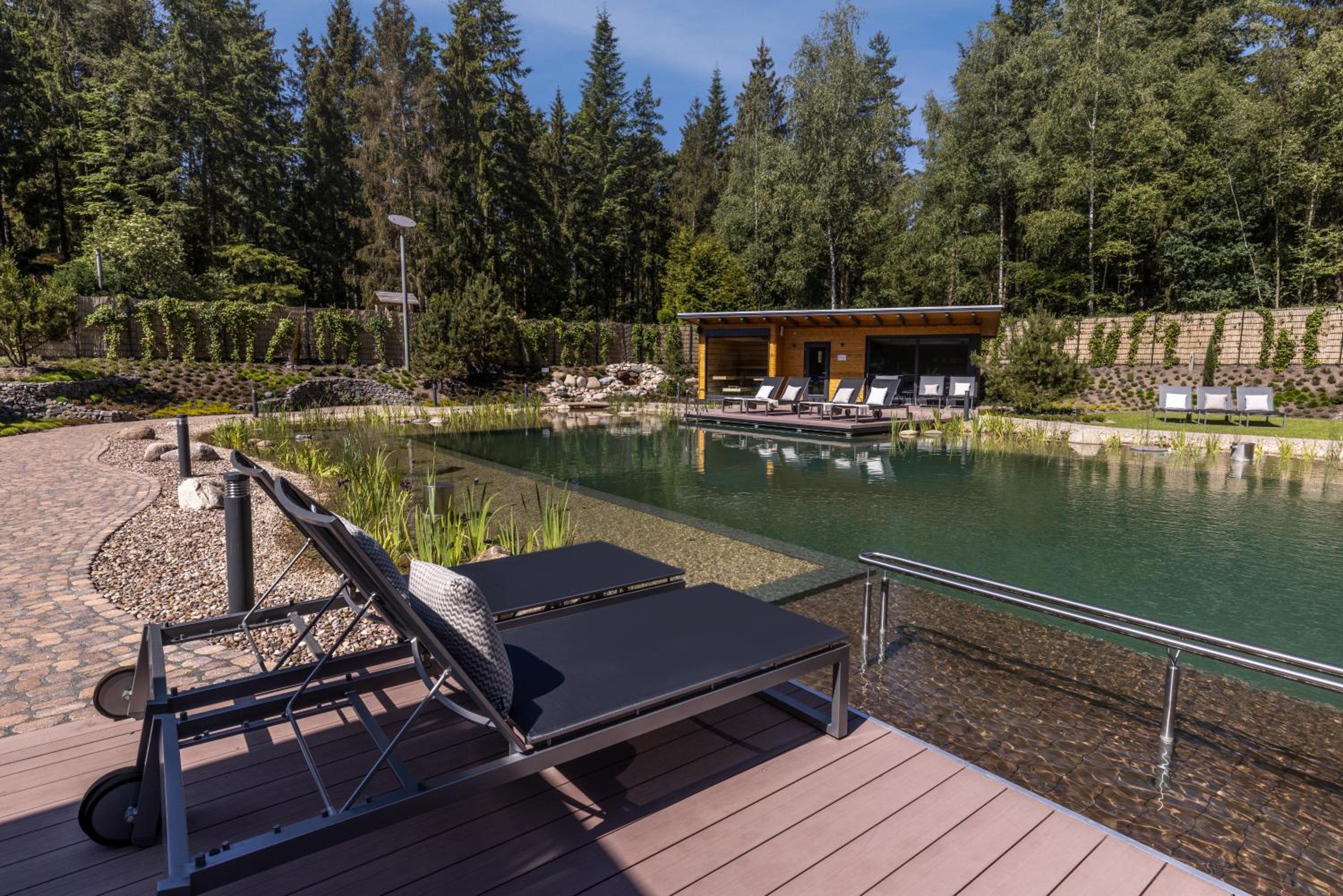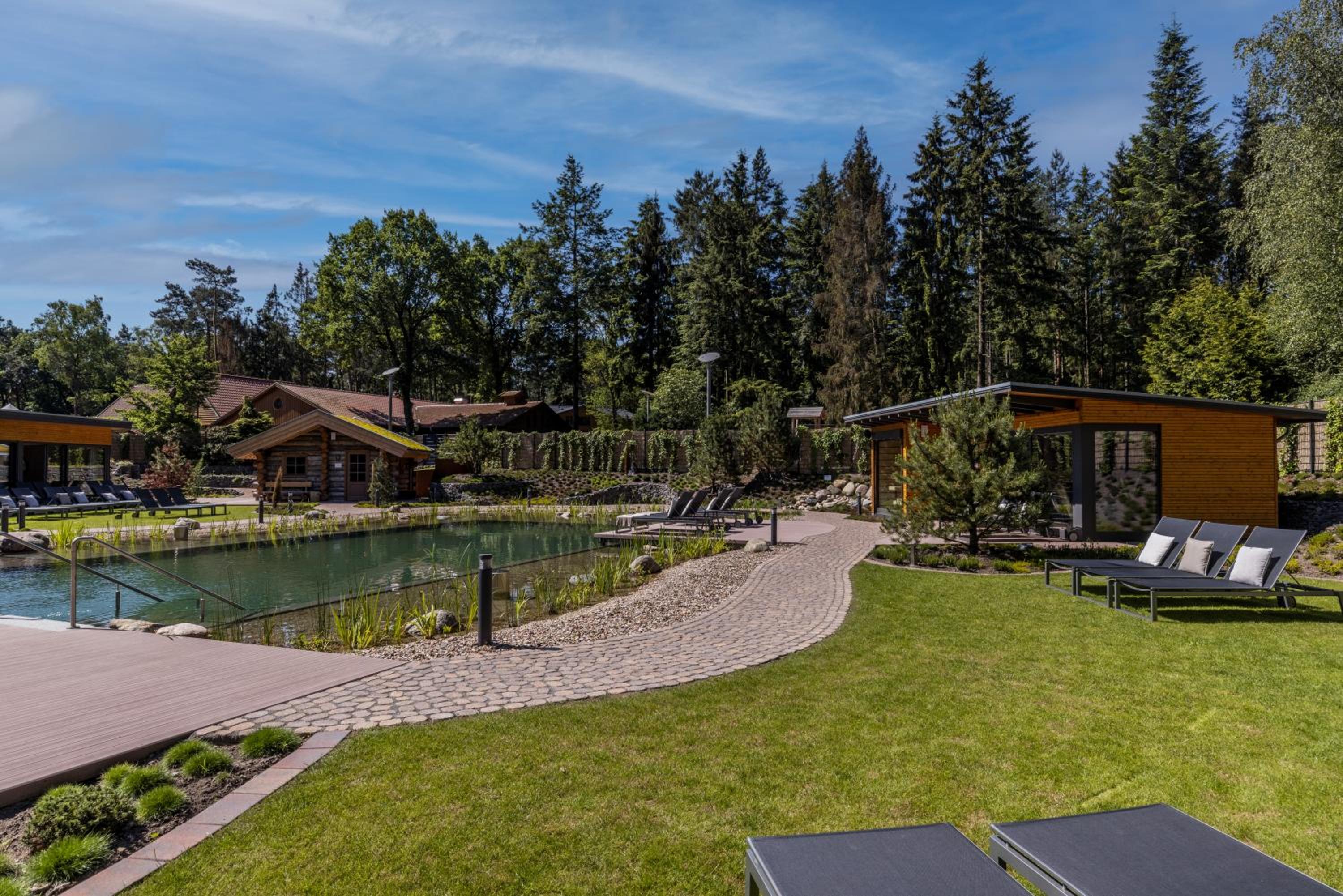 Relaxation & Wellness: Enjoy a modern spa area with multiple saunas, indoor pool, jacuzzi, and a natural swimming lake.
