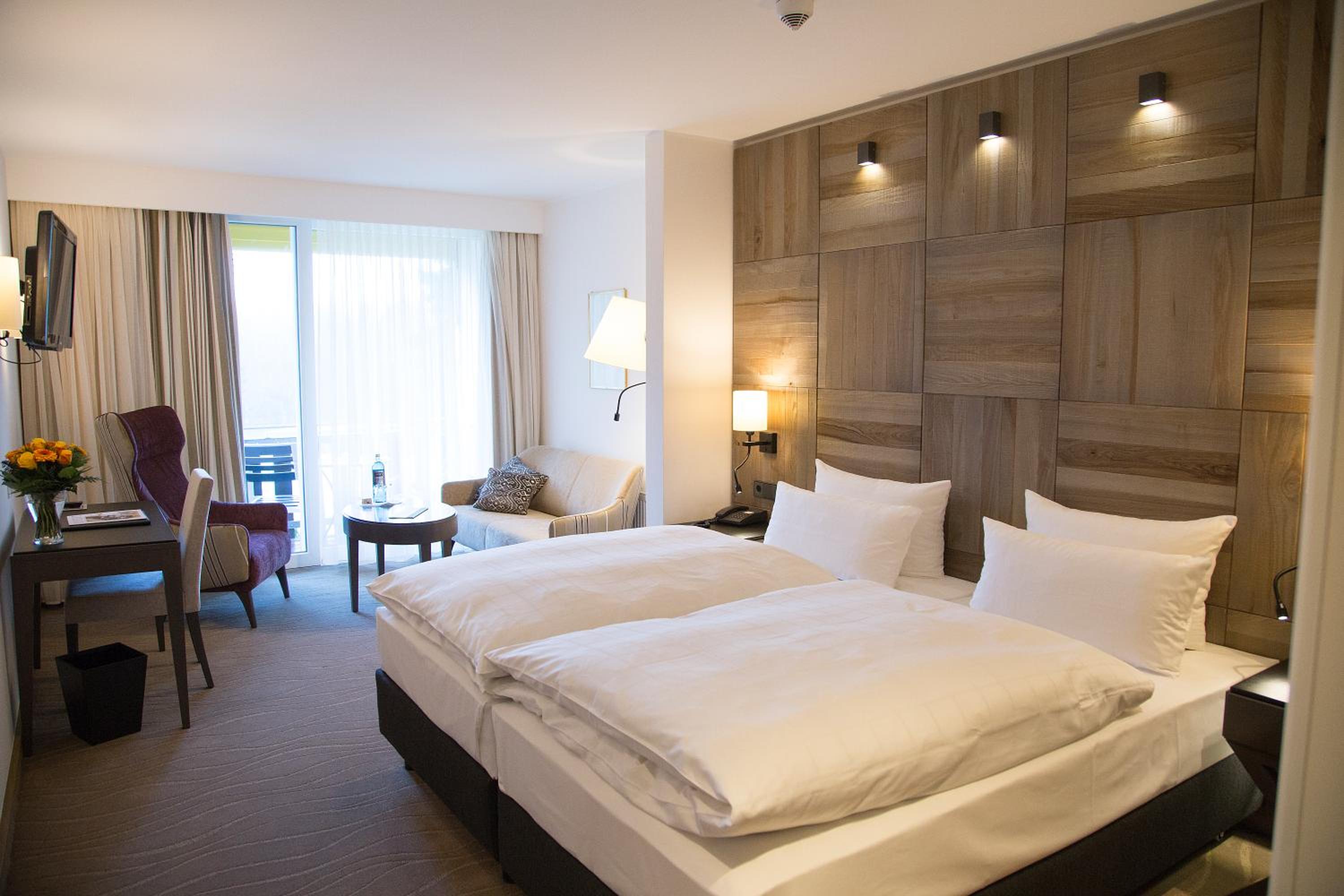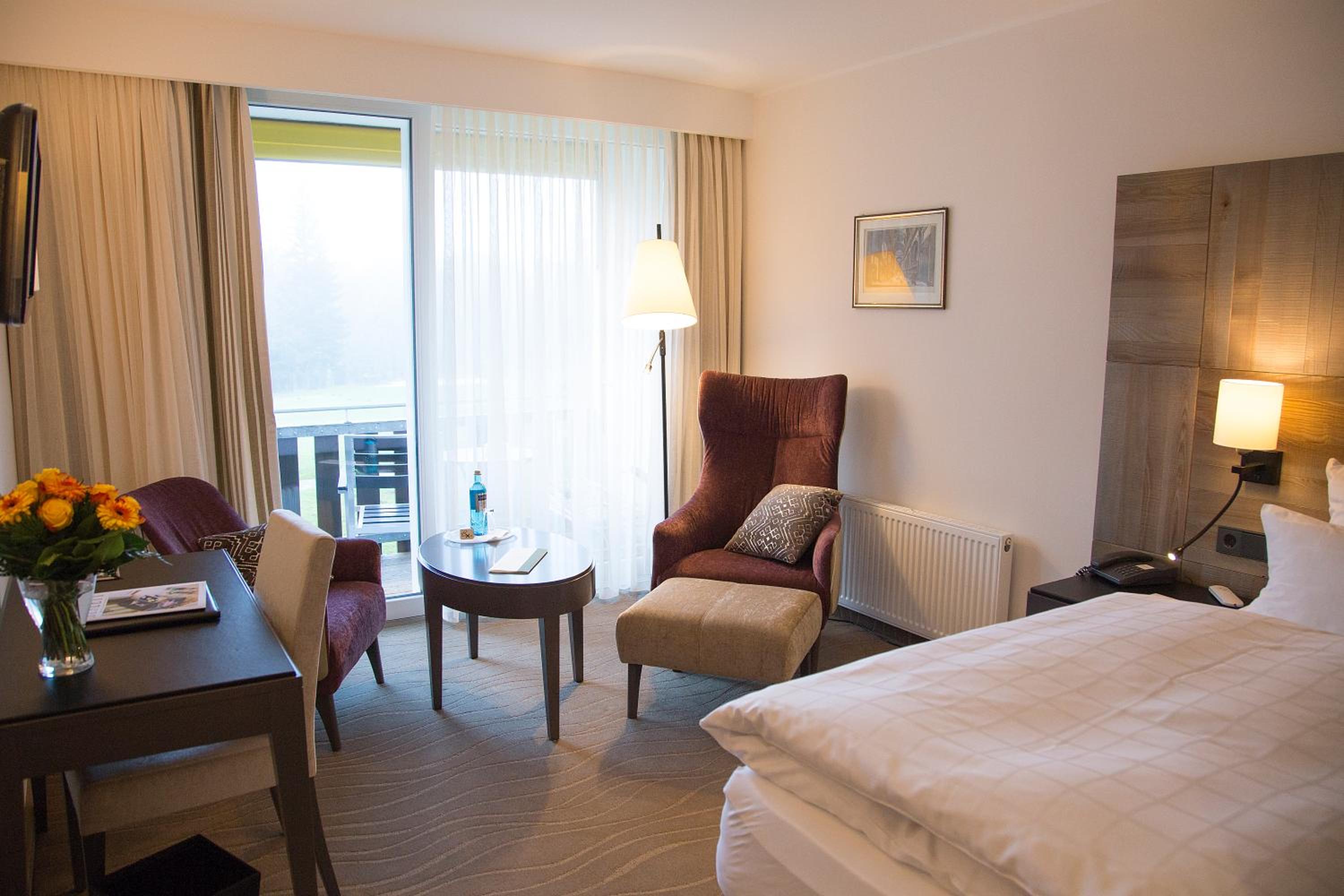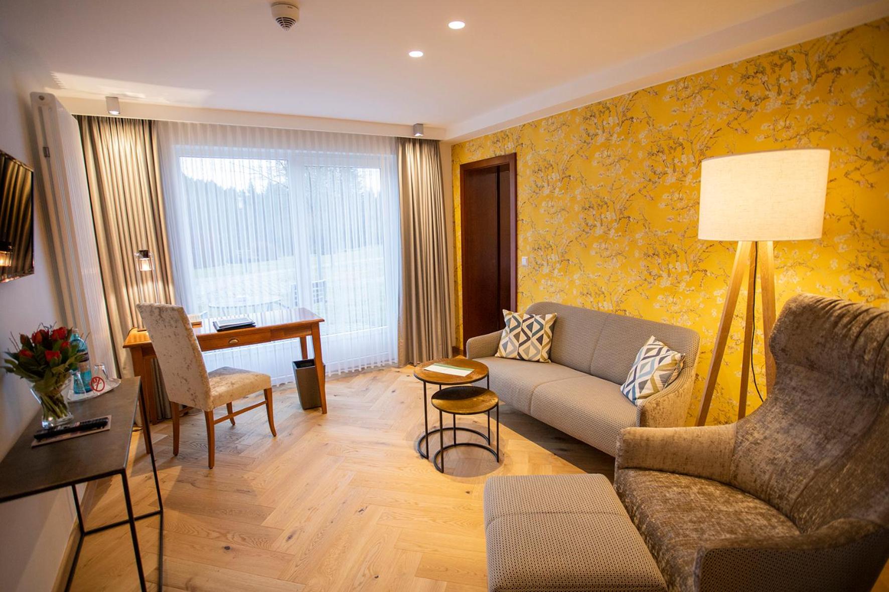 Indulge in elegant rooms with modern amenities including satellite TV and Wi-Fi at the family-run 4-star Hotel Jagdhaus Wiese.