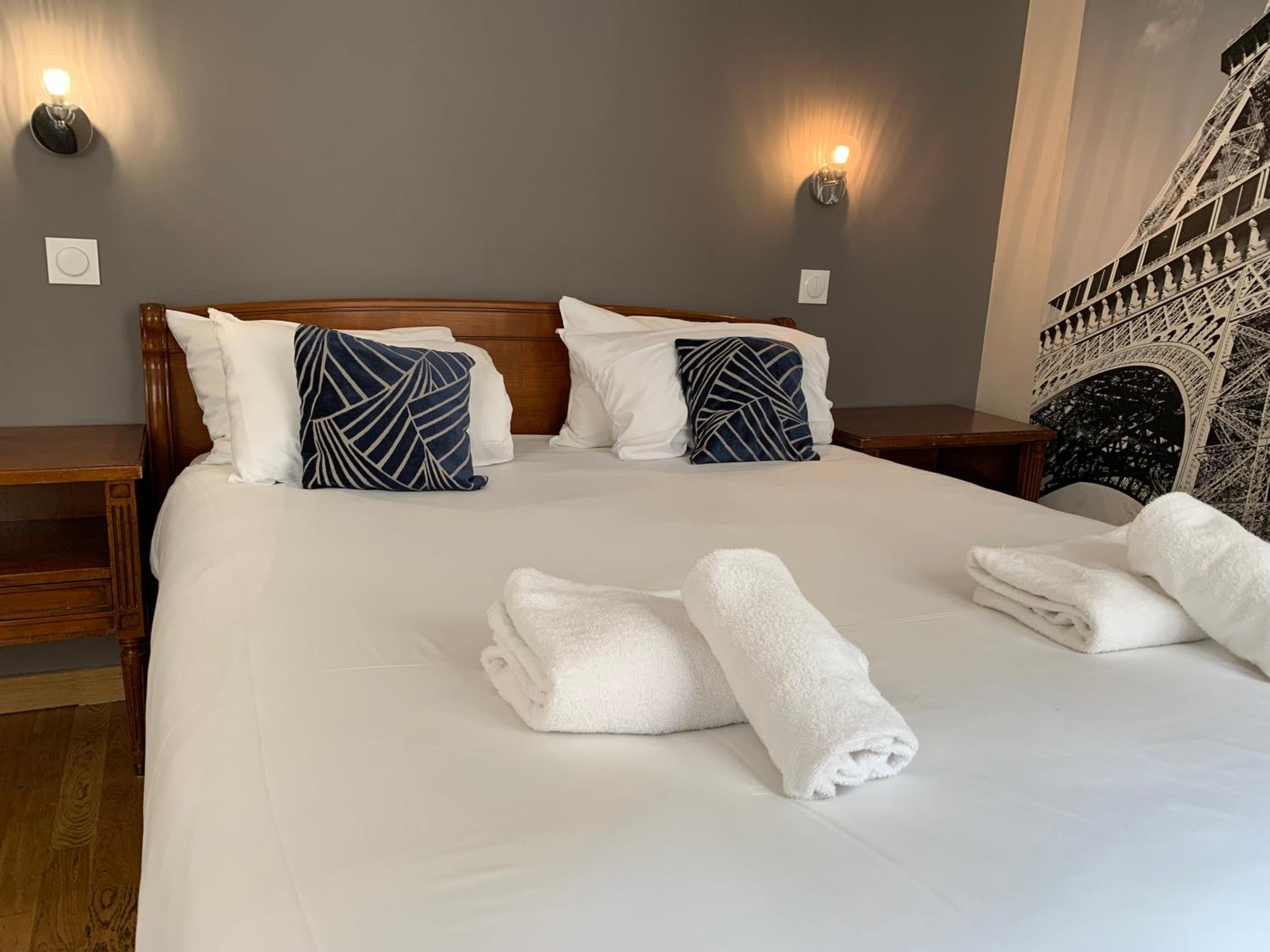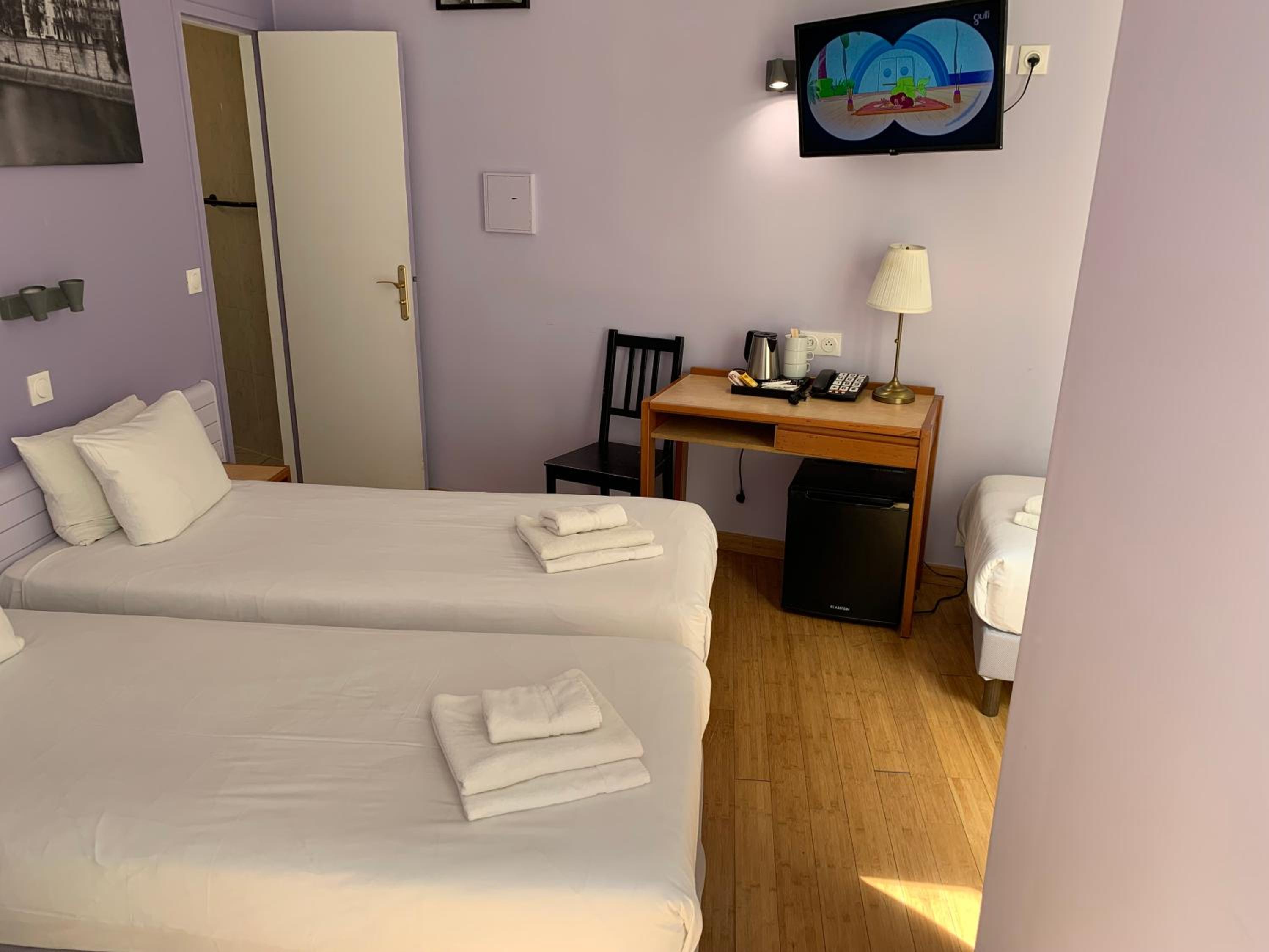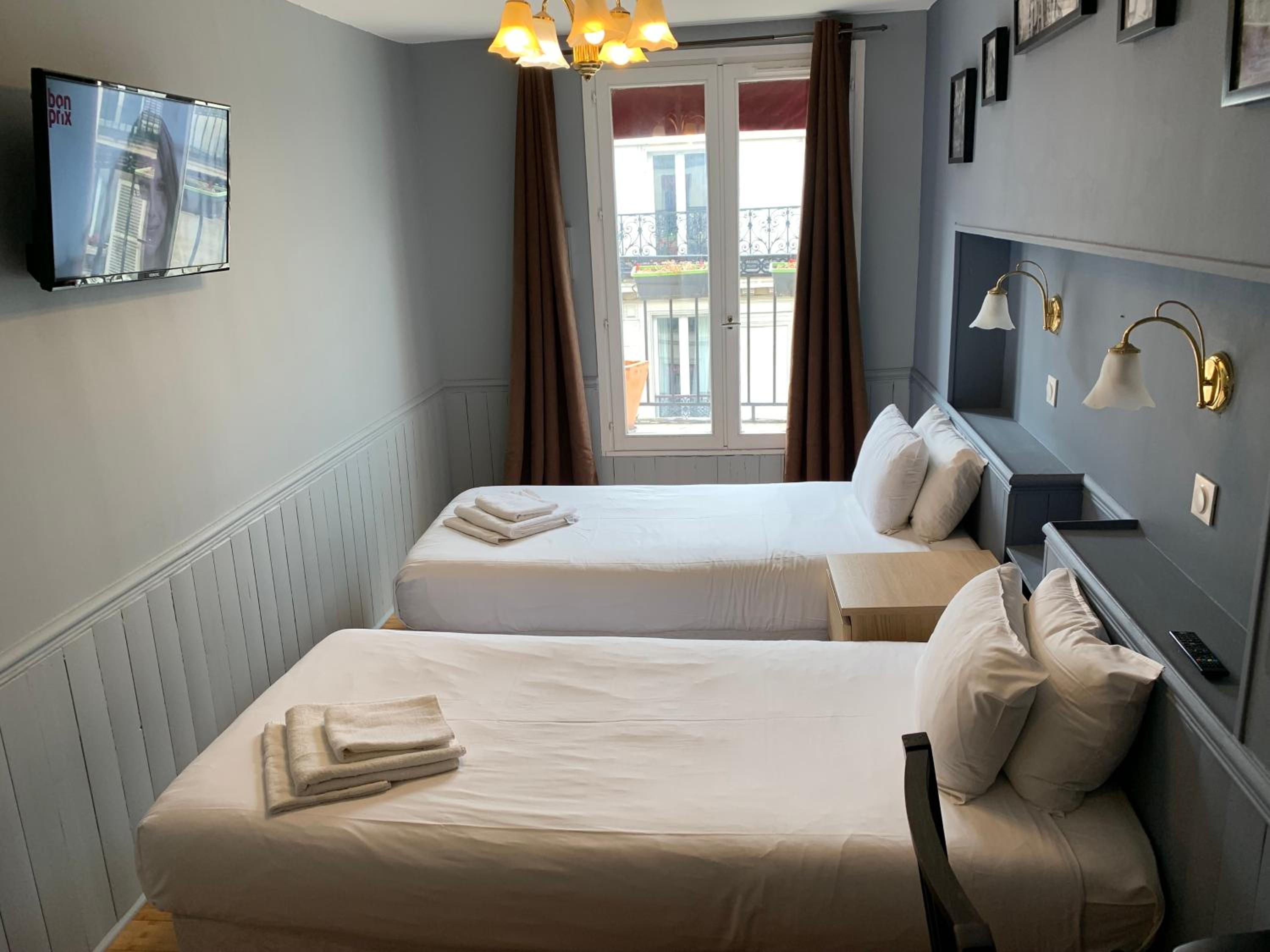 Velmi útulný pokoj v poslednim patře s balkónkem do ulice nás příjemně překvapil. Skvěle odhlučněný nebylo opravdu nic z ulice ani z chodby slyšet. Velmi čistý a hlavně opravdu pohodlné matrace a polštáře, pokoj měl klimatizaci i s vytápěním, což se v chladném počasí opravdu hodilo. Navic hotel má úžasnou lokalitu, na metru, kousíček od Moulin Rouge, ale i k památkám se dalo dojít v pohodě pěšky, v uličkách s restauracemi a vším co je třeba a potřeba.